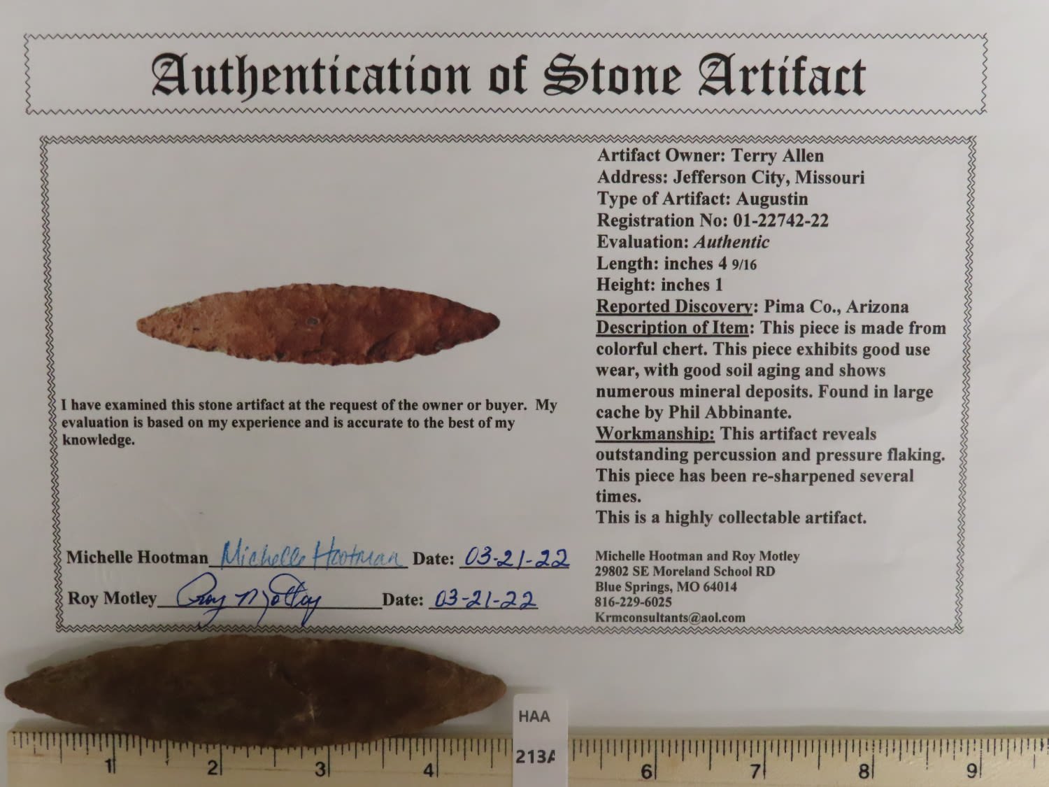 4 9/16″ Augustin Chert, Motley COA, Found in Pima Co., Arizona in large cache by Phil Abbinate