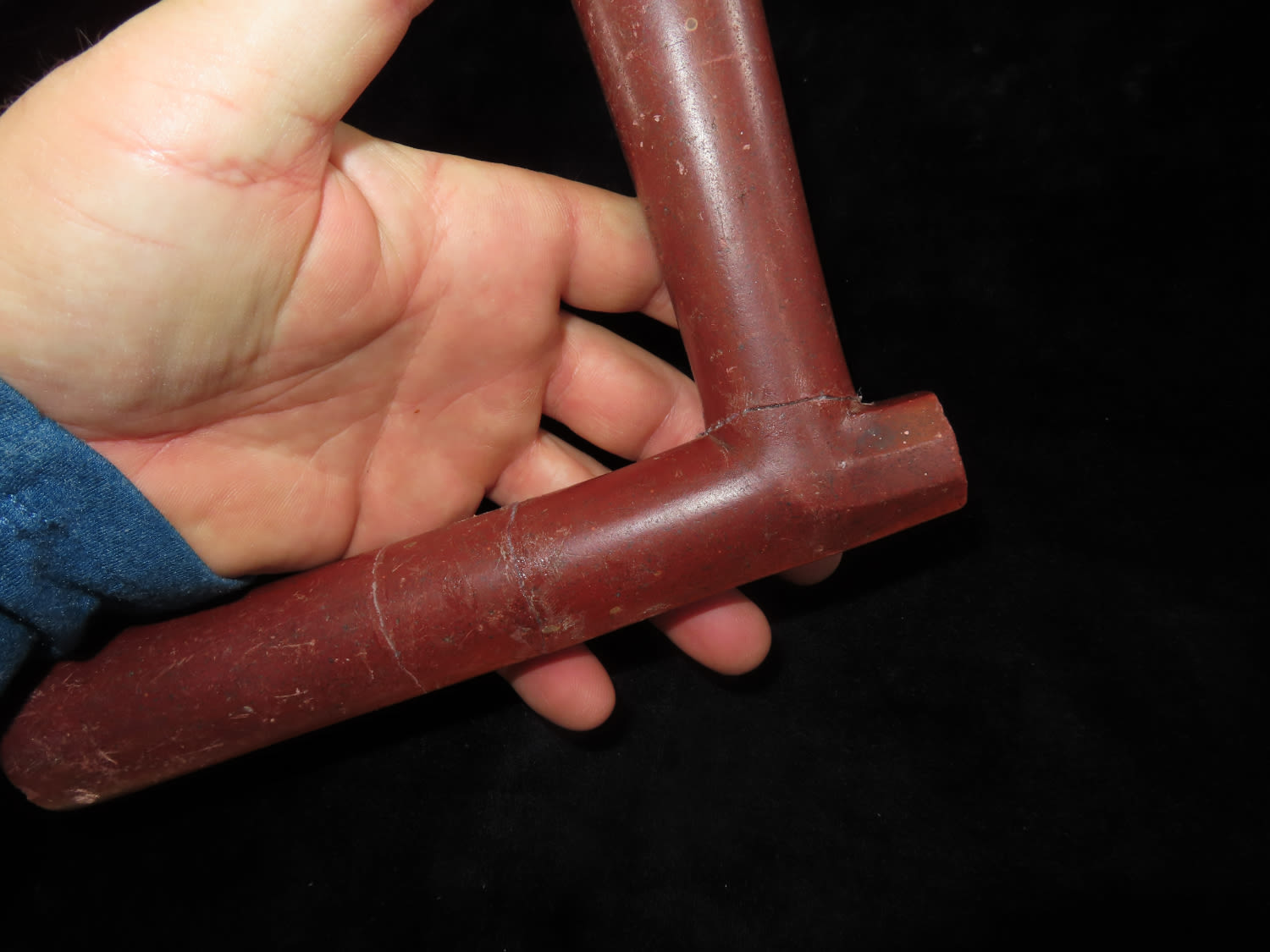 7 1/2″ Catlinite Pipe broken into 4 sections and glued, EX Nick Gatses