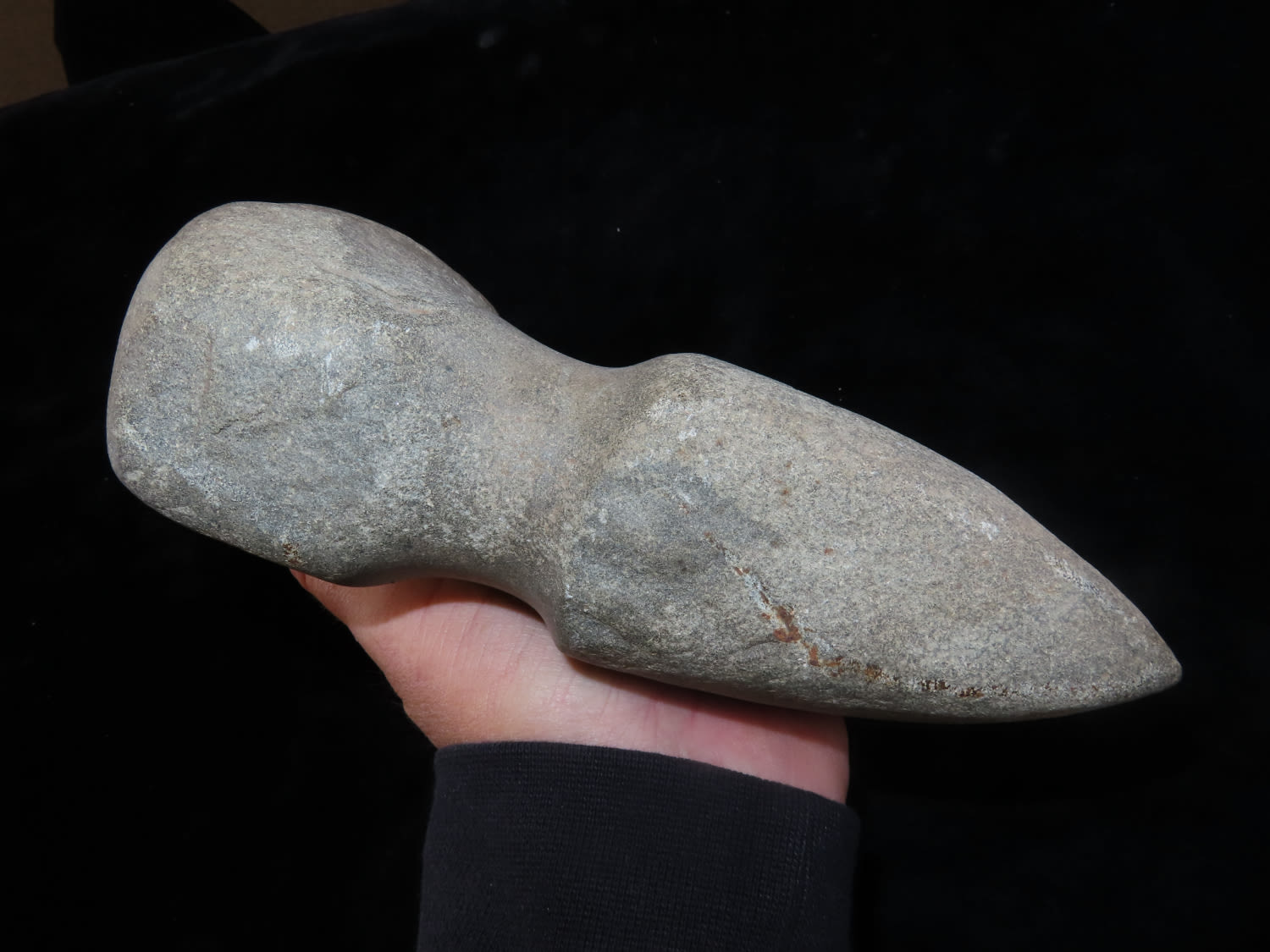 7 1/4″ Full Groove Axe, found @ Mound House, Greene Co Illinois in 1970- Ex. Gerald Waters Collection Payson Illinois, in storage since 1980’s