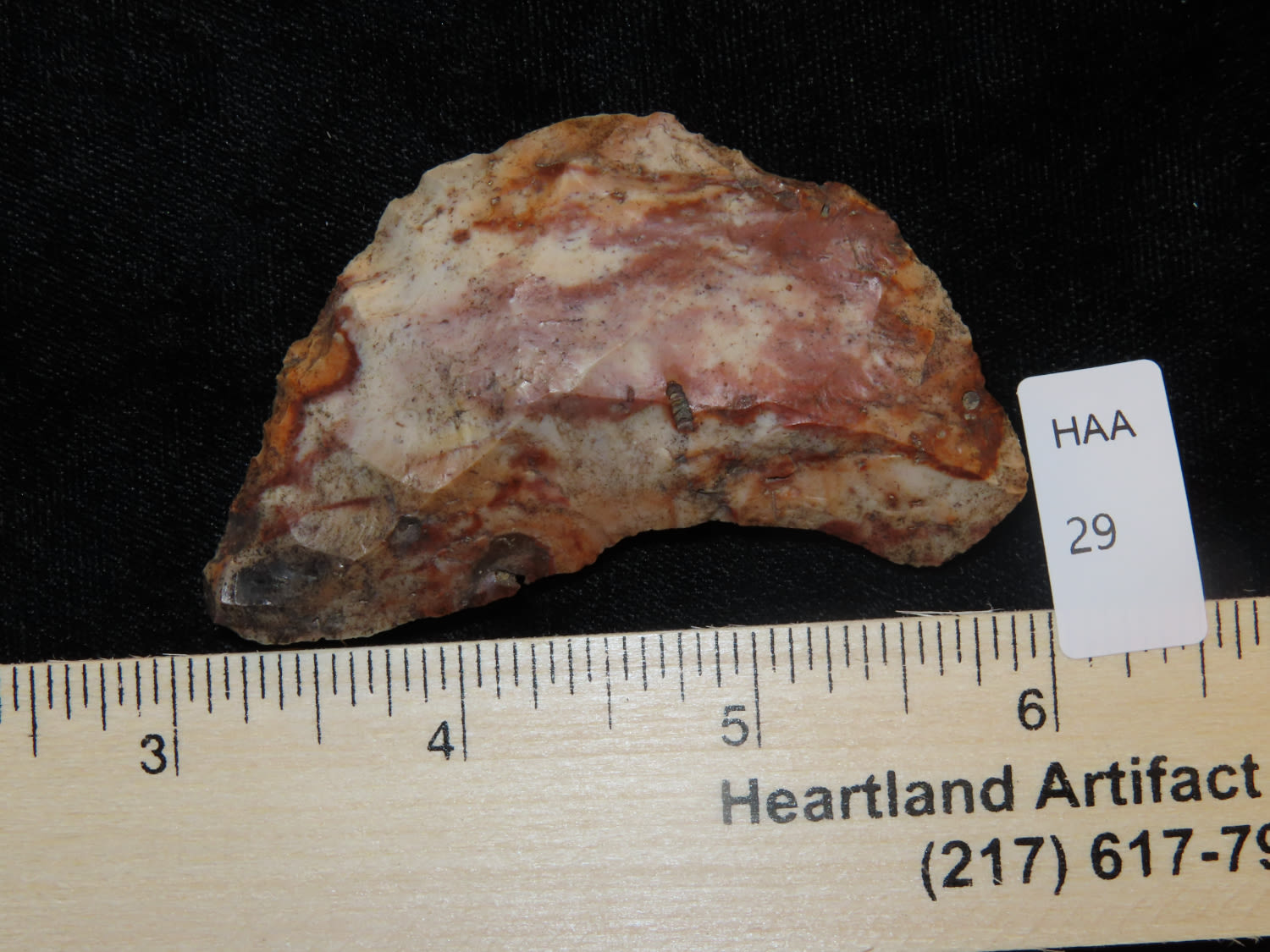 2 7/8″ Half Moon Hopewell Crescent Knife, high grade heat-treated chert material,From the Steve McCabe Collection, Milan, Sullivan County Missouri
