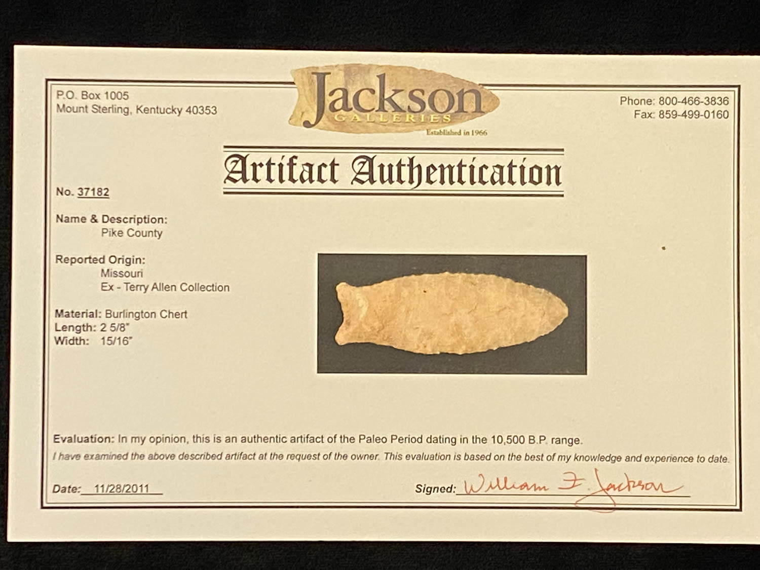 2 5/8″ Pike County Dalton, Found in Missouri, Ex Terry Allen, Jackson and Stermer COA