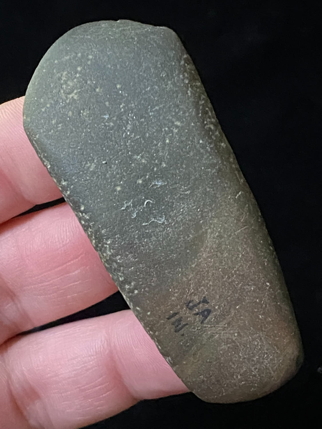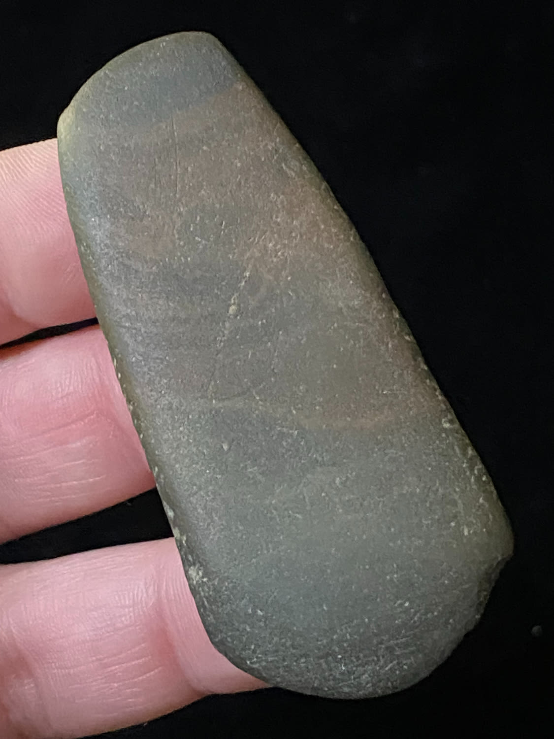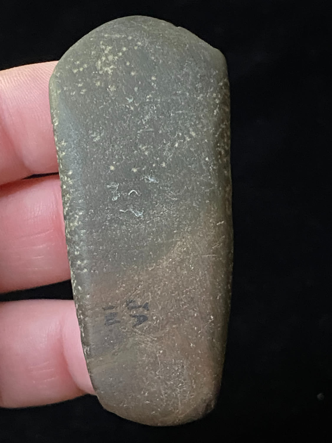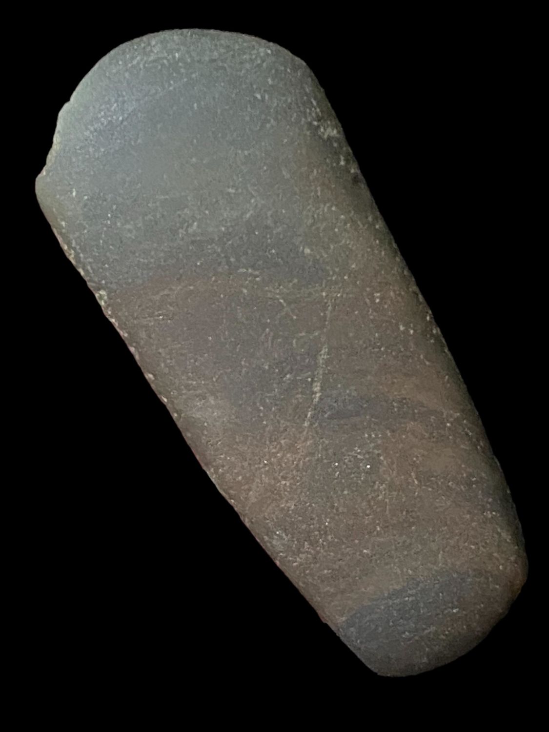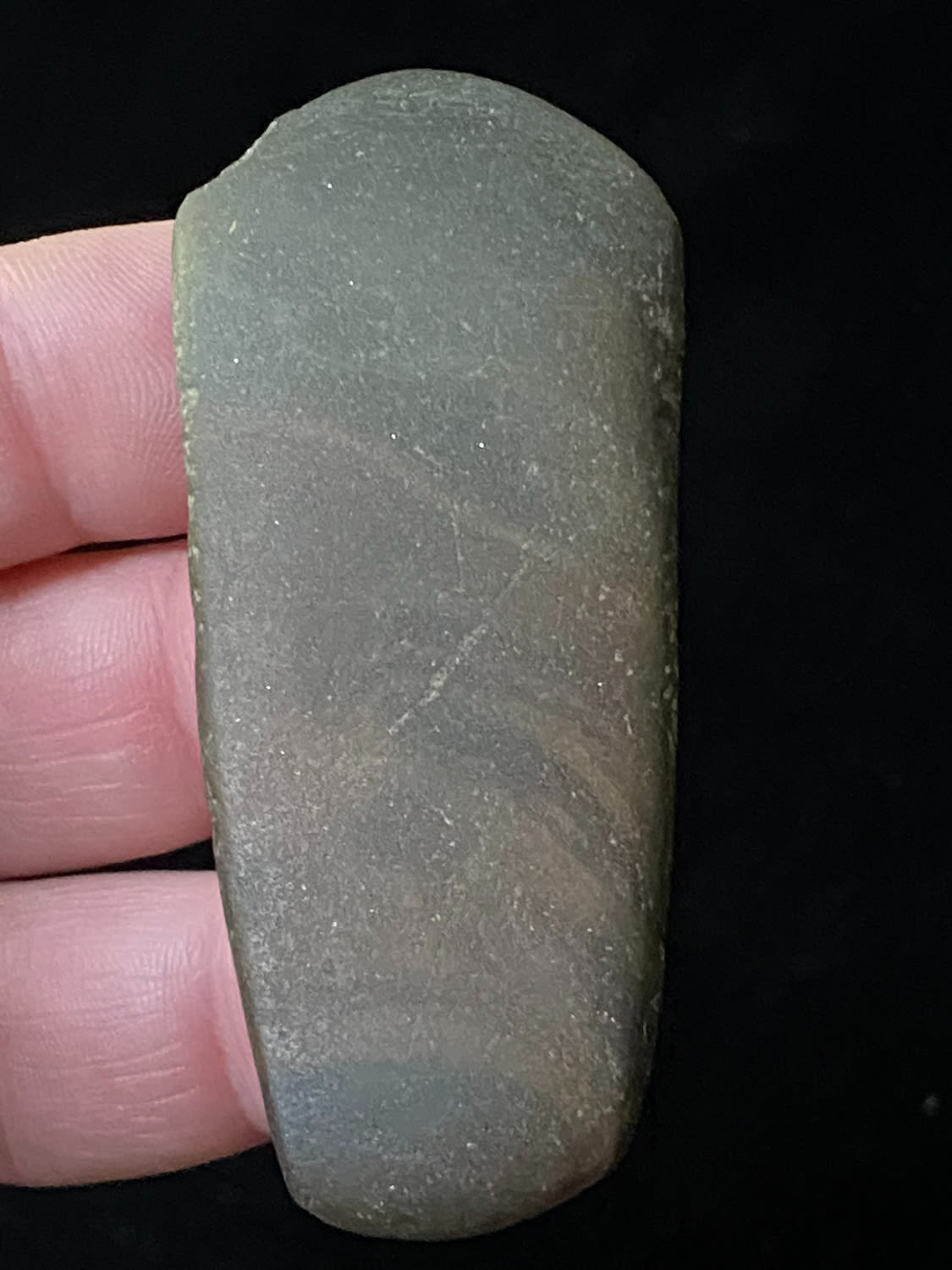 2 5/8" Miniature banded slate Celt, Indiana, Ex Steve Gobeli Ex Ray Fraser Ex John Smith, Comes with Certificate of Origin