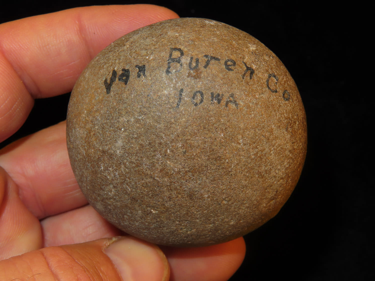 2 1/8″ Polished Game Ball, found in Van Buren Co, Iowa