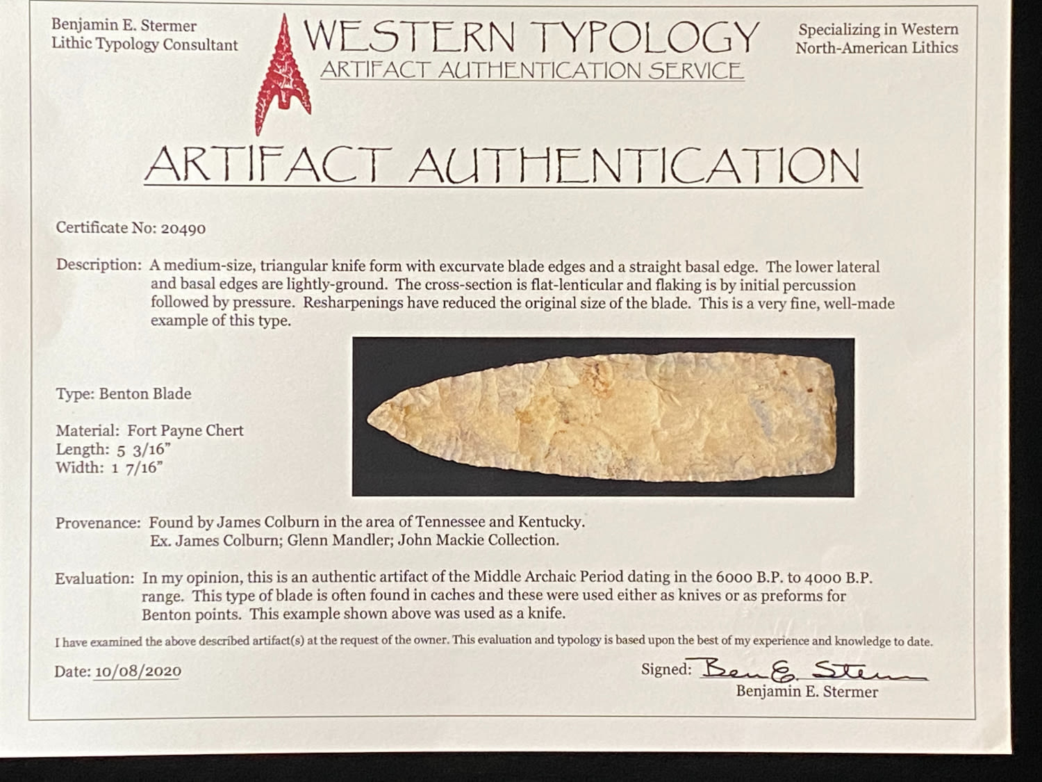 5 3/16″ Benton Blade found by James Colburn Ex Glen Mandler Ex John Mackie, Stermer COA