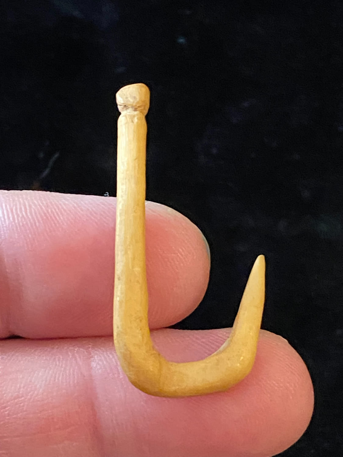 1 3/4″ Bone Fish Hook with high Polish- From a collection in Elgin- Illinois- Cook County