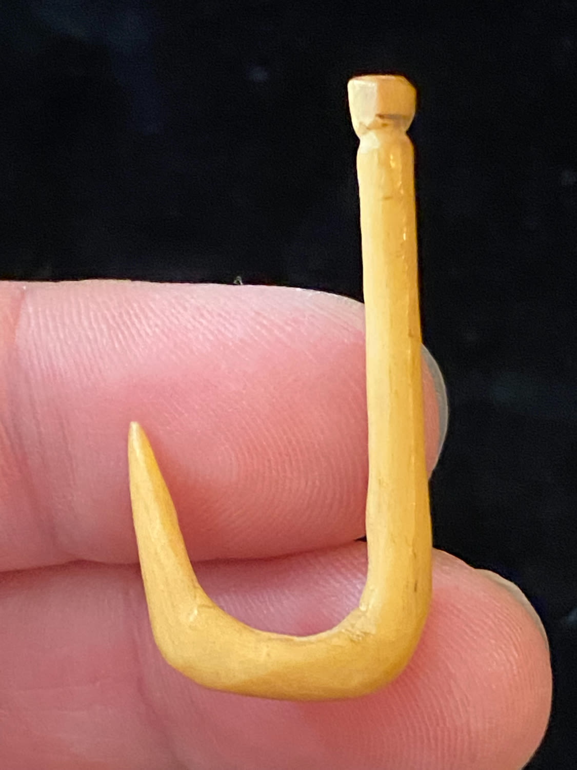 1 3/4" Bone Fish Hook with high Polish- From a collection in Elgin- Illinois- Cook County