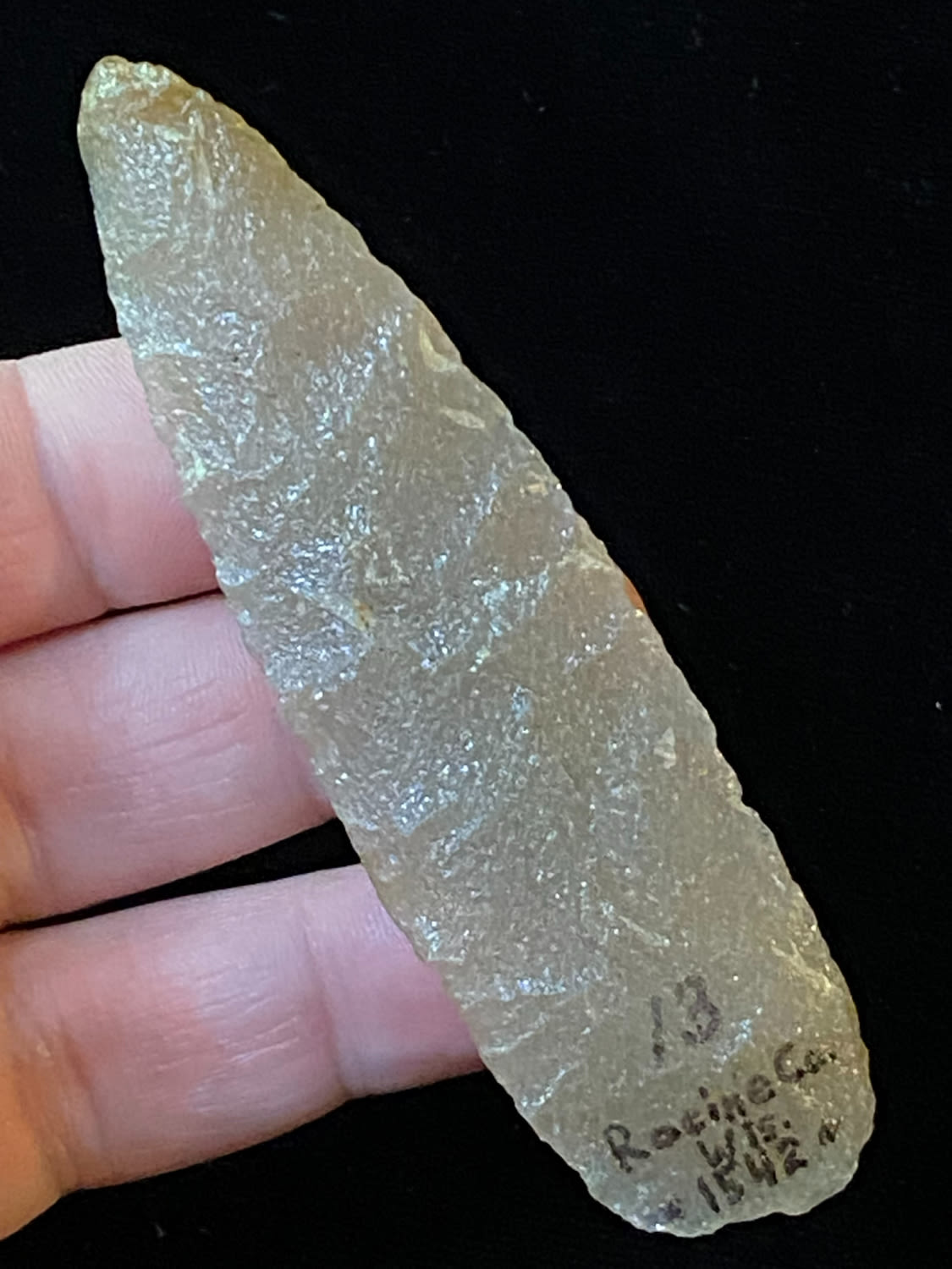 3 1/2" Extra Fine Archaic Lance- Hixton Quartz- Racine Co Wisconsin- Ex David Stilp Ex Joe Blistein