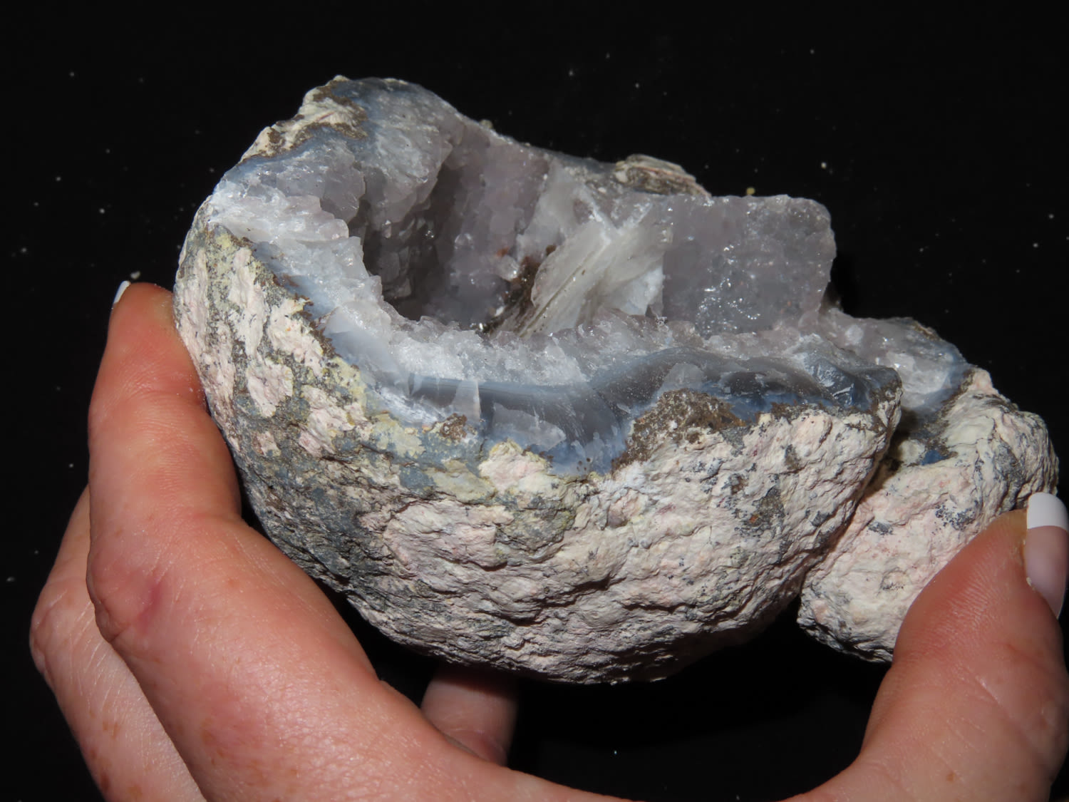 4 1/2″ Half Coconut Geode with Blues and Whites