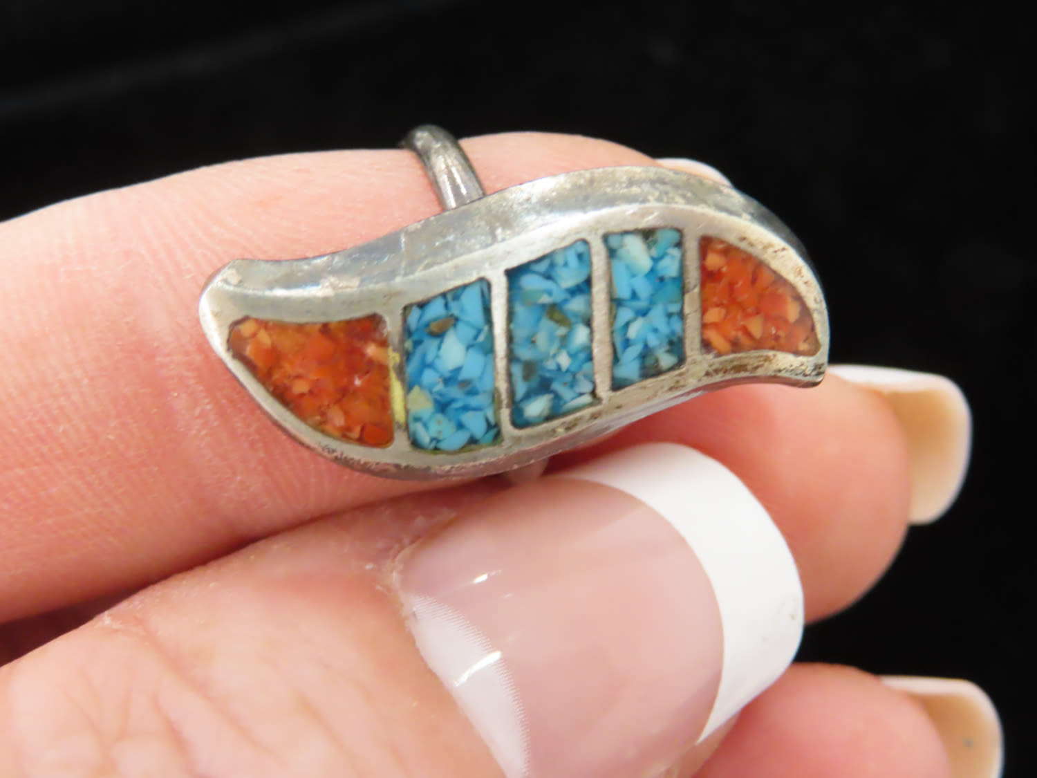 Size 3 Woman’s Sterling Silver Turquoise and Coral Ring