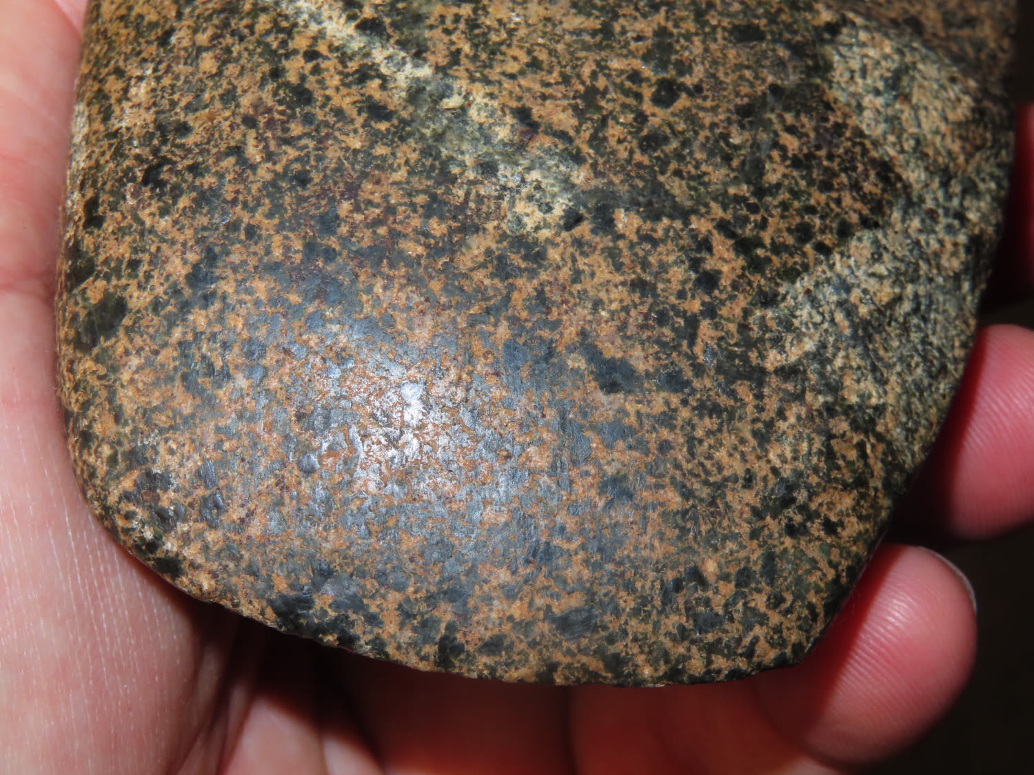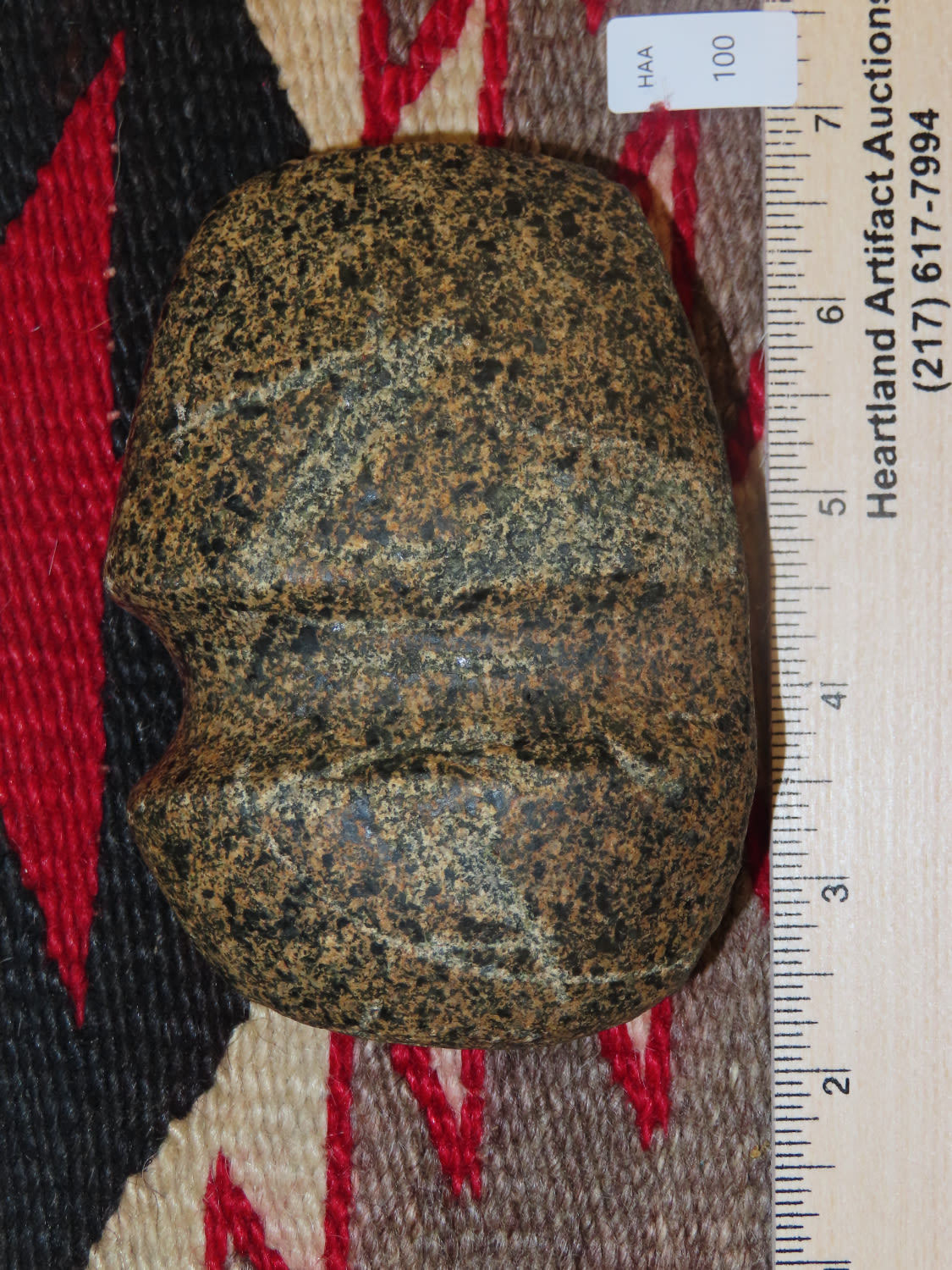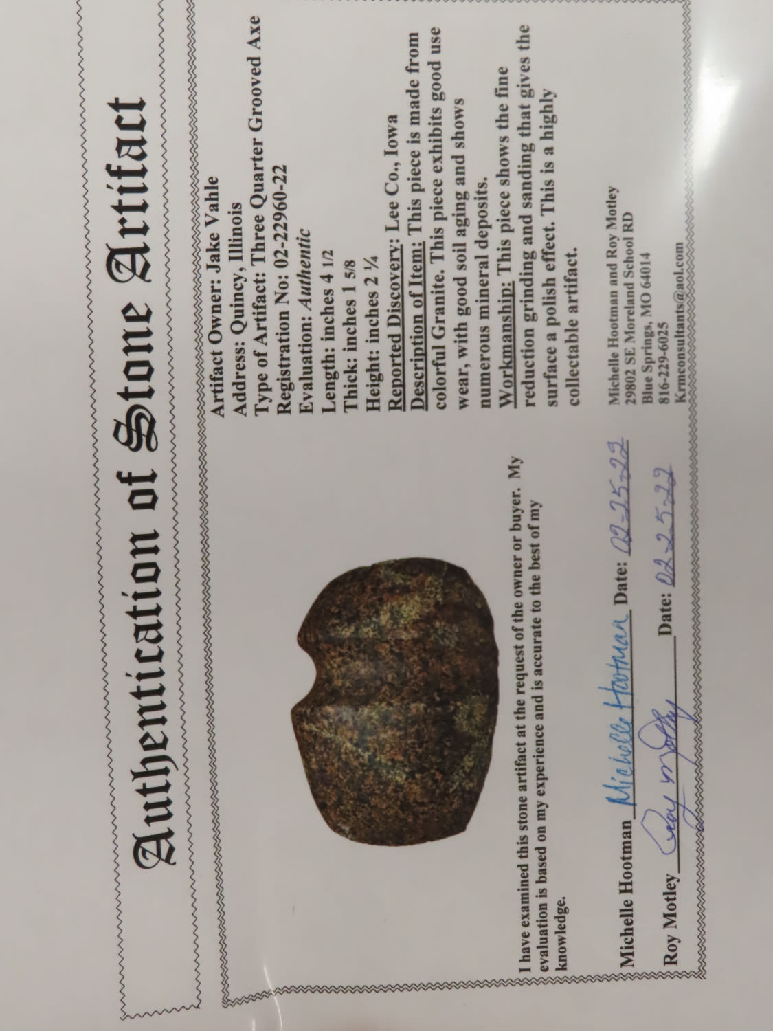 4 1/2″ 3/4 Groove Axe Motley COA, found in Lee County Iowa, lightly fluted Bottom with good color