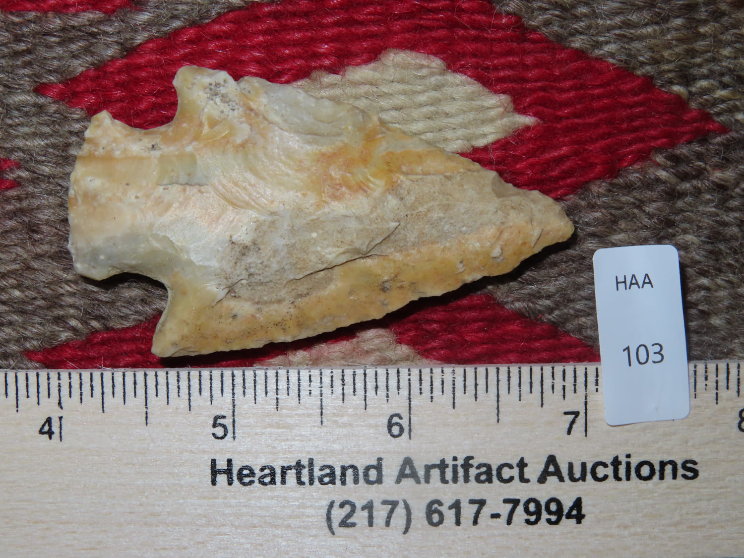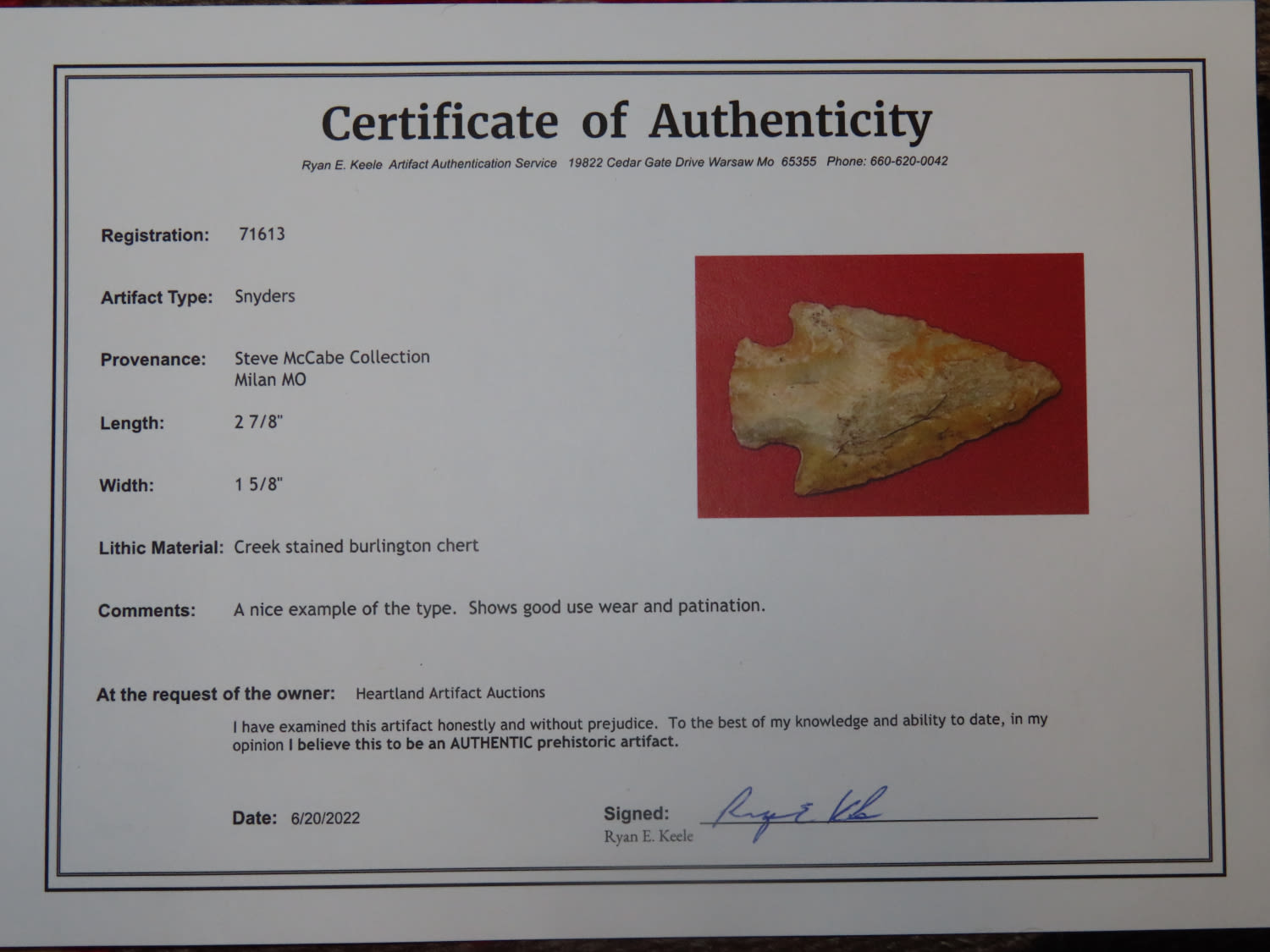 2 7/8″ quality Snyders, Keele COA, made of Creek Stained Burlington Chert found in Sullivan County Missouri, ex Steve McCabe