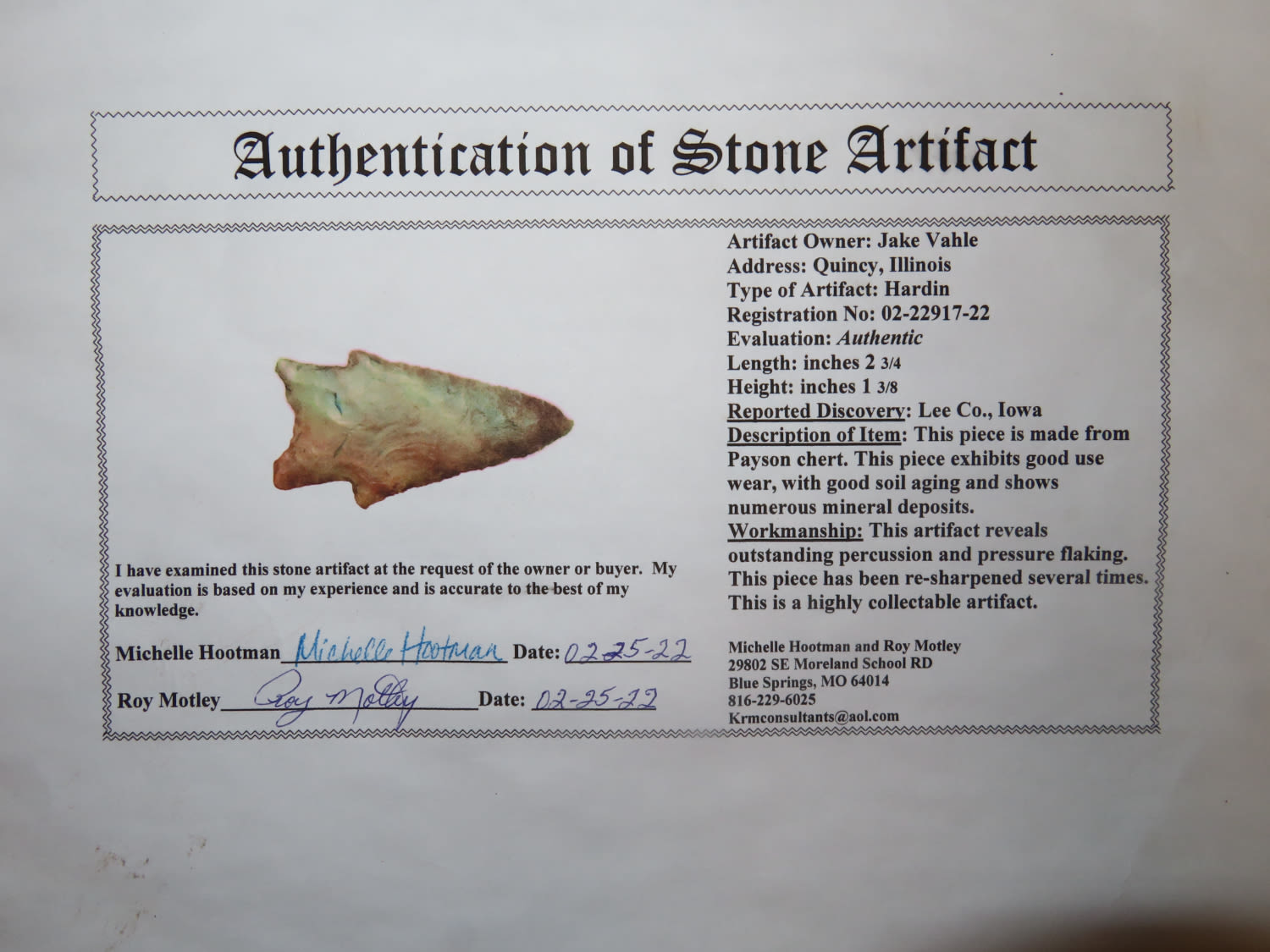 2 3/4″ Payson Chert Harden found in Lee County Iowa, Motley COA