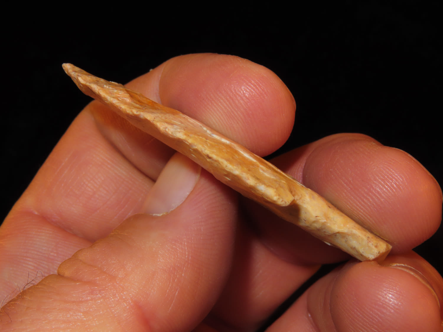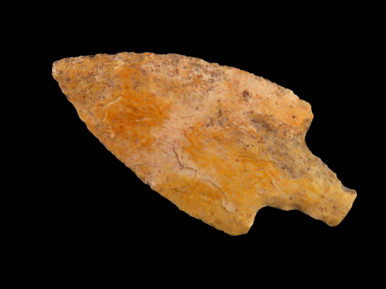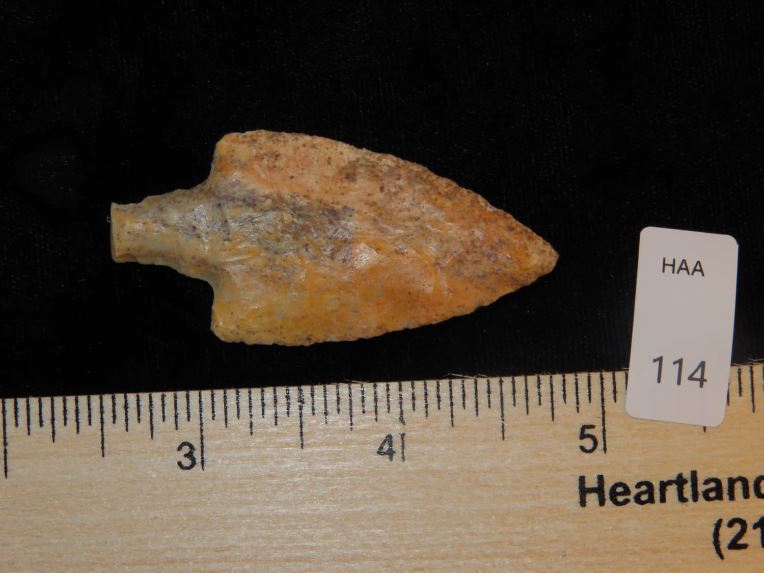 2 1/4″ Neatly Made Stemmed Point, Ex. Steve McCabe Collection, Milan, Sullivan County Missouri. Mr. McCabe collected from 1984 until 2022.