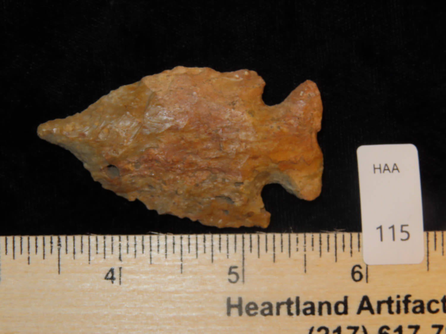 2 3/8″ Corner Notch Drill, Ex. Steve McCabe Collection, Milan, Sullivan County Missouri. Mr. McCabe collected from 1984 until 2022.
