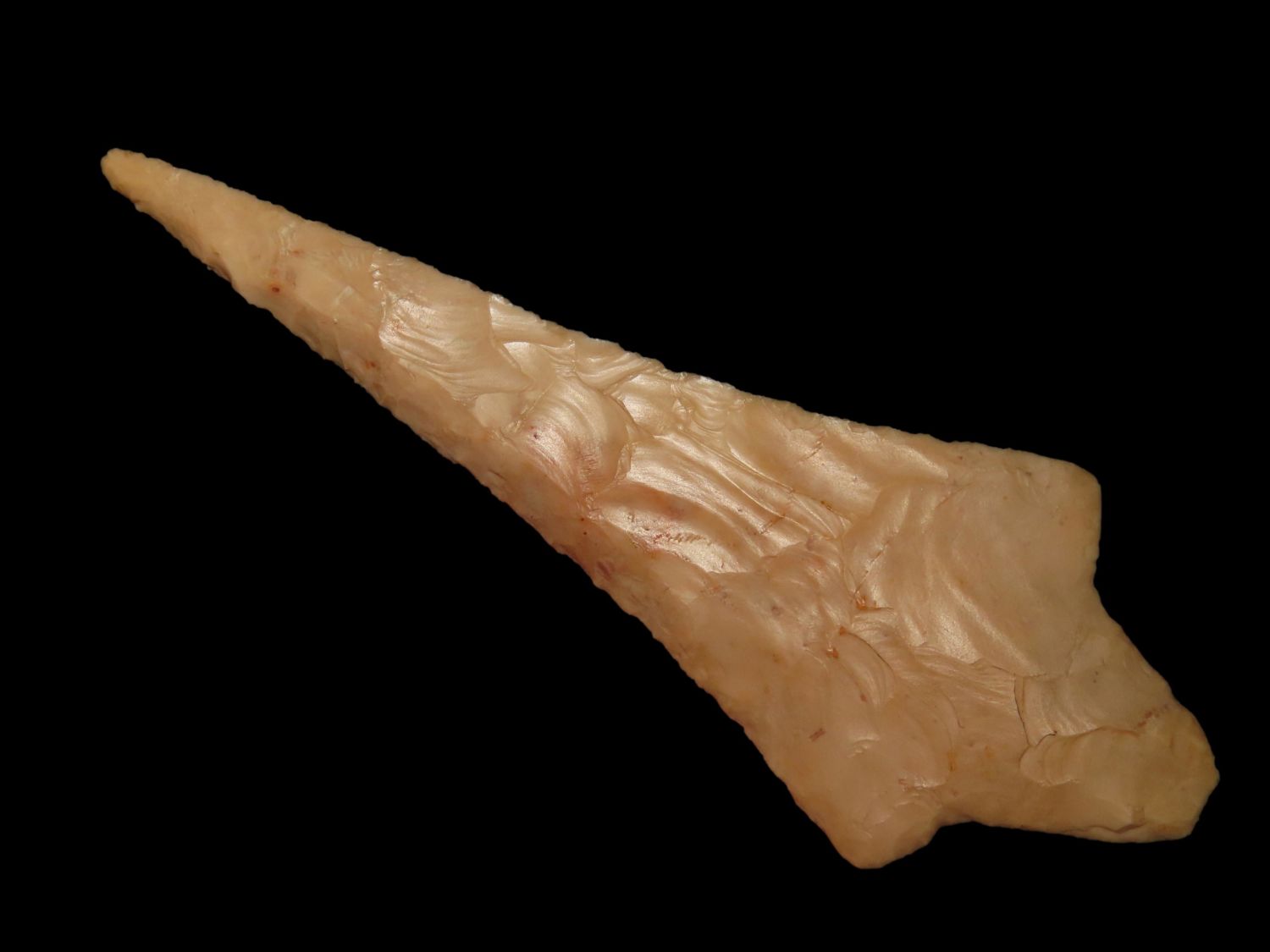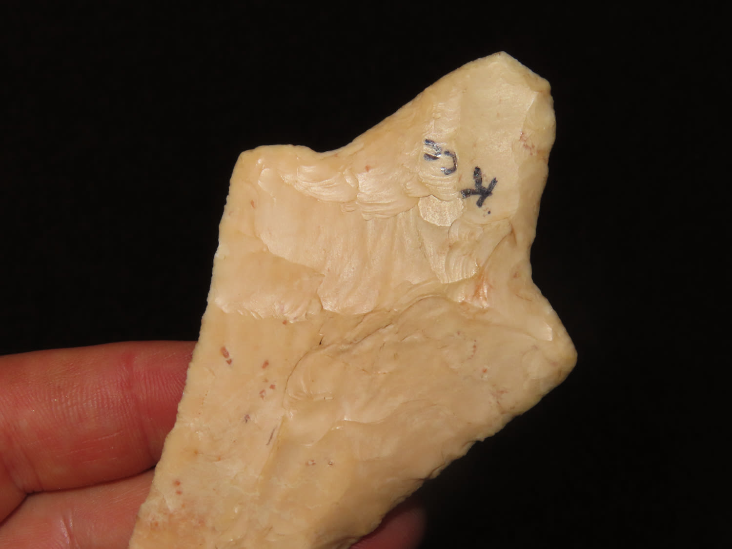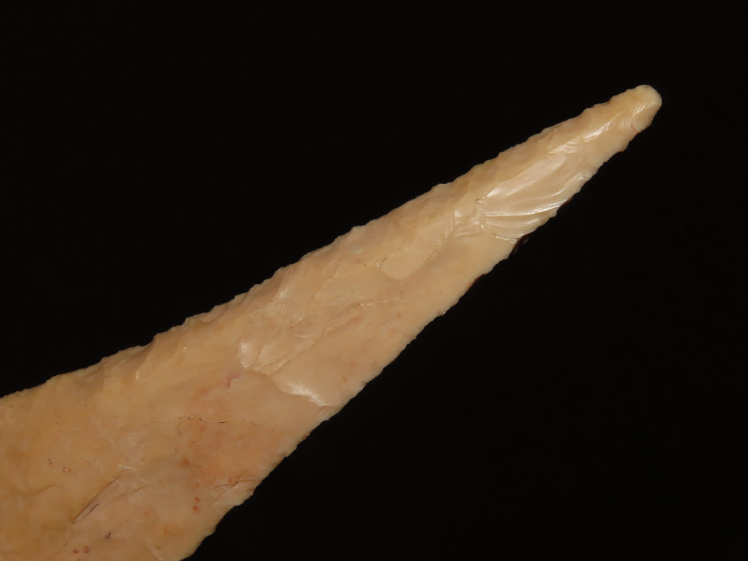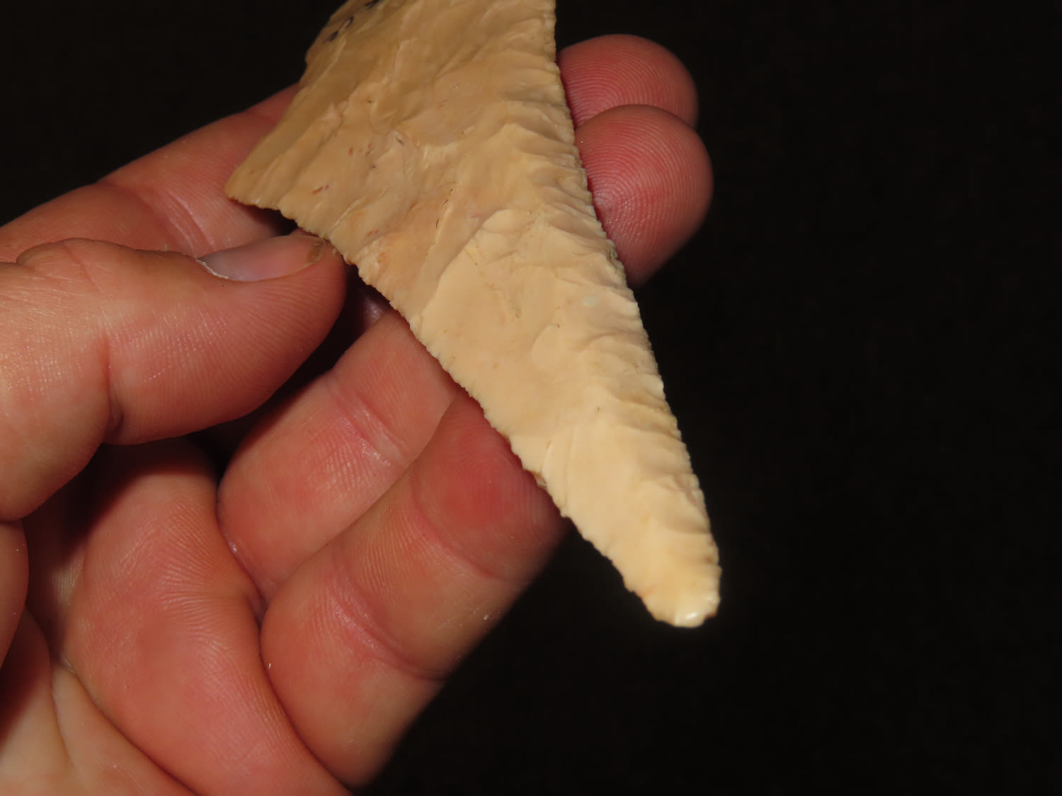 6″ Dickson, Recovered in Missouri, Josh Davis G10 COA, Ex Ron Marcou, Colorful Heat Treated Burlington. Nicely beveled and decently flared ears giving it a unique bit of style.