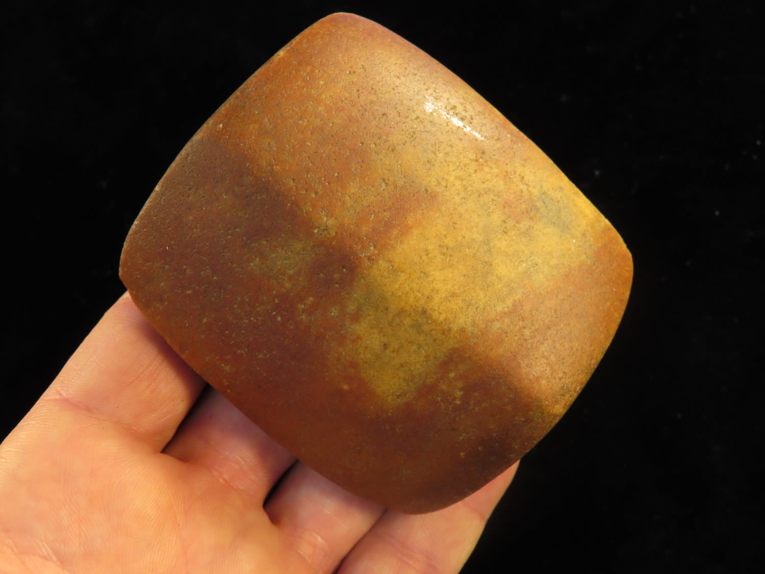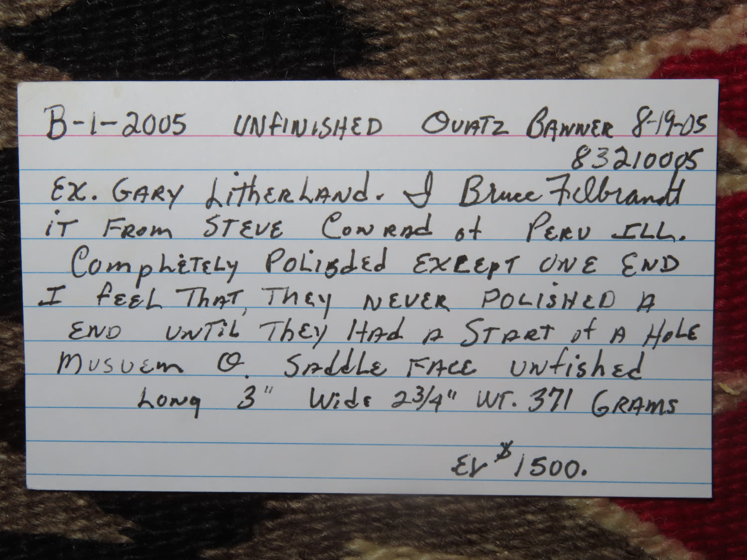 3″ Quartz Bannerstone, unfinished, ex Bruce Filbrandt, Gary Litherland, Steve Conrad, Saddle Face example, very colorful with a nice finish