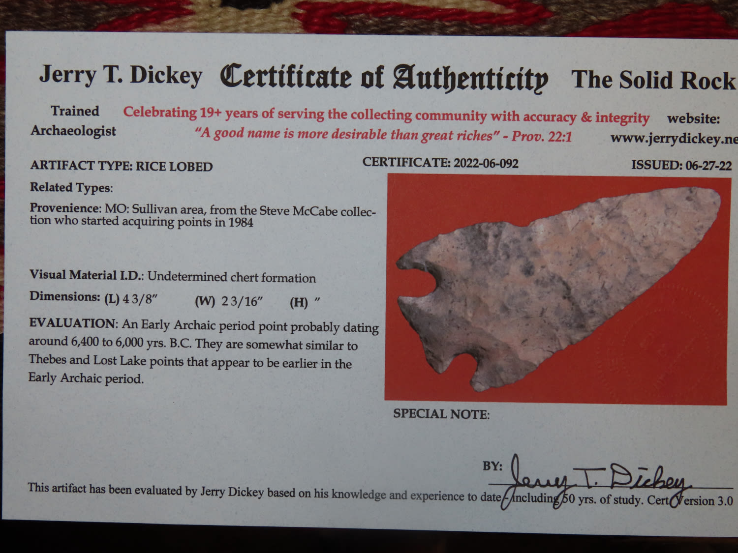 4 3/8″ Rice Lobed Dickey COA, Ex. Steve McCabe Collection, Milan, Sullivan County Missouri. Mr. McCabe collected from 1984 until 2022.