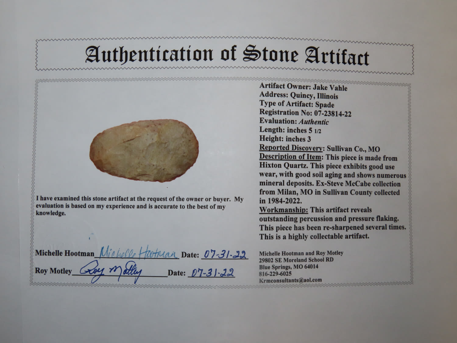 5 1/2″ Hixton Quartz Spade. Motley Coa, Ex. Steve McCabe Collection, Milan, Sullivan County Missouri. Mr. McCabe collected from 1984 until 2022.