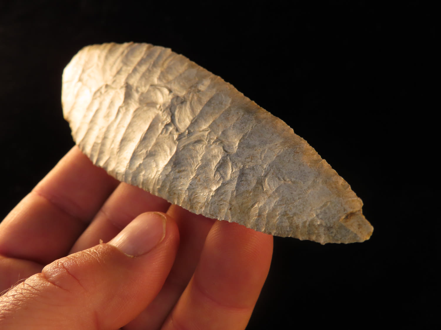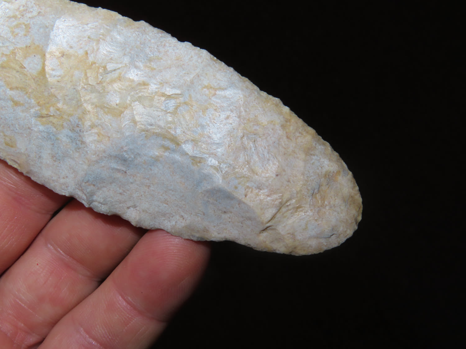 5 1/2″ Lerma Blade, nice river staining, found in Pike Co. Missouri