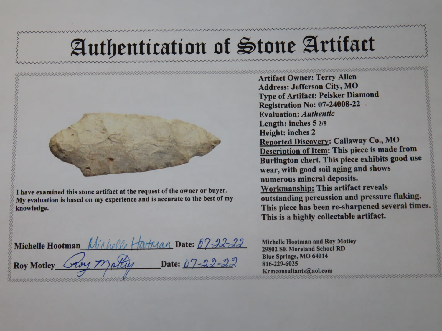 5 3/8″ Peisker Diamond, Motley COA, Calloway Co Missouri