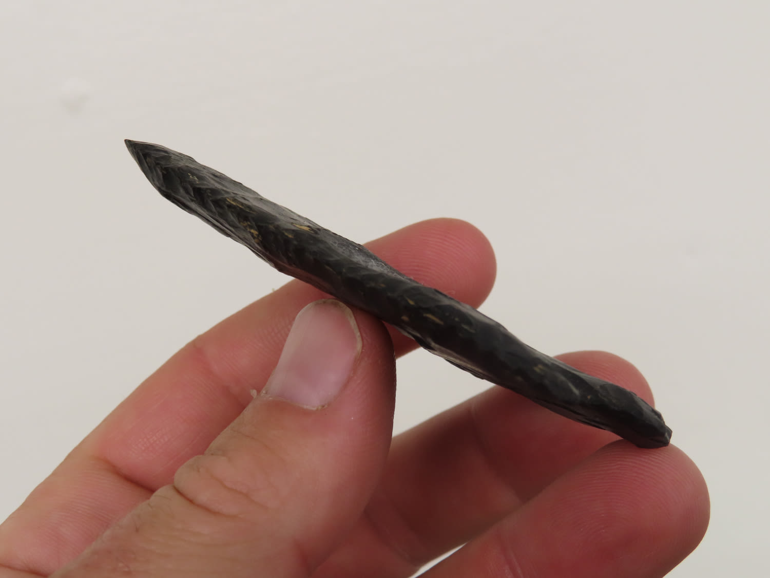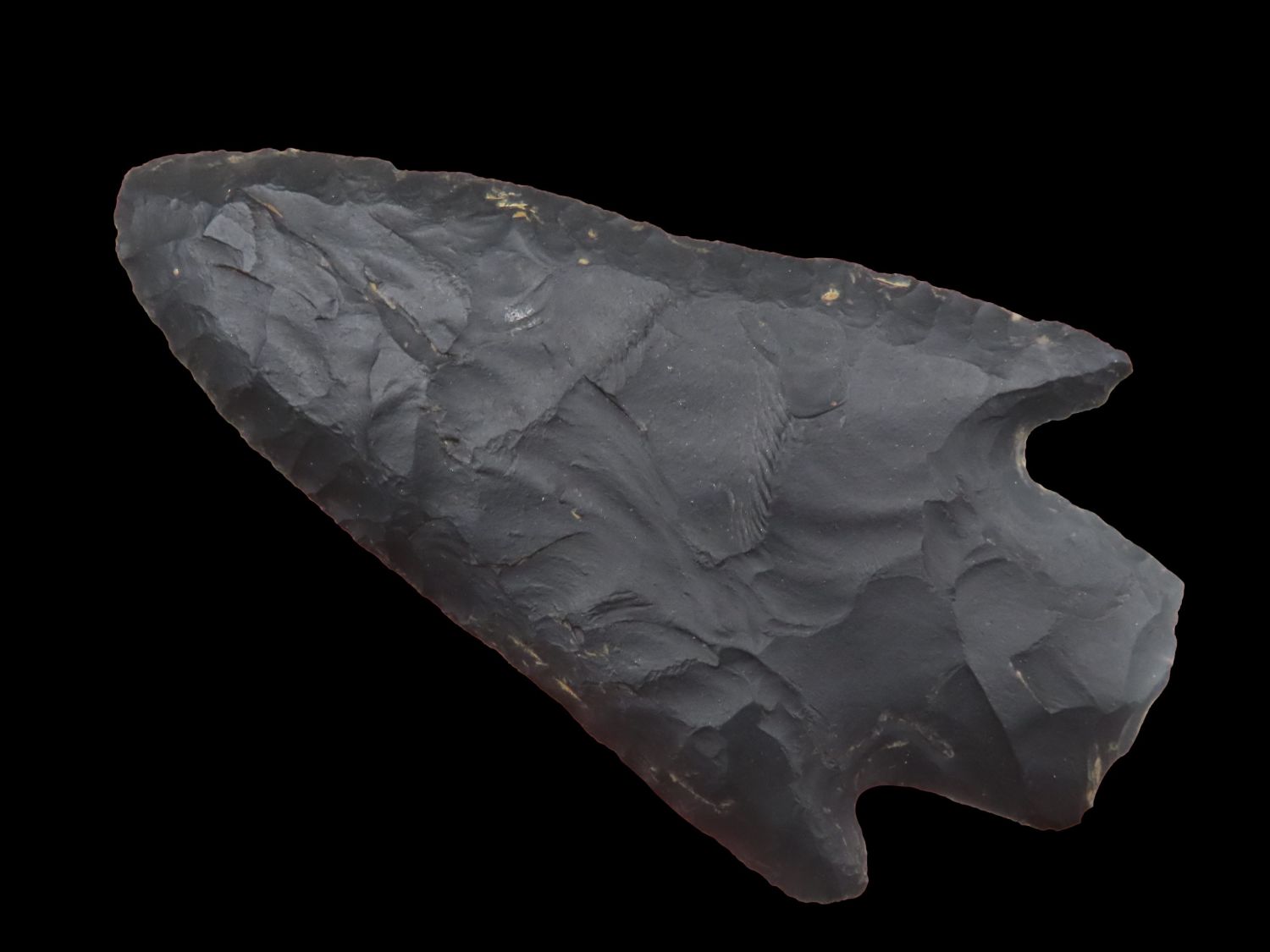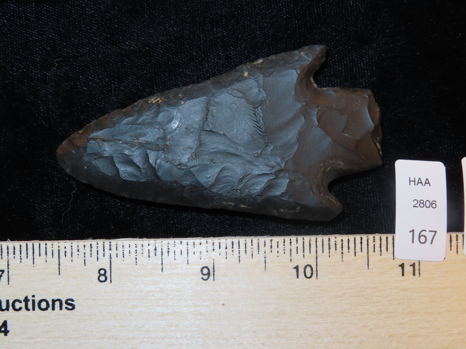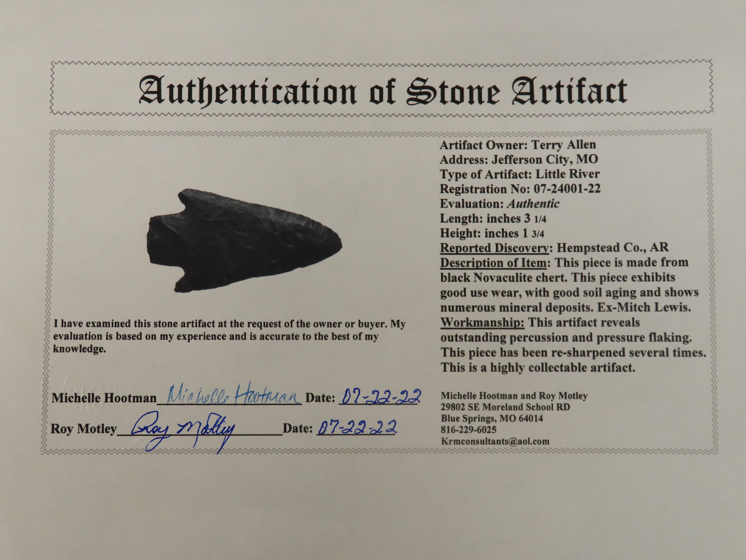 3 1/4″ Little River, Motley COA, made of high grade black Novaculite, found in Hempstead Co Arkansas