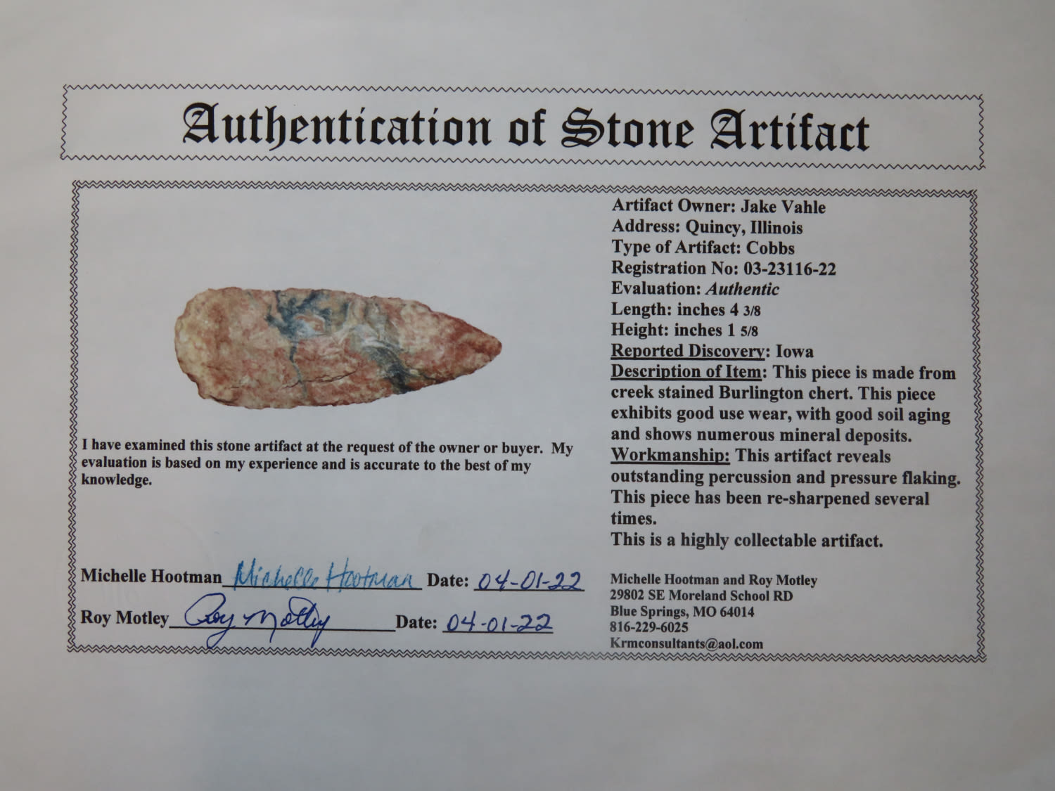 4 3/8″ Colorful Cobbs Blade, Motley COA, found in Iowa