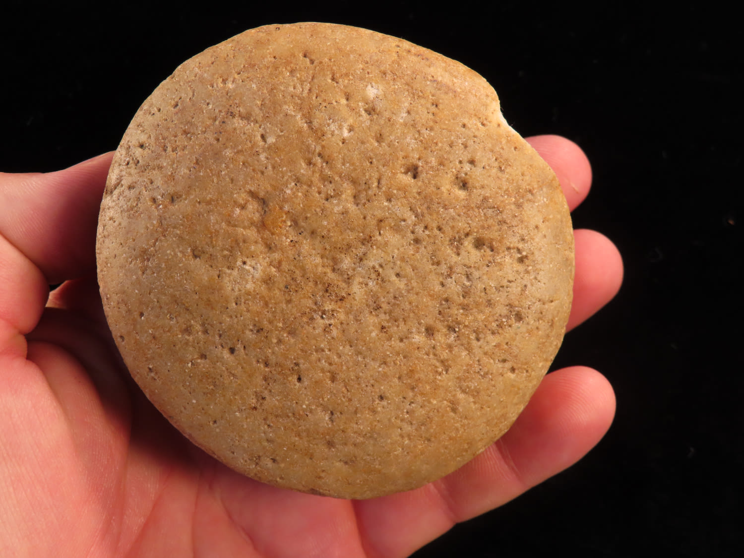 3 3/4″ Honey Quartz Discoidal found in Cooper Co Missouri, Ex Scott Ryburn Collection