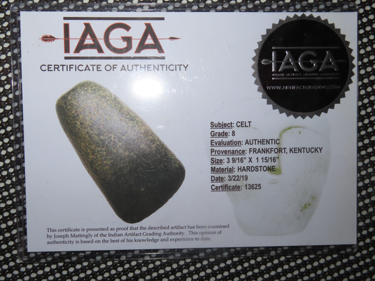3 1/2″ Celt, found in Frankfurt, Kentucky, Ex Scott Ryburn Collection