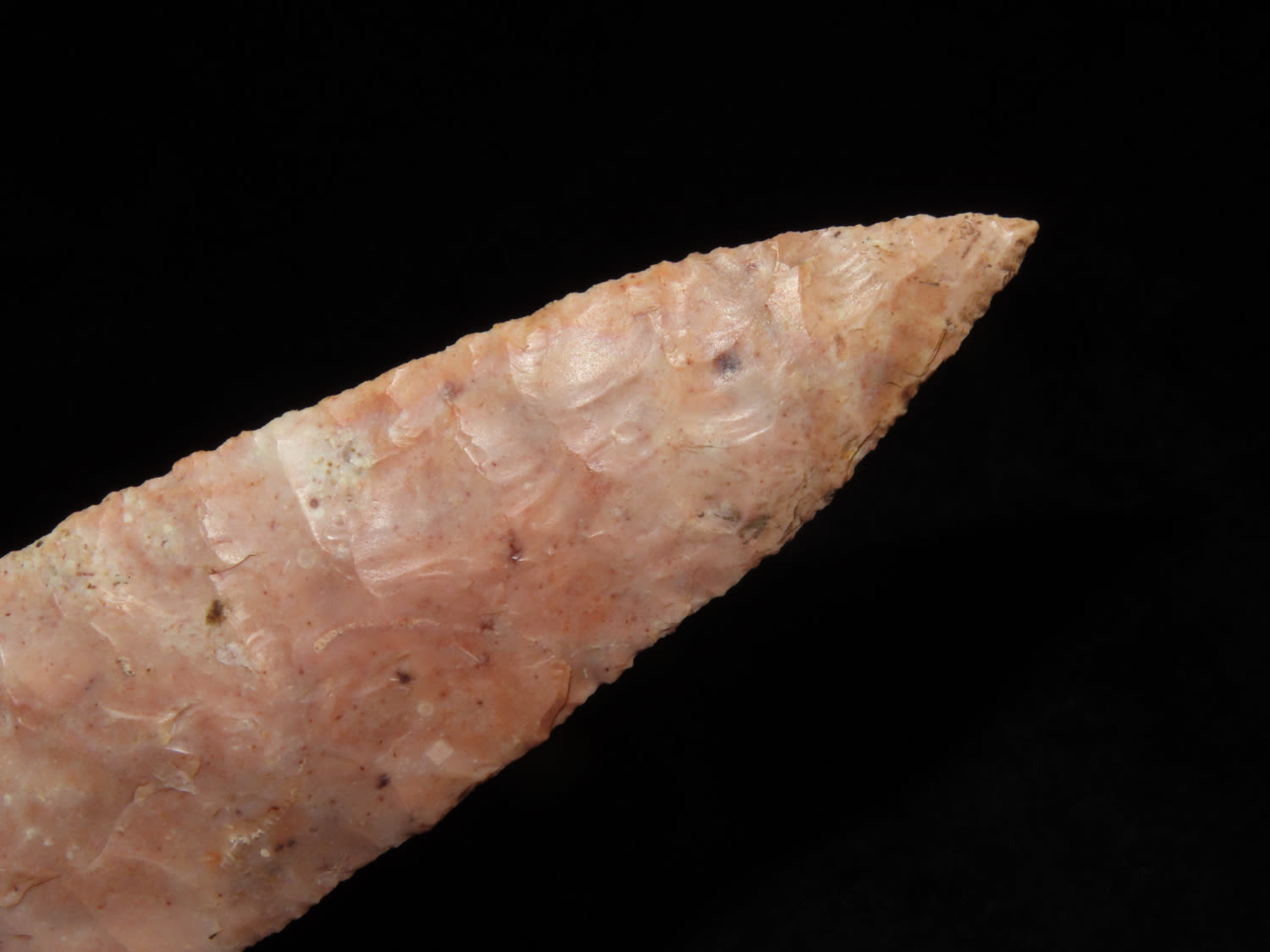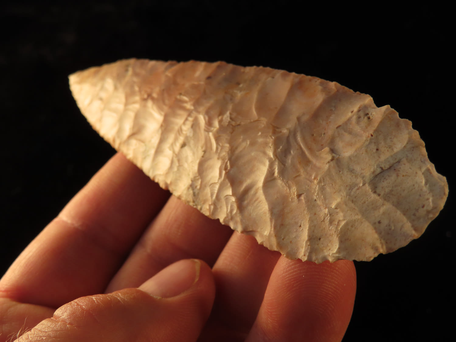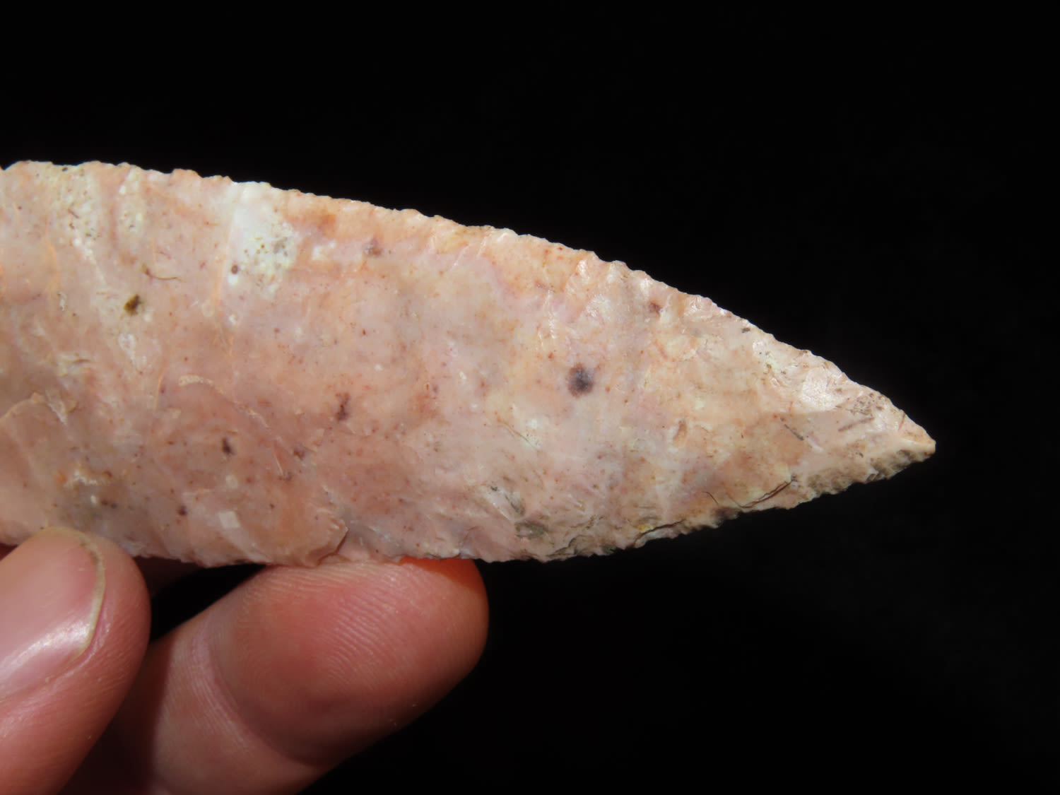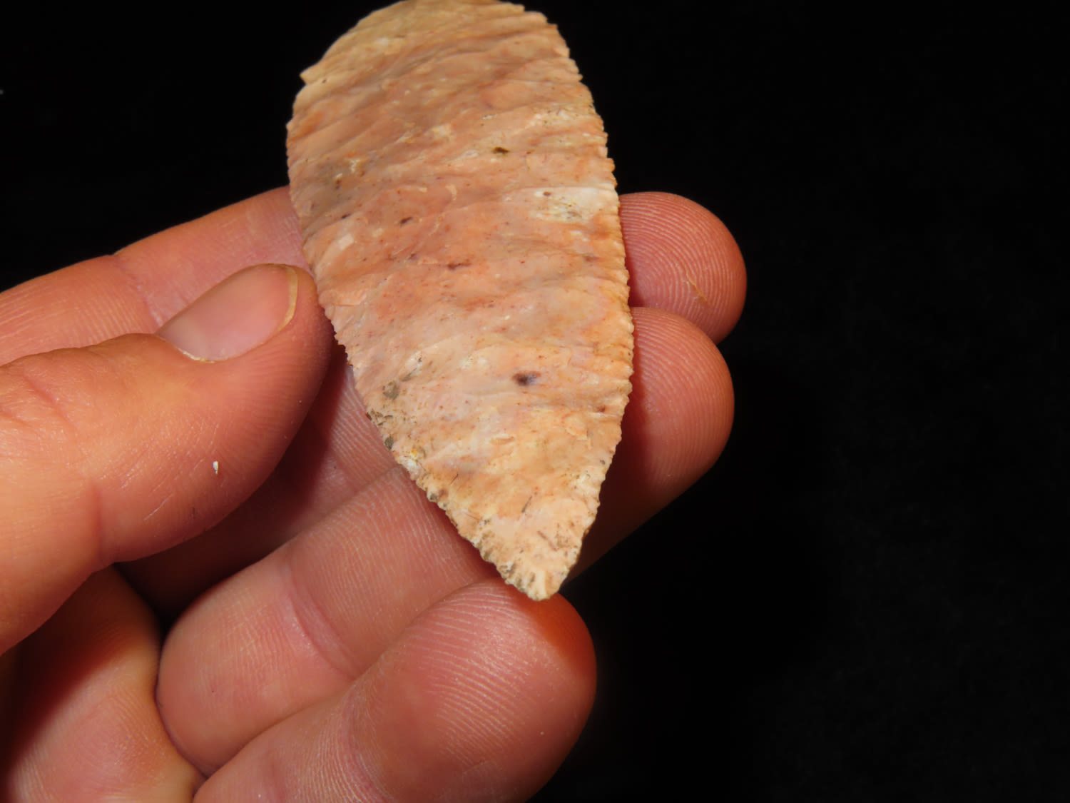 4 3/4″ Bass Blade, Stermer CO-Very thin and well flaked, Ex. Steve McCabe Collection, Milan, Sullivan County Missouri. Mr. McCabe collected from 1984 until 2022.