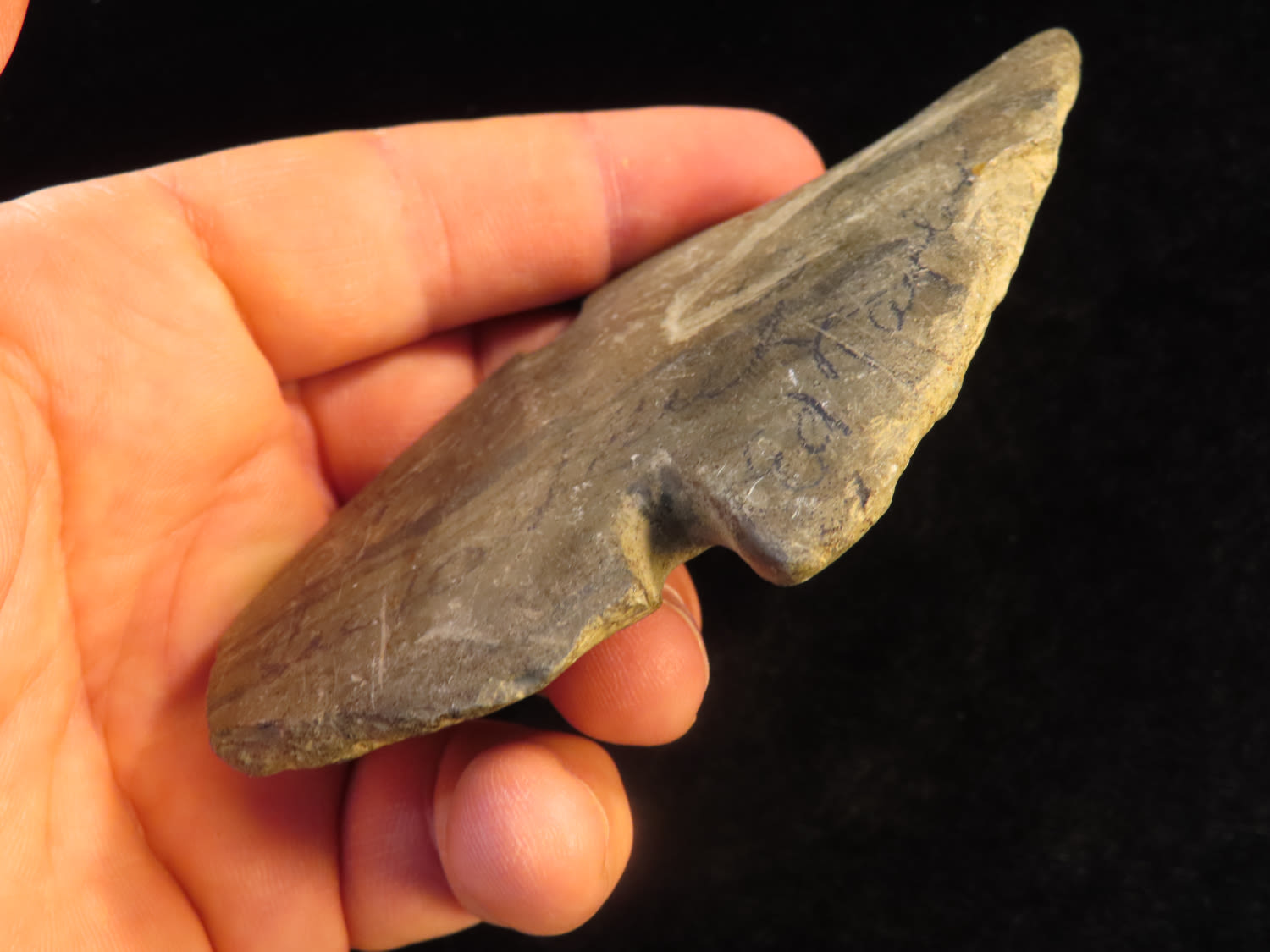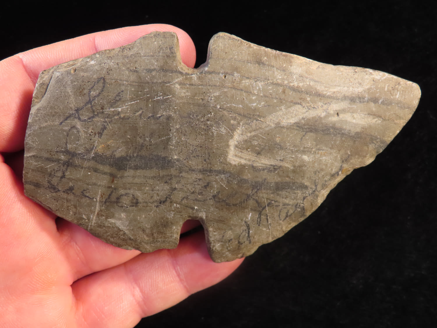 4″ Slate Tie-on Bannerstone found in Northern Illinois