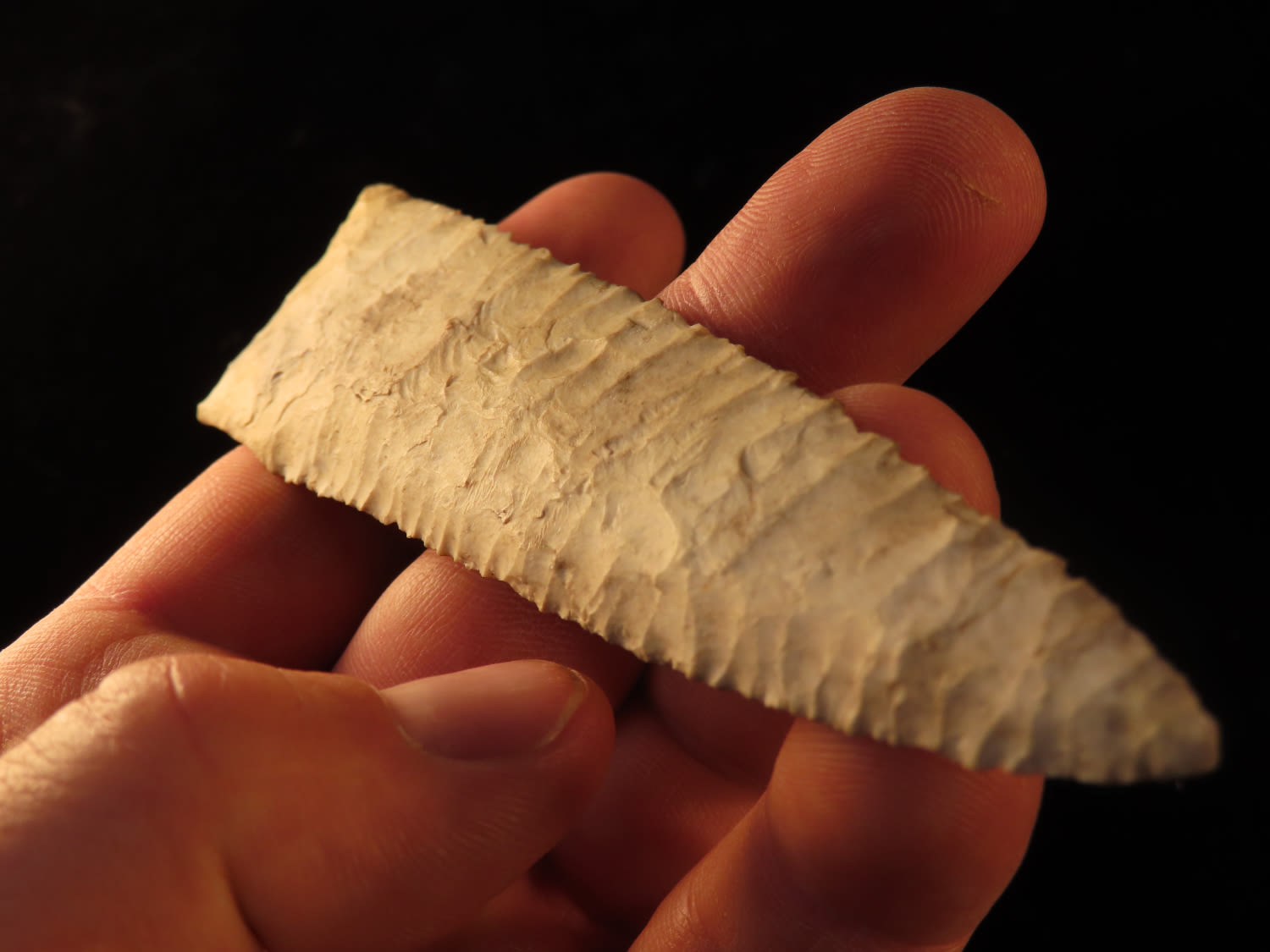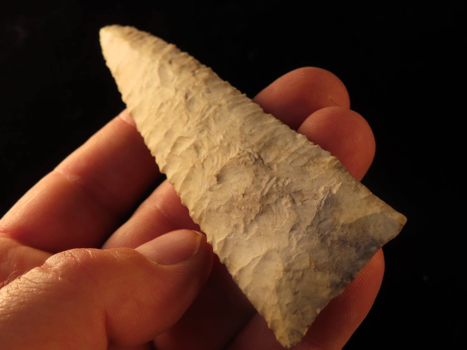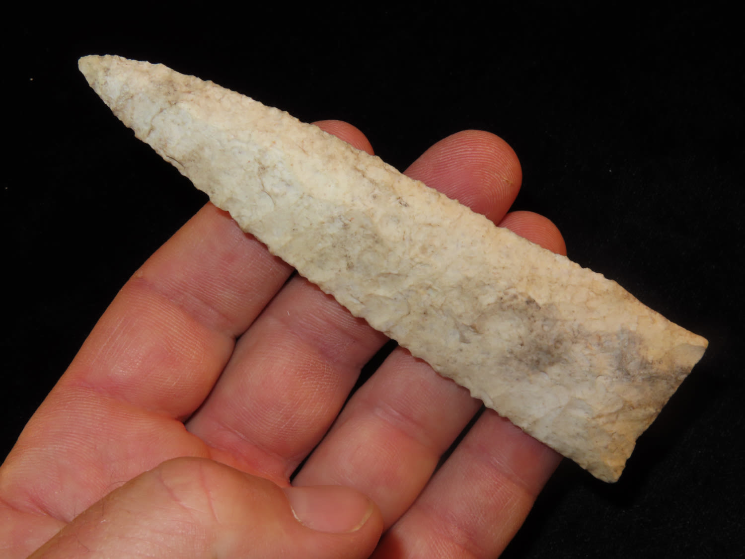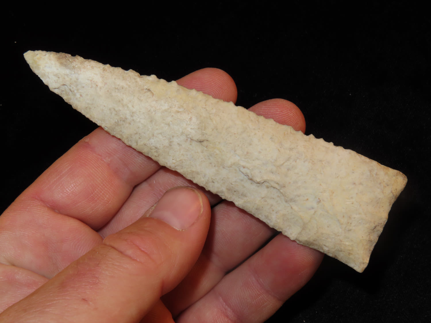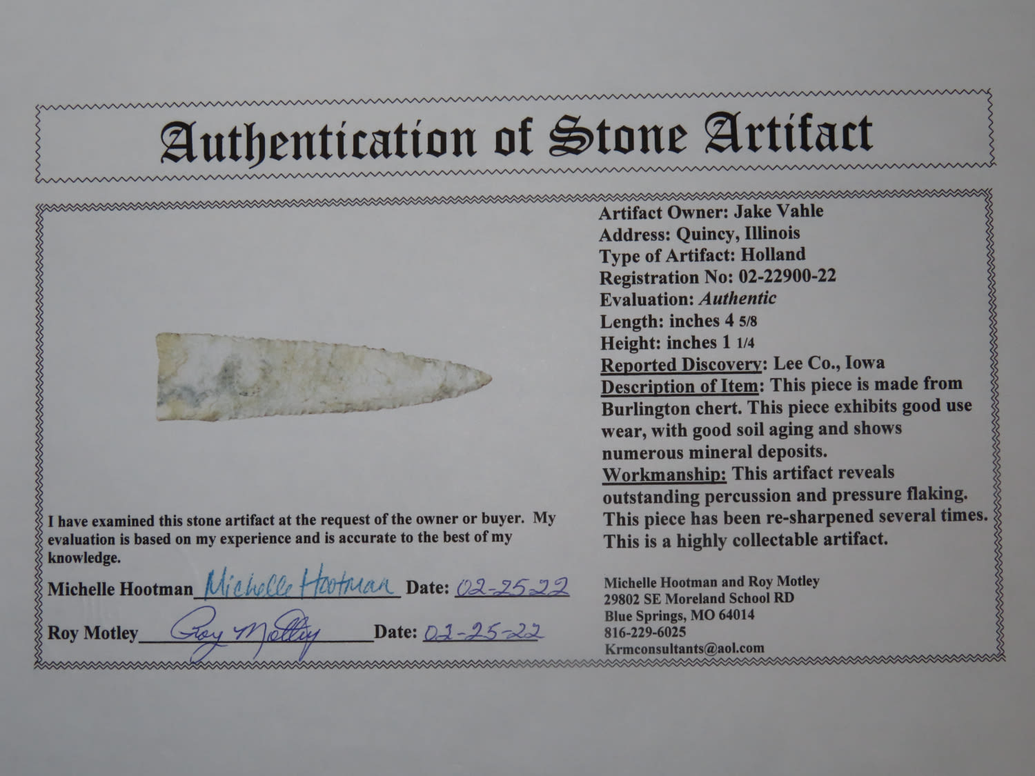 4 5/8″ High Quality Holland Dalton, Motley COA, found in Lee County Iowa, Very Well Flaked and made from Burlington Chert