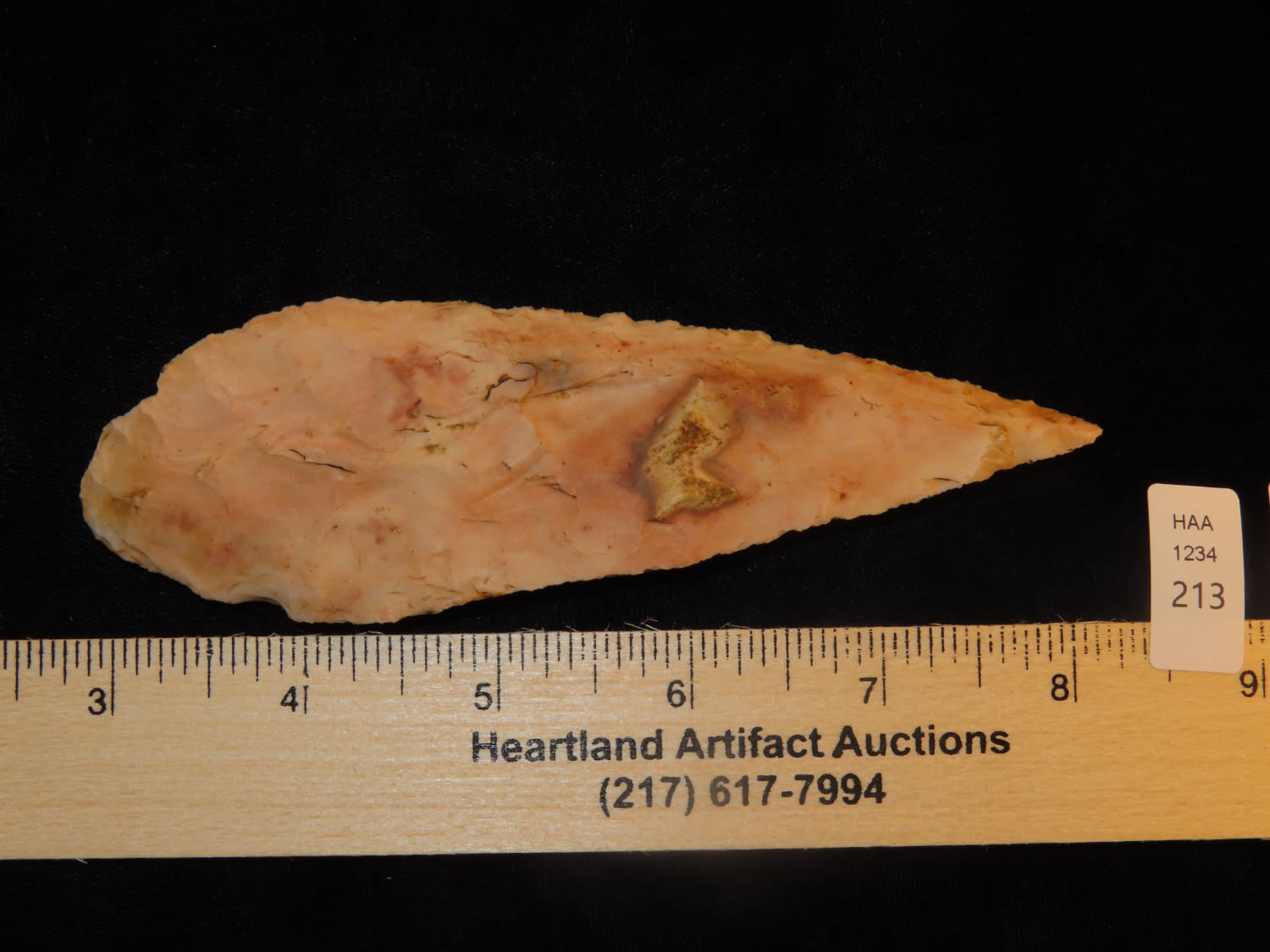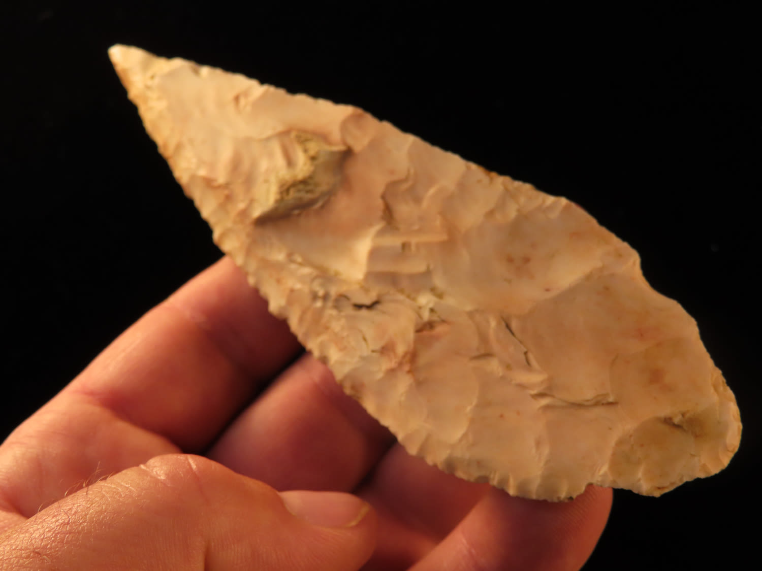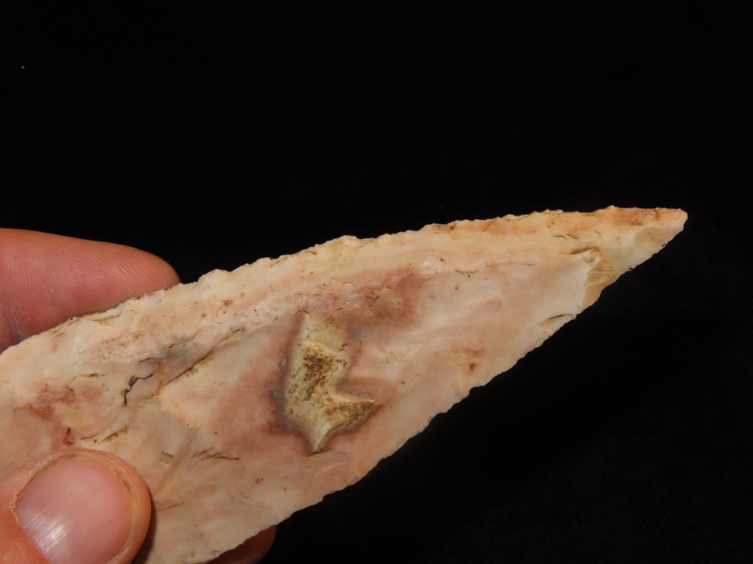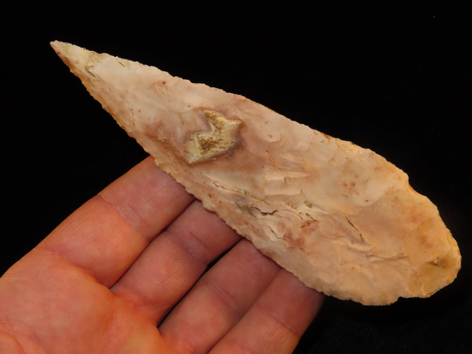 5 1/4″ Warsaw Tabular, Heavily Beveled Archaic Knife, Keele COA, Ex. Steve McCabe Collection, Milan, Sullivan County Missouri. Mr. McCabe collected from 1984 until 2022.