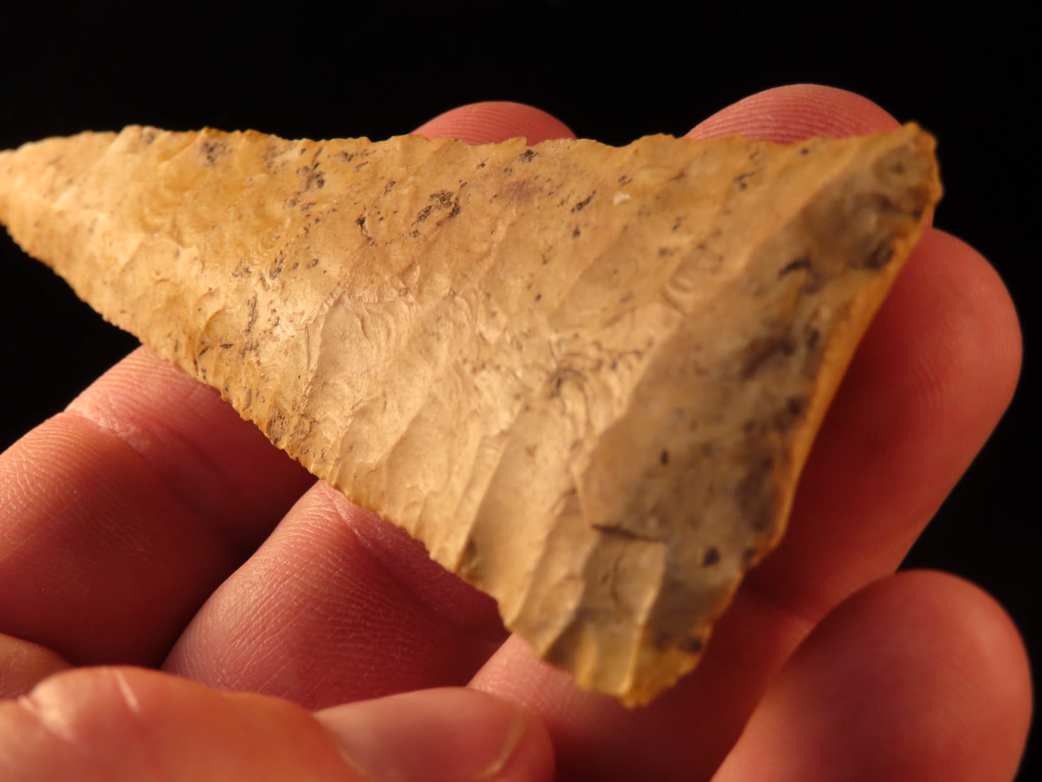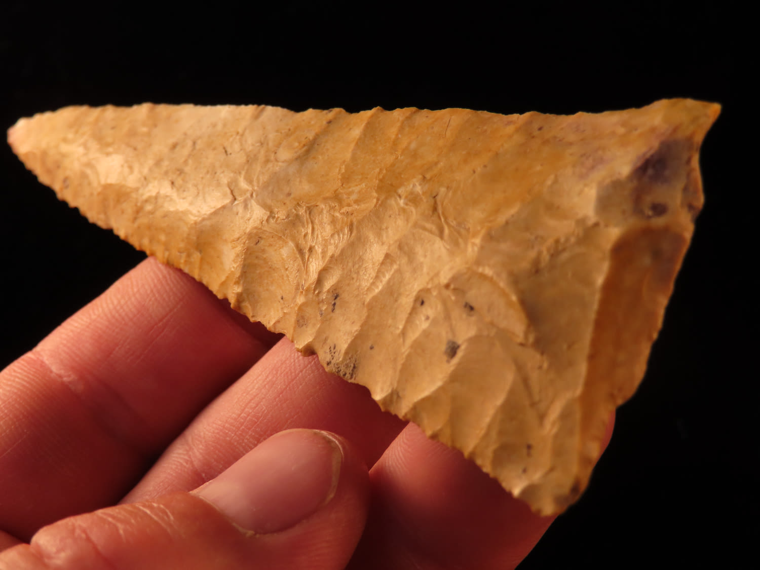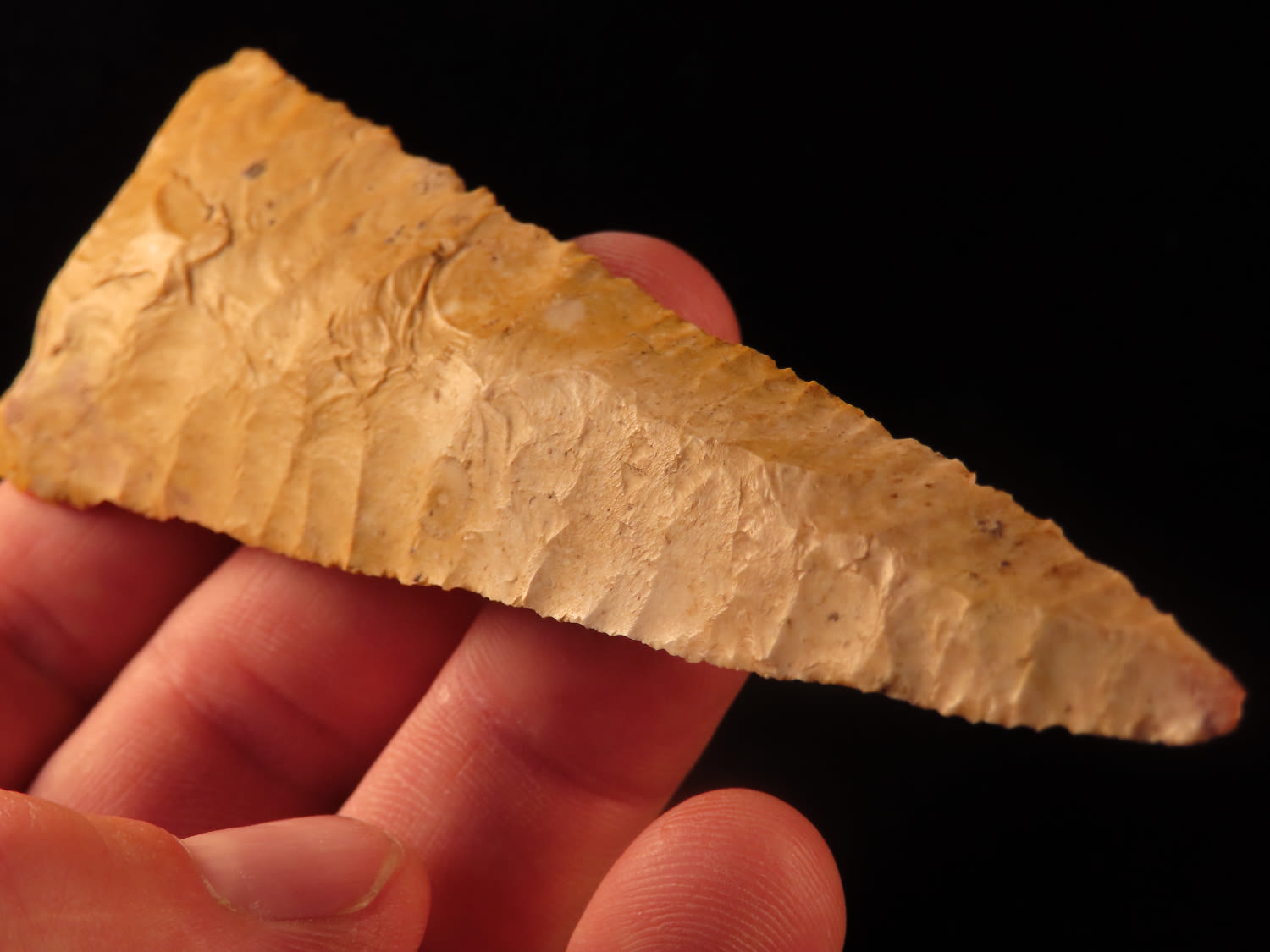 4 5/8″ Stanfield, Motley COA. Made from Bowling Green Brown, found in Clark Co Missouri-well flaked and nice beveling