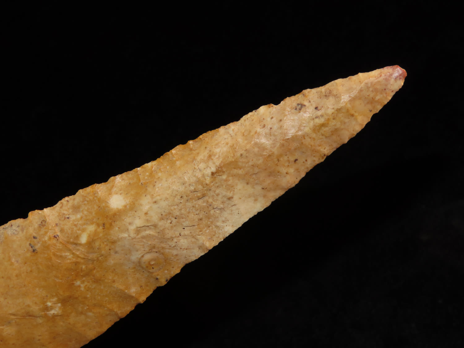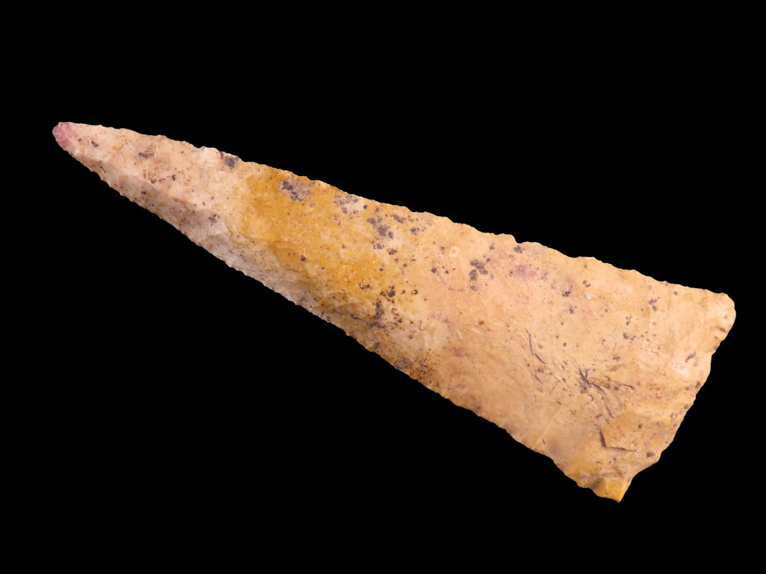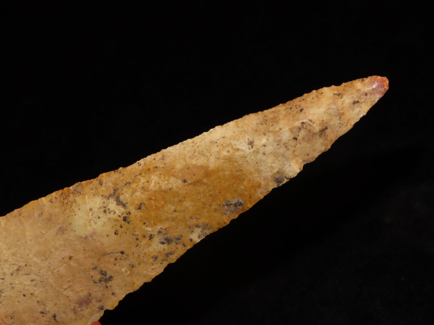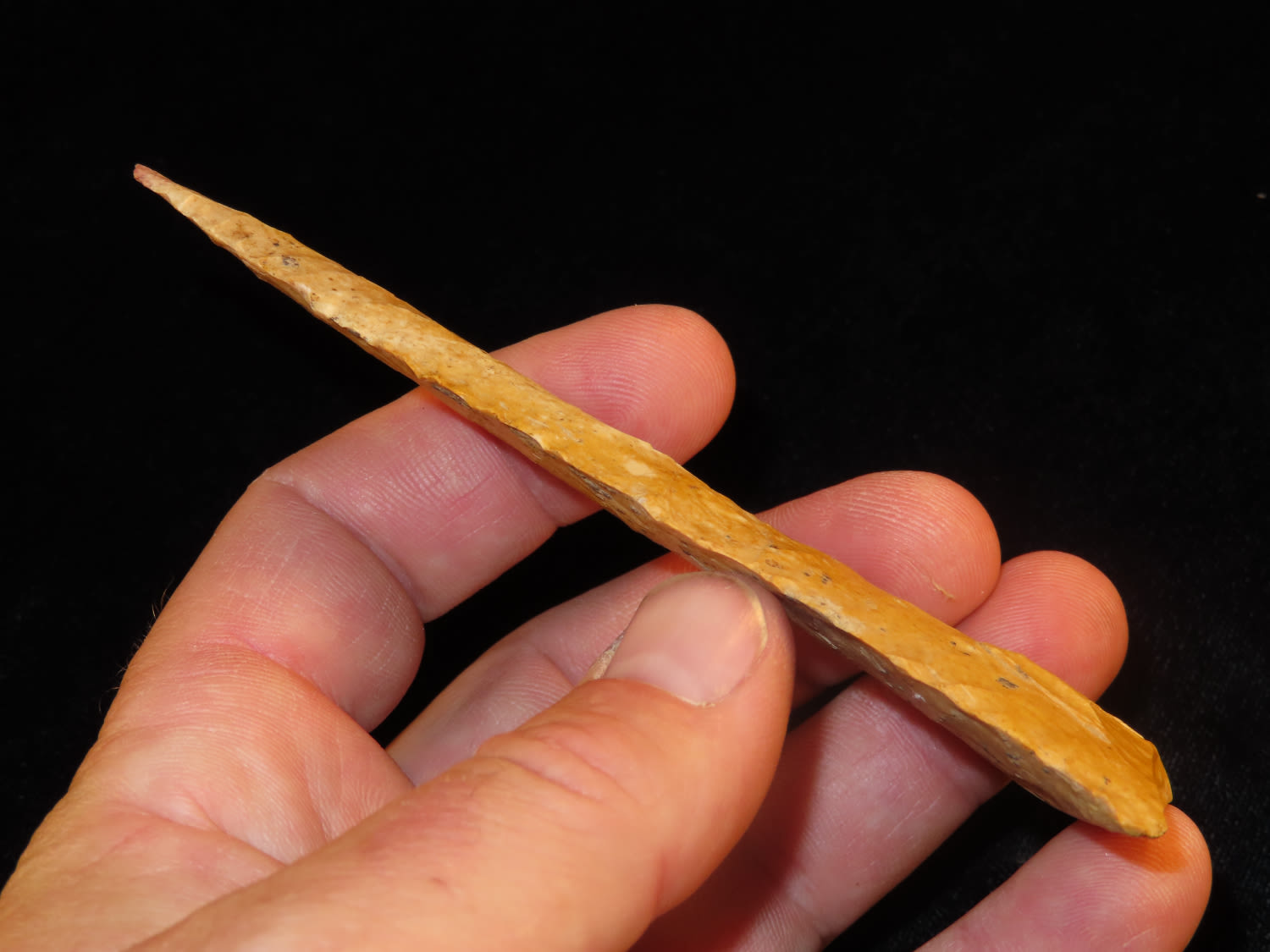 4 5/8″ Stanfield, Motley COA. Made from Bowling Green Brown, found in Clark Co Missouri-well flaked and nice beveling