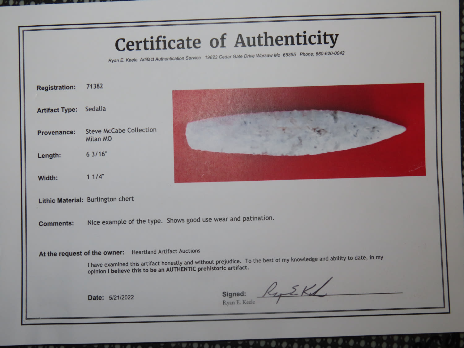 6 3/16″ Sedalia, Keele COA, Very fine flaking, and one of the finer Sedalia’s we have ever listed, Ex. Steve McCabe Collection, Milan, Sullivan County Missouri. Mr. McCabe collected from 1984 until 2022.