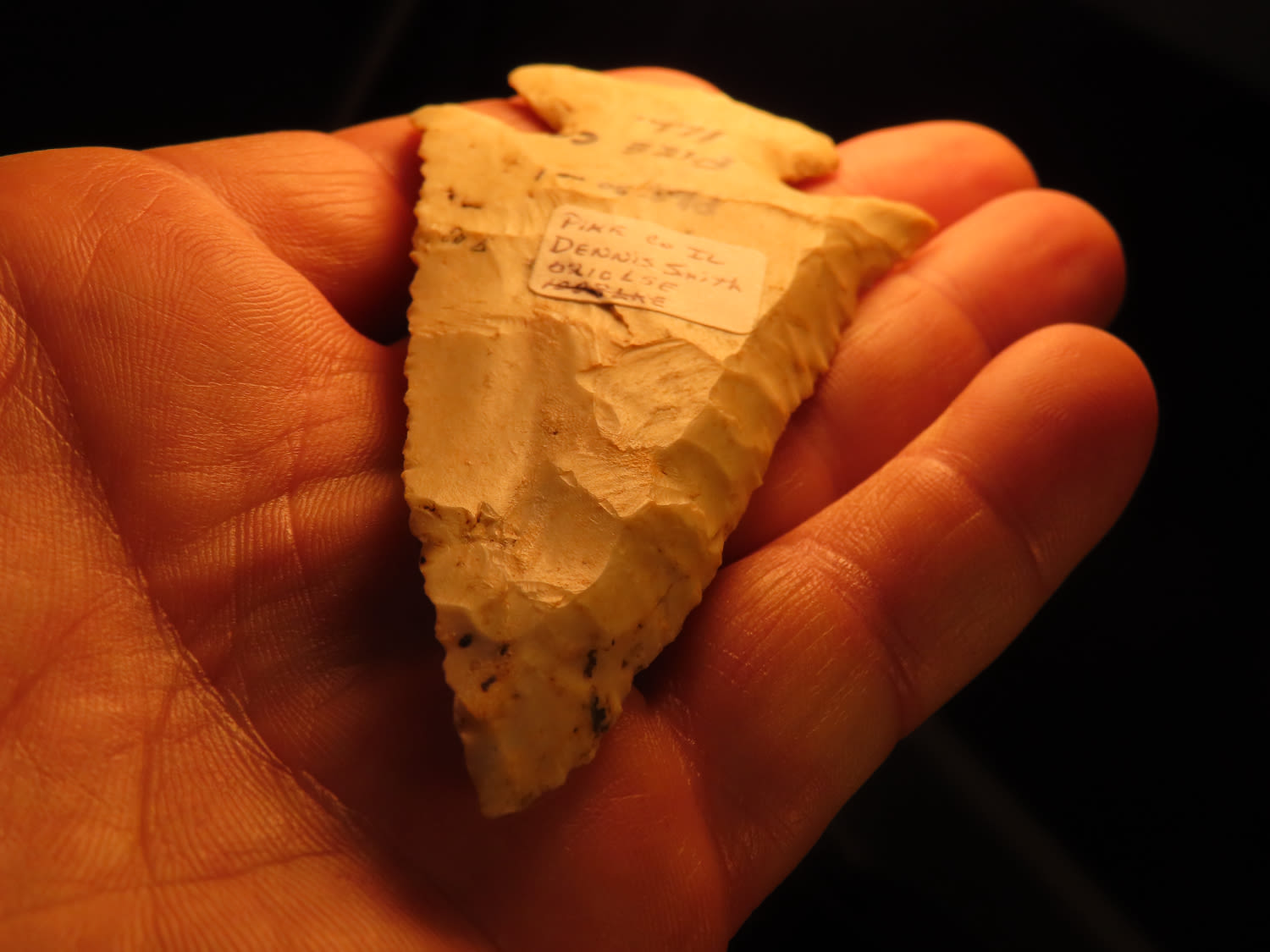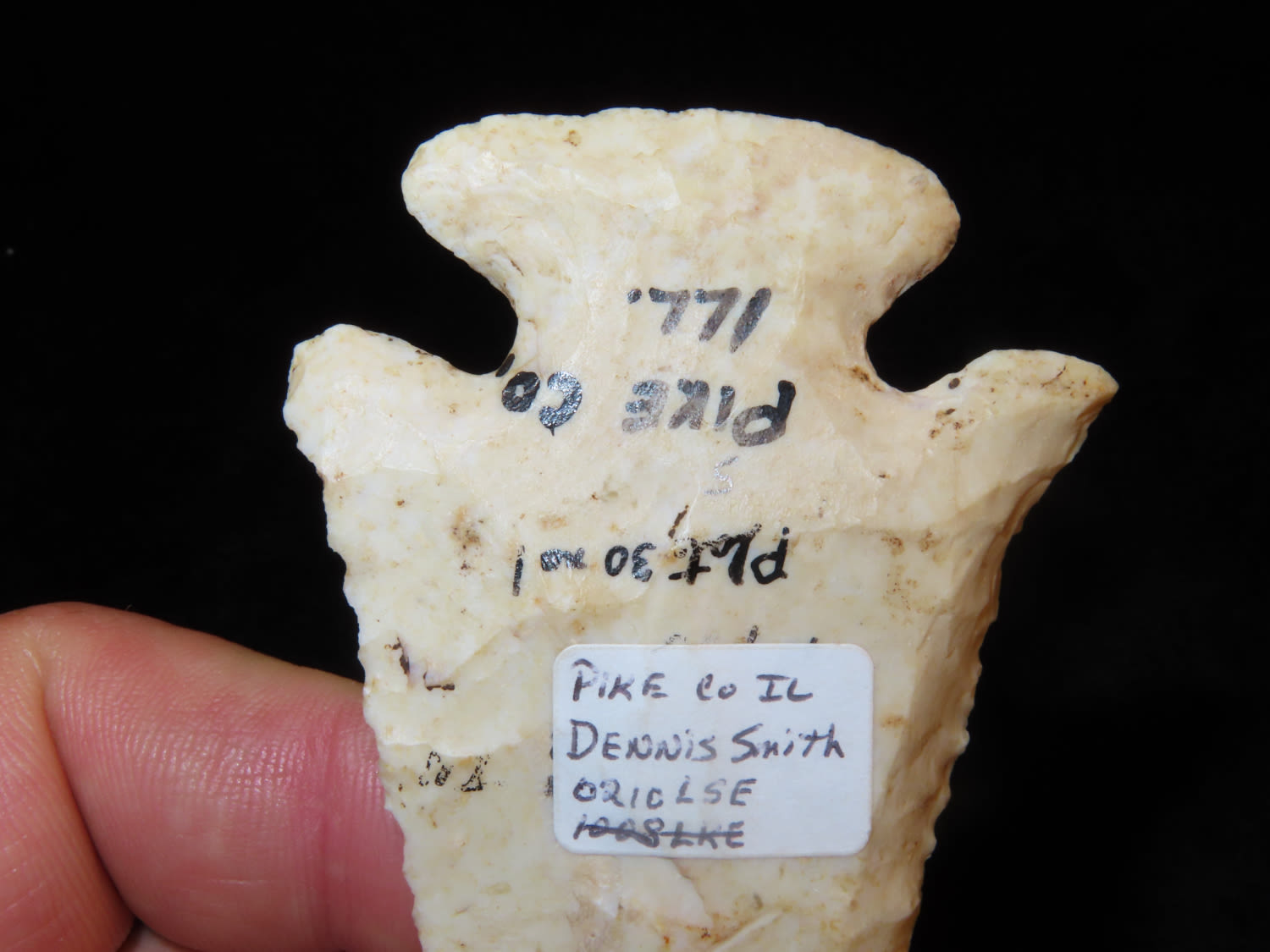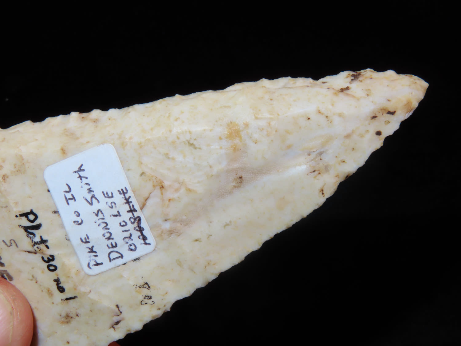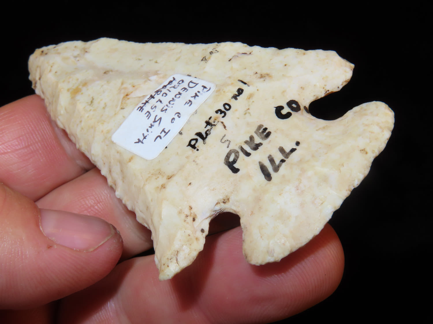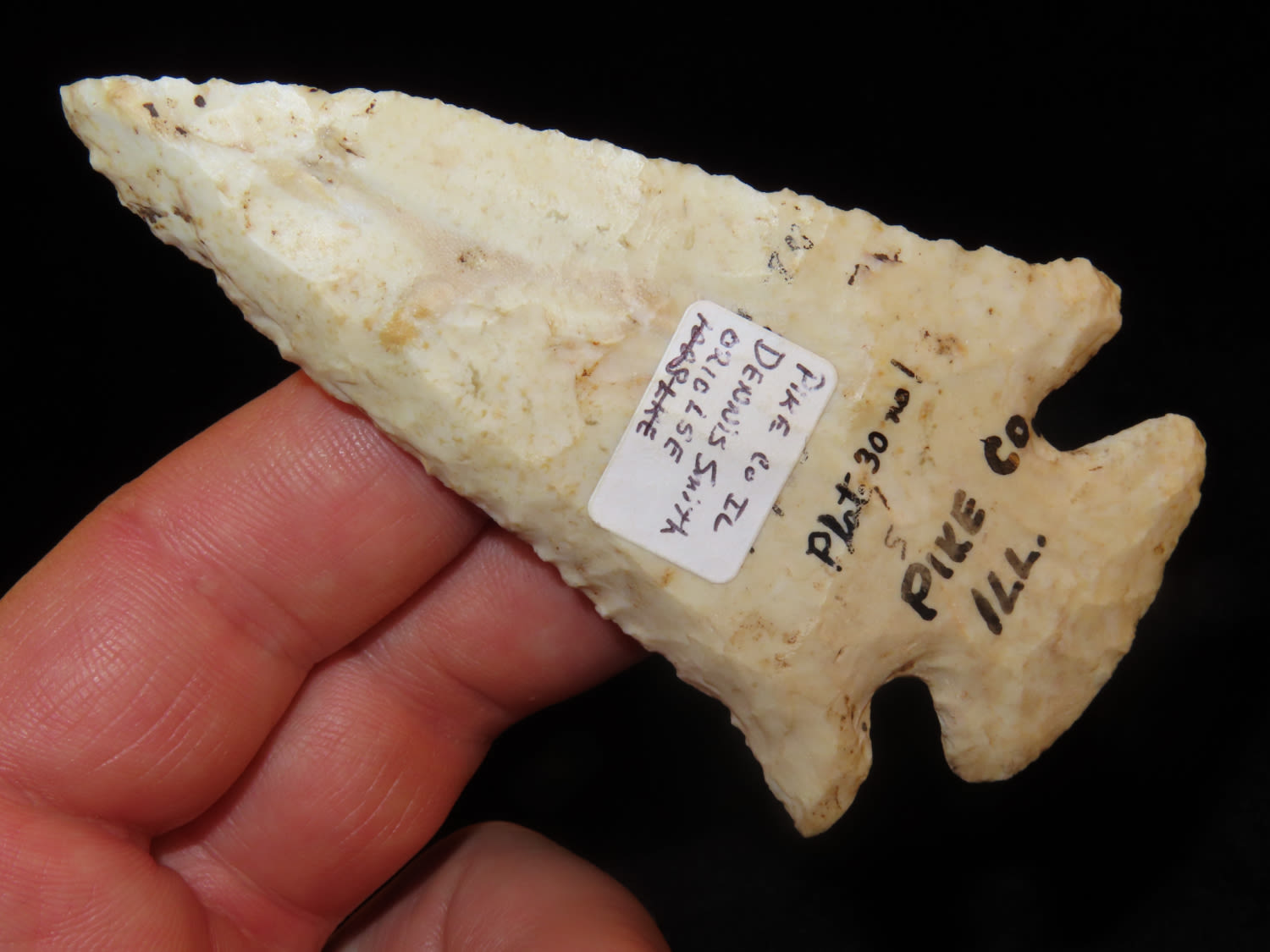 3 11/16″ Thebes, found in Pike Co Illinois, Ex Dennis Derosear, Ex Dennis Smith, Ex Dennis Taylor Collection, Warsaw, Illinois
