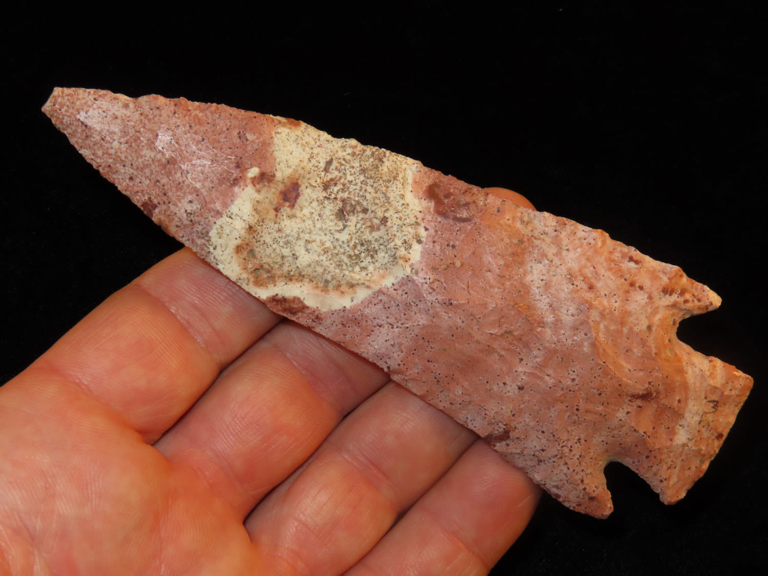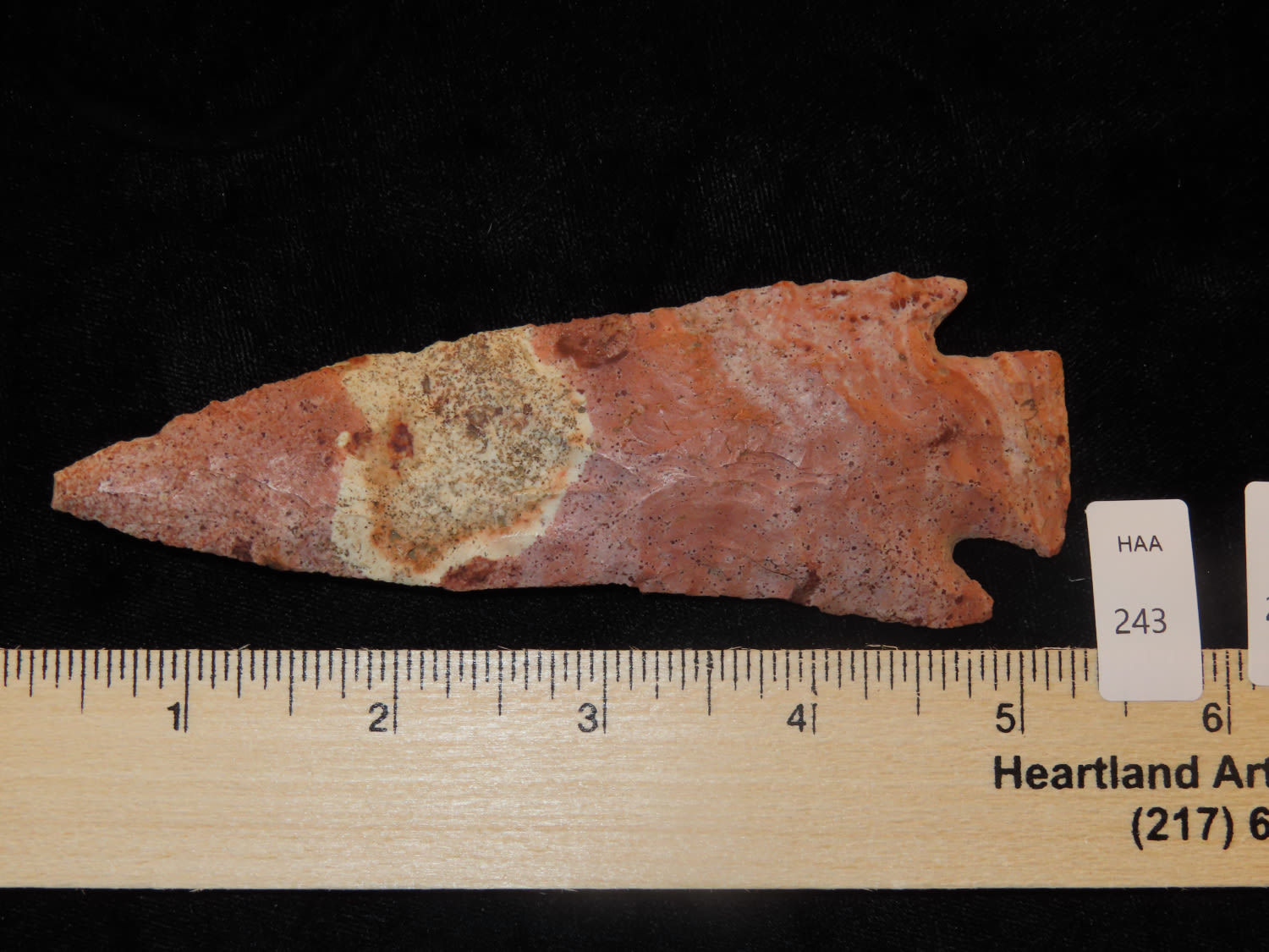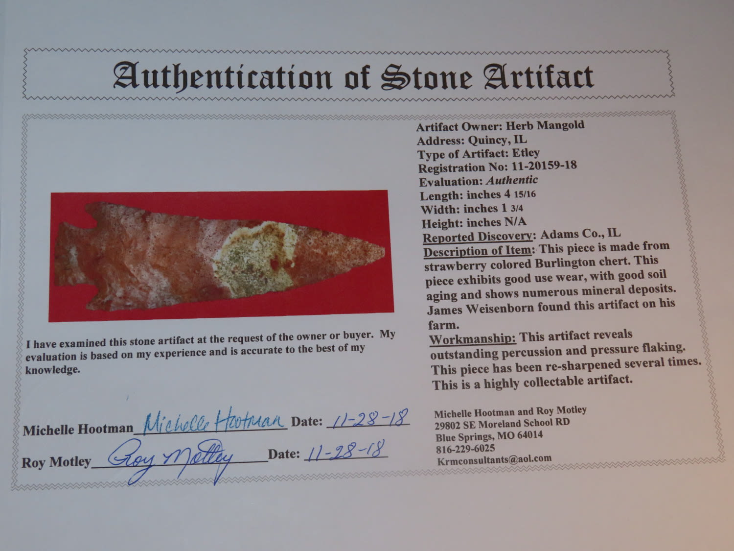 4 15/16″ Etley, Motley COA, found in Adams Co Illinois Extremely Colorful Strawberry Burlington Chert, Ex Herb Mangold Collection