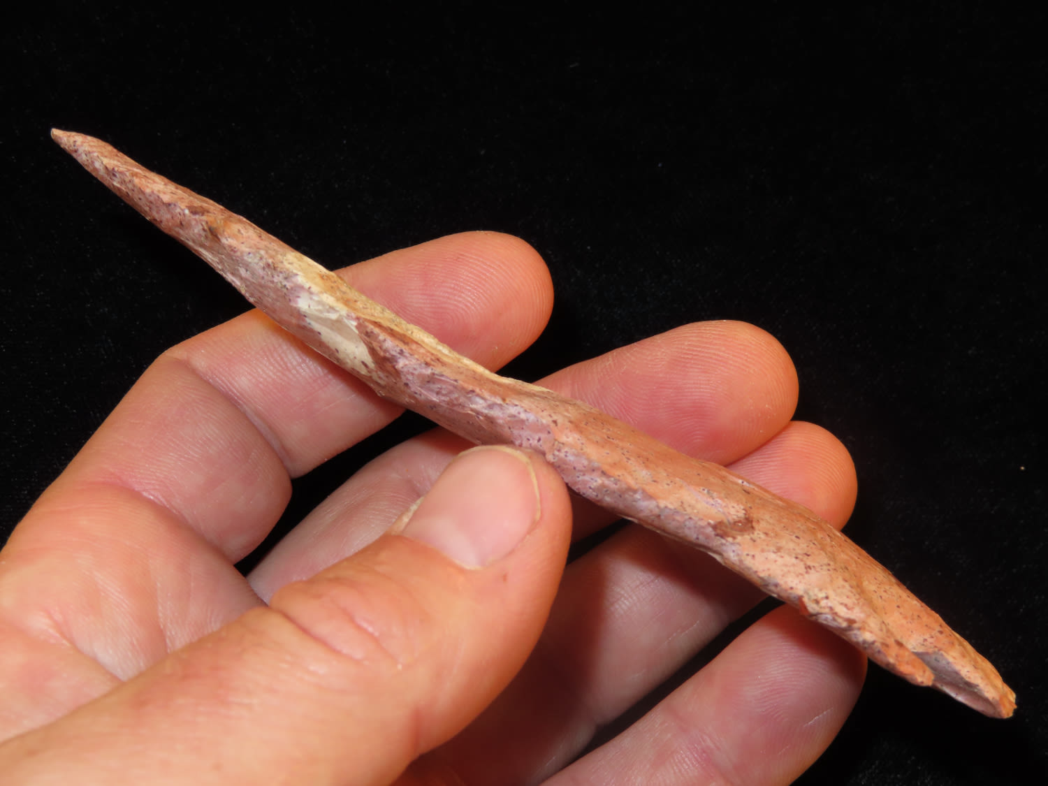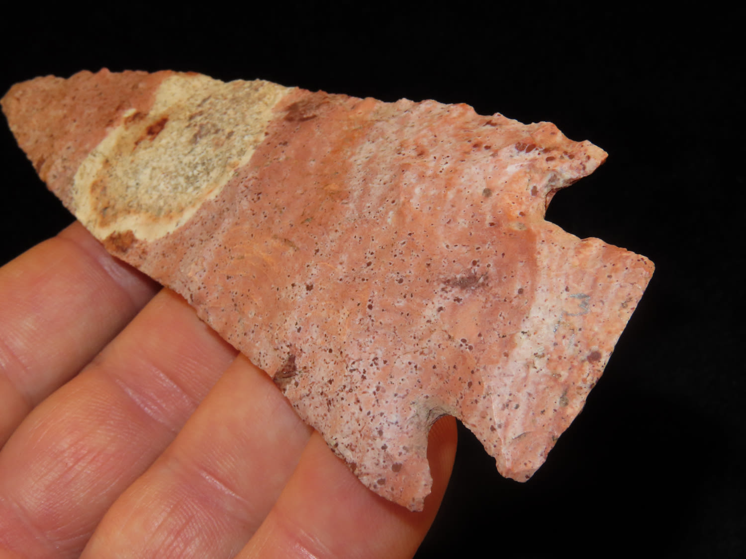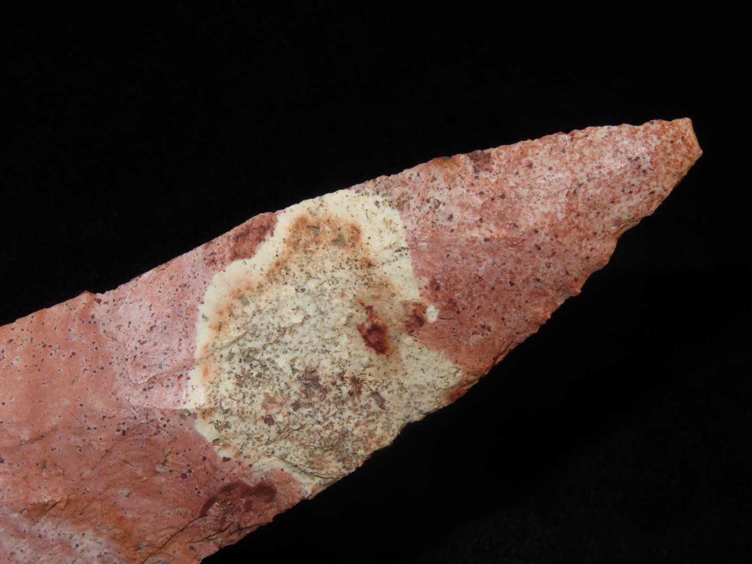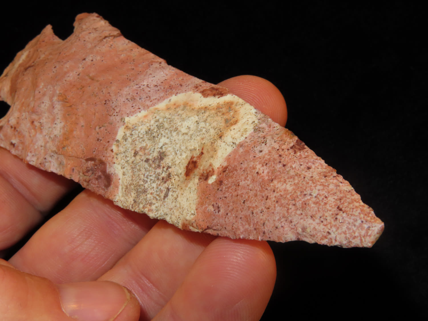 4 15/16″ Etley, Motley COA, found in Adams Co Illinois Extremely Colorful Strawberry Burlington Chert, Ex Herb Mangold Collection