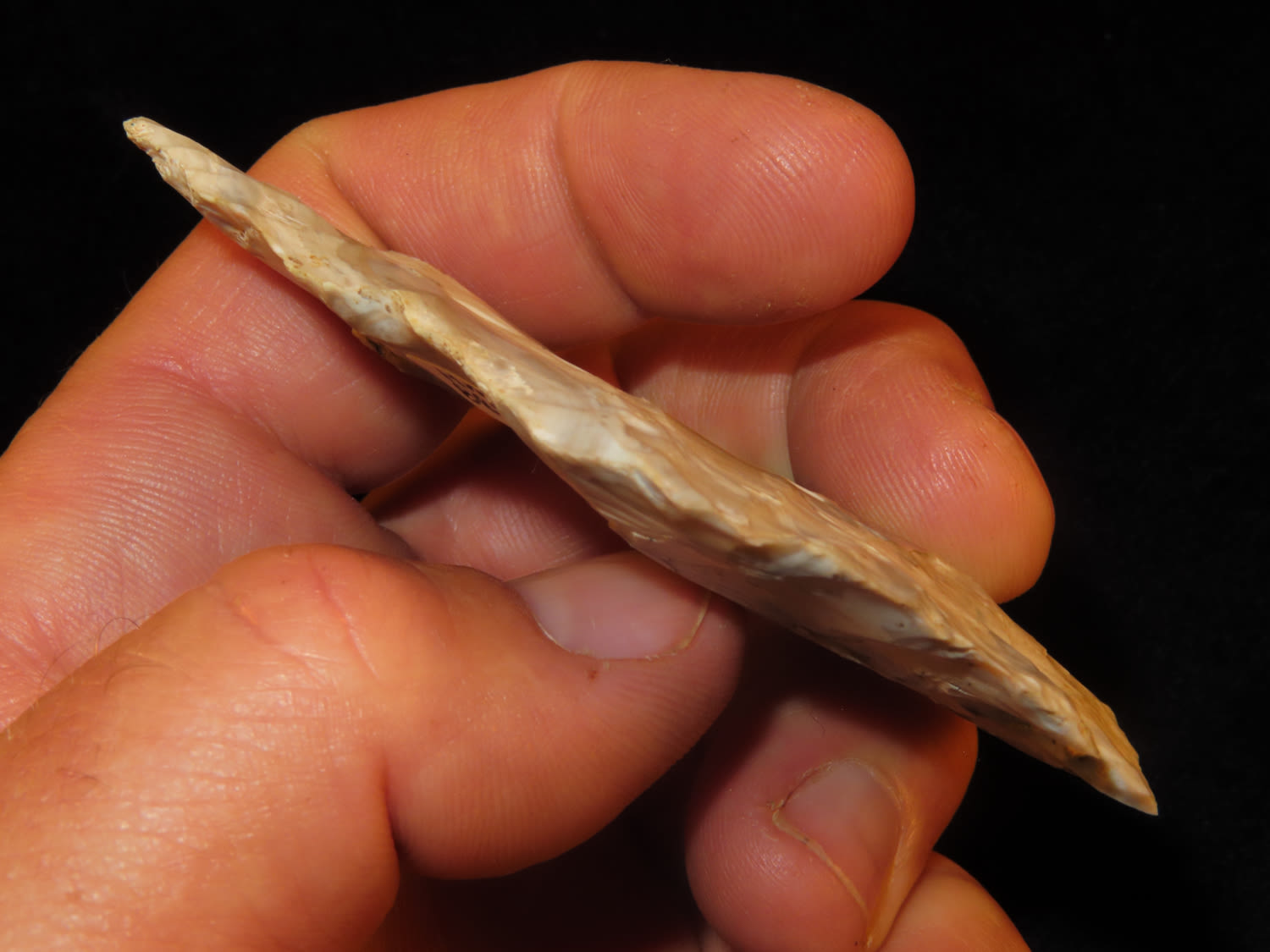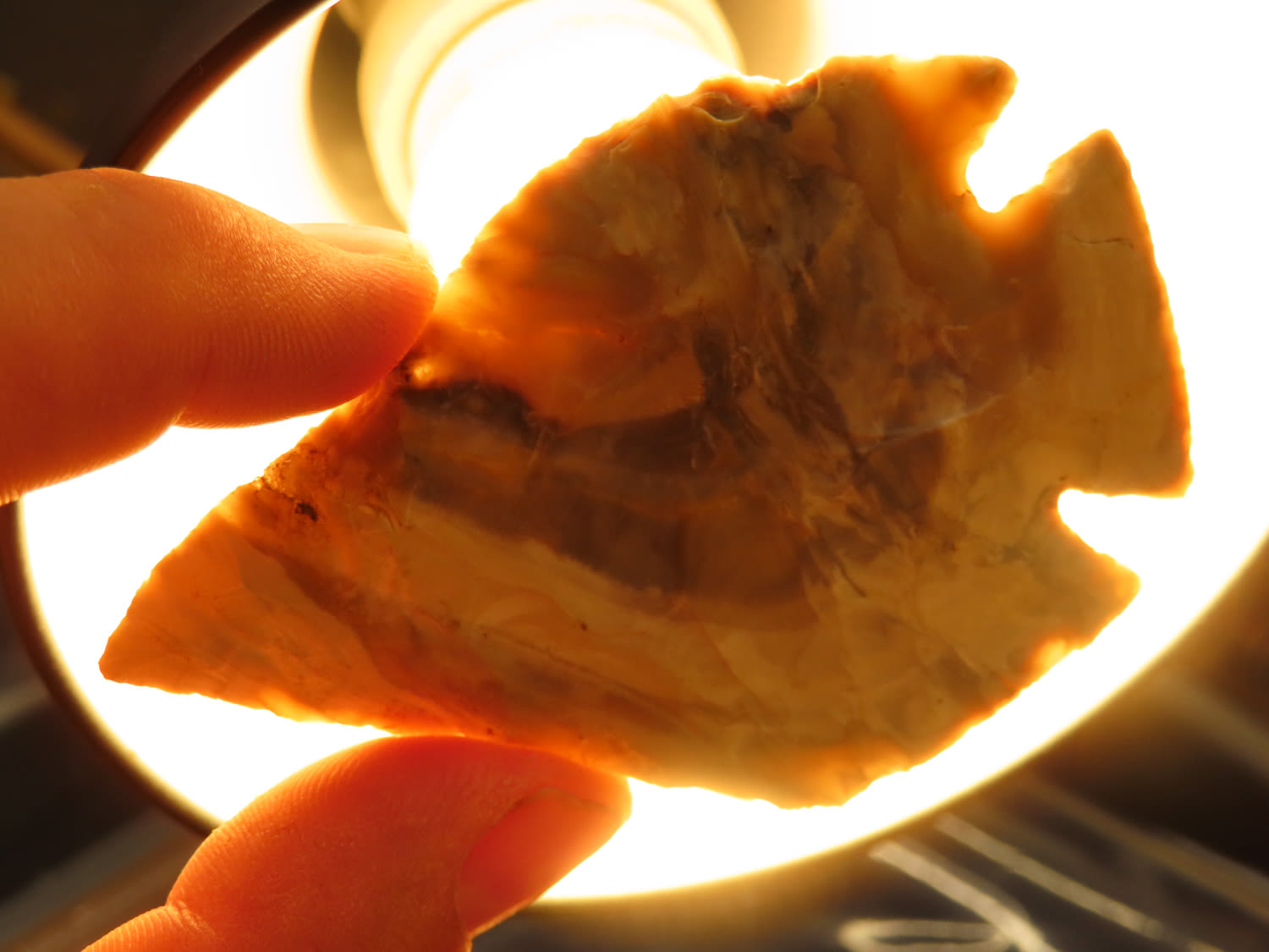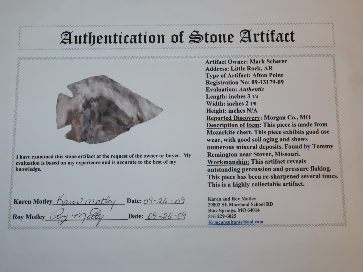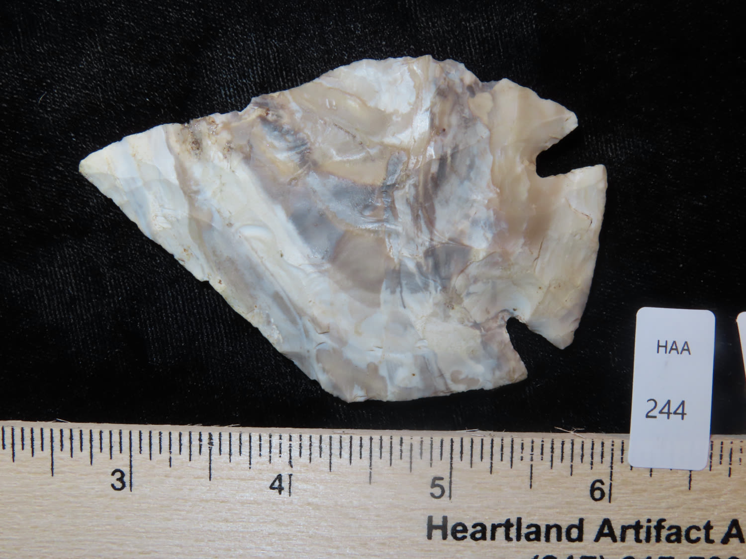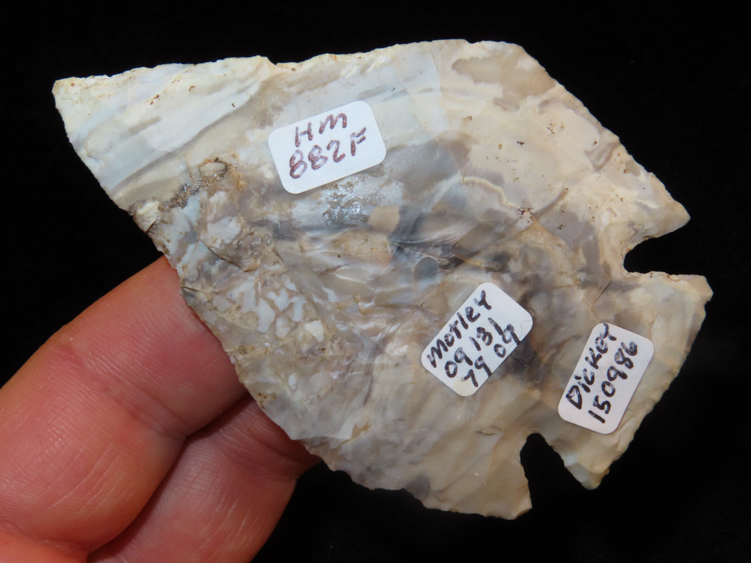 3 1/4″ High Quality Afton, 2x COA- Motley/Dickey, made from Blue, White, and Gray Jeff City Chert-Unbelievable Color-Semi-translucent, found in Morgan Co Missouri, Ex Herb Mangold Collection