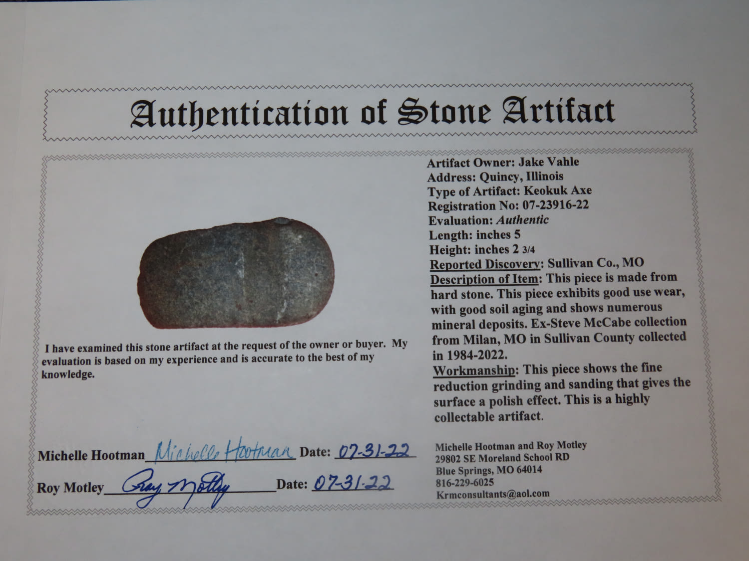 5″ Keokuk Axe, Motley COA, Hardstone, Ex. Steve McCabe Collection, Milan, Sullivan County Missouri. Mr. McCabe collected from 1984 until 2022.