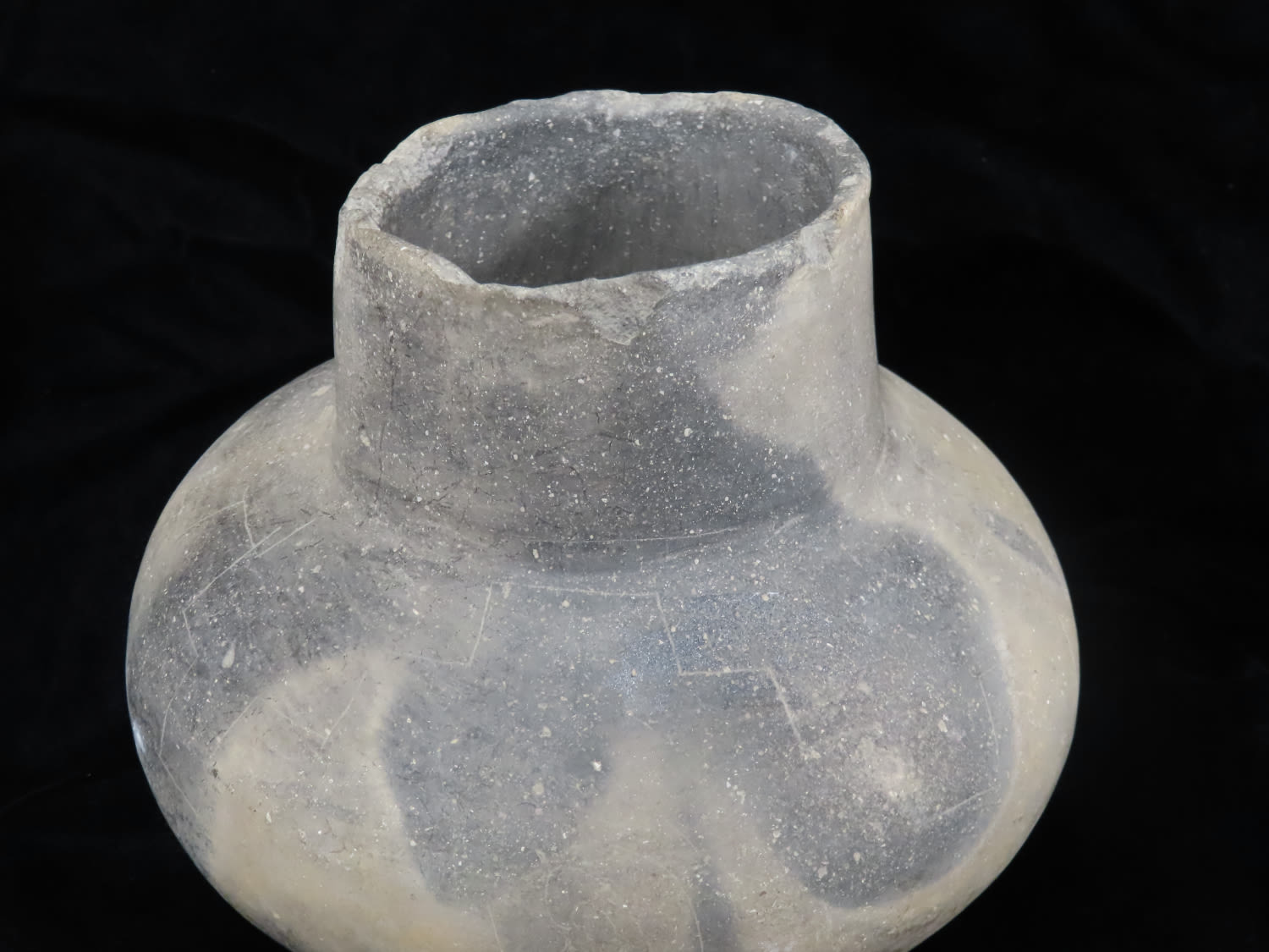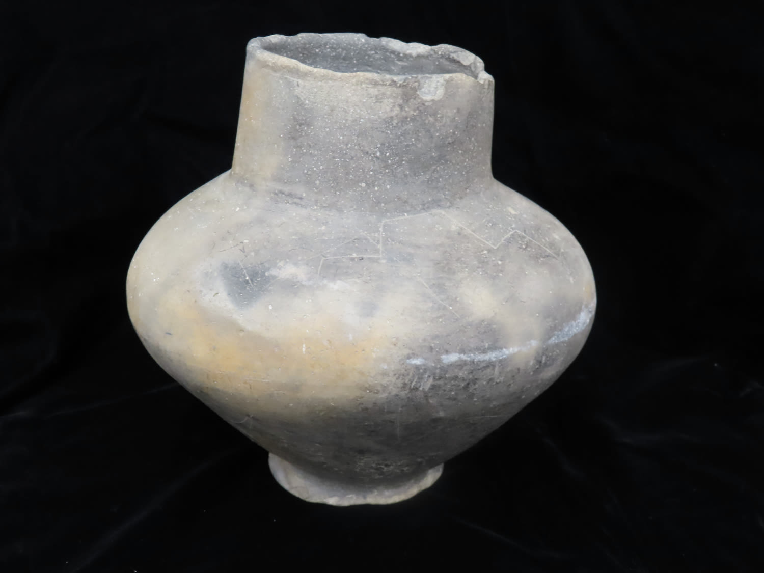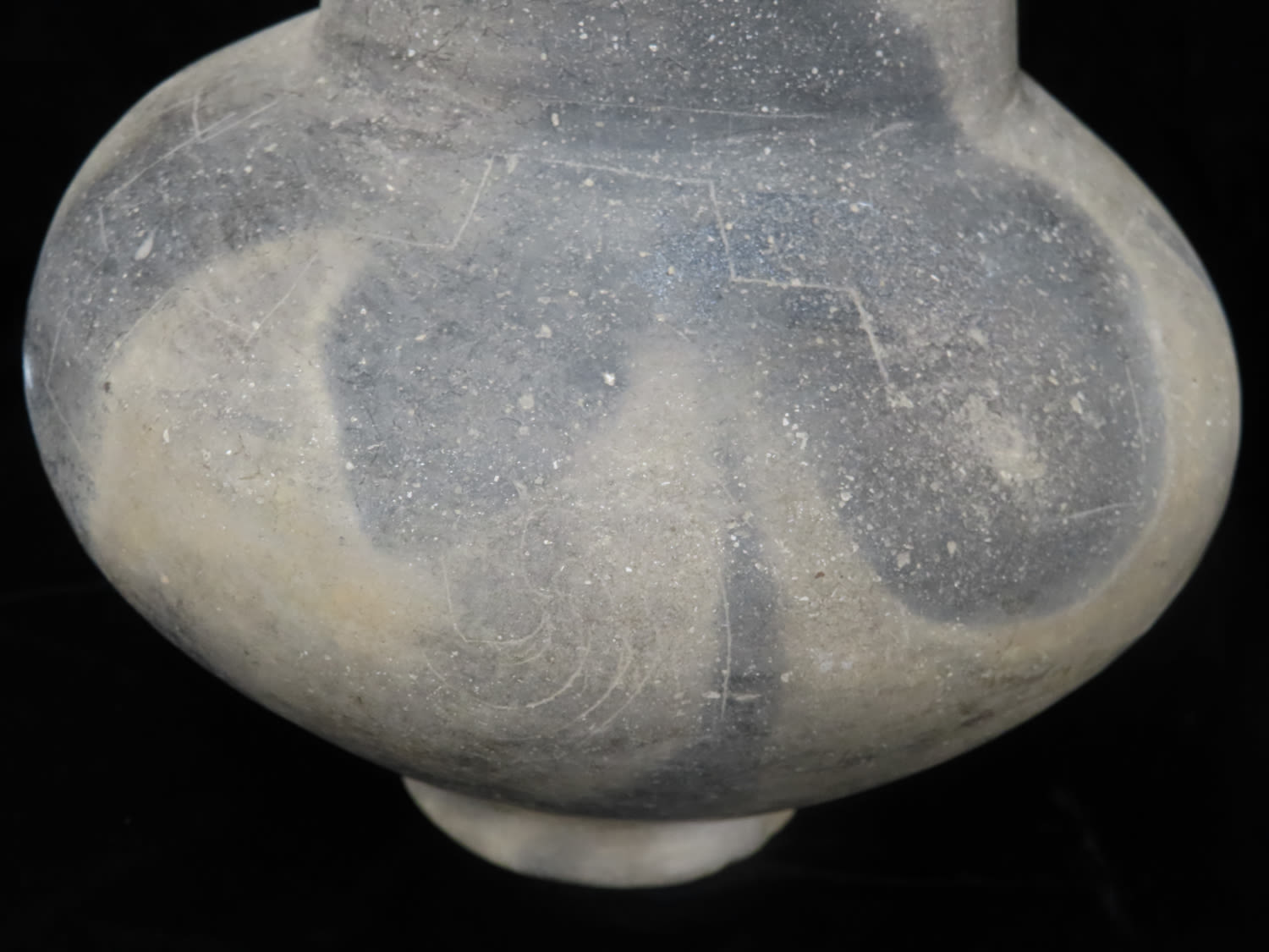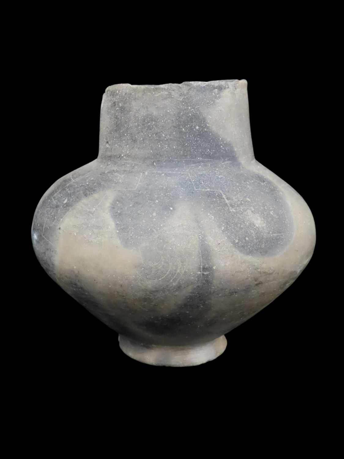 7″ tall Pedestal Base Pottery Water Vessel, with Sun and Stair-step Motif, Likely Southern Missouri or Northern Arkansas