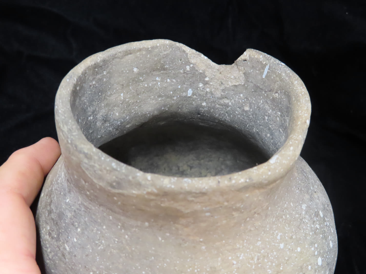 4 1/2″ tall Pottery Vessel Missouri or Arkansas, Solid minus chip in rim.