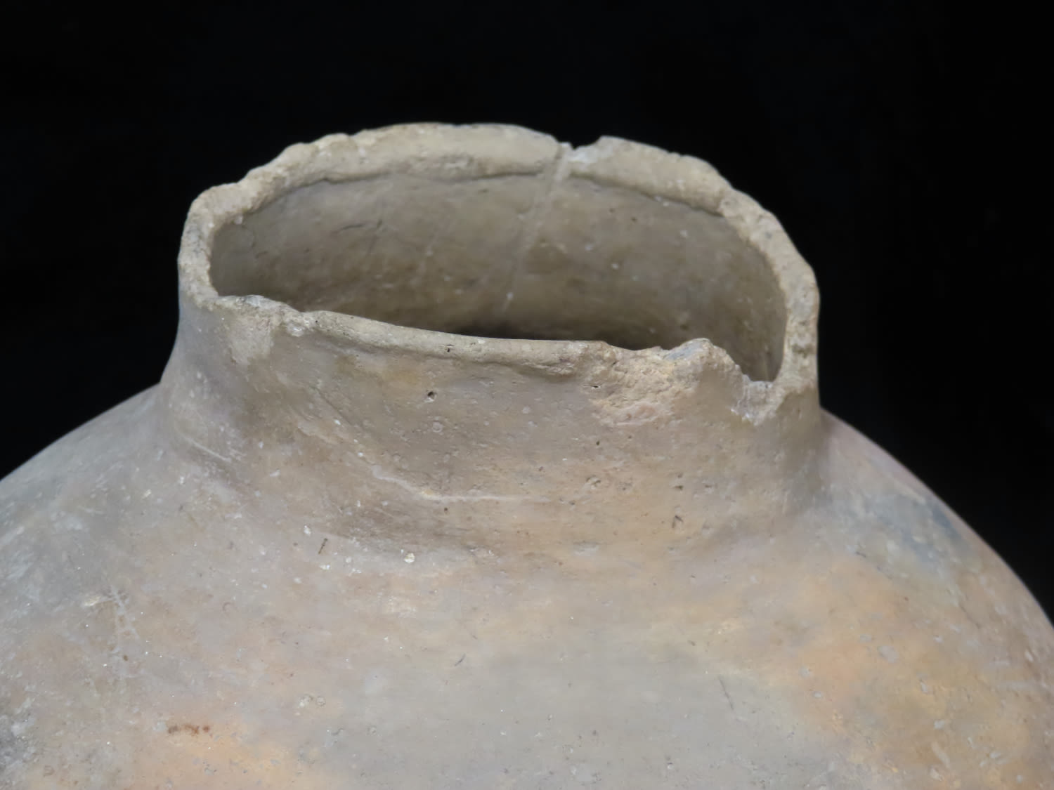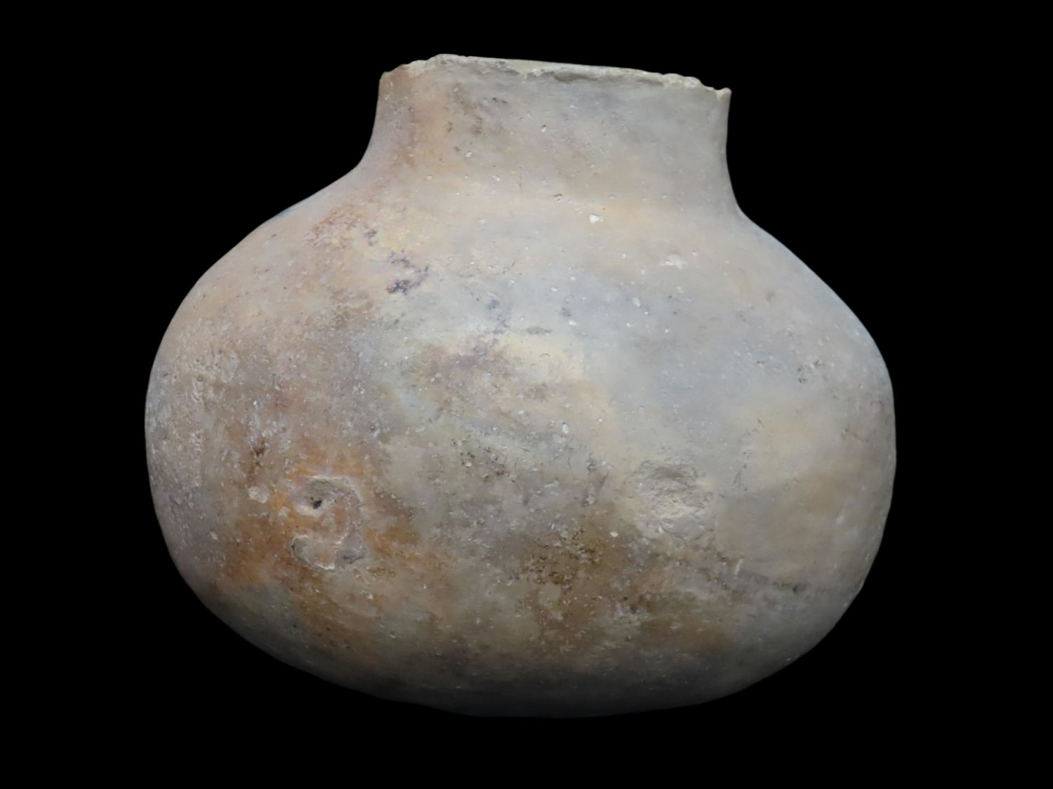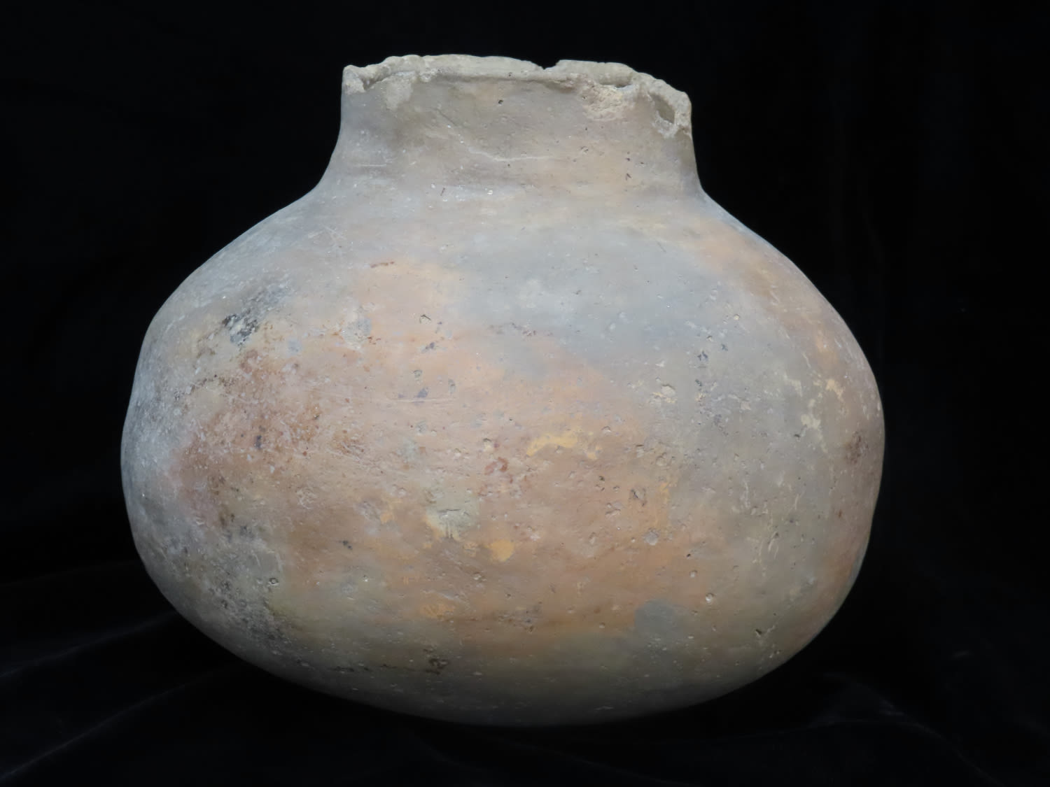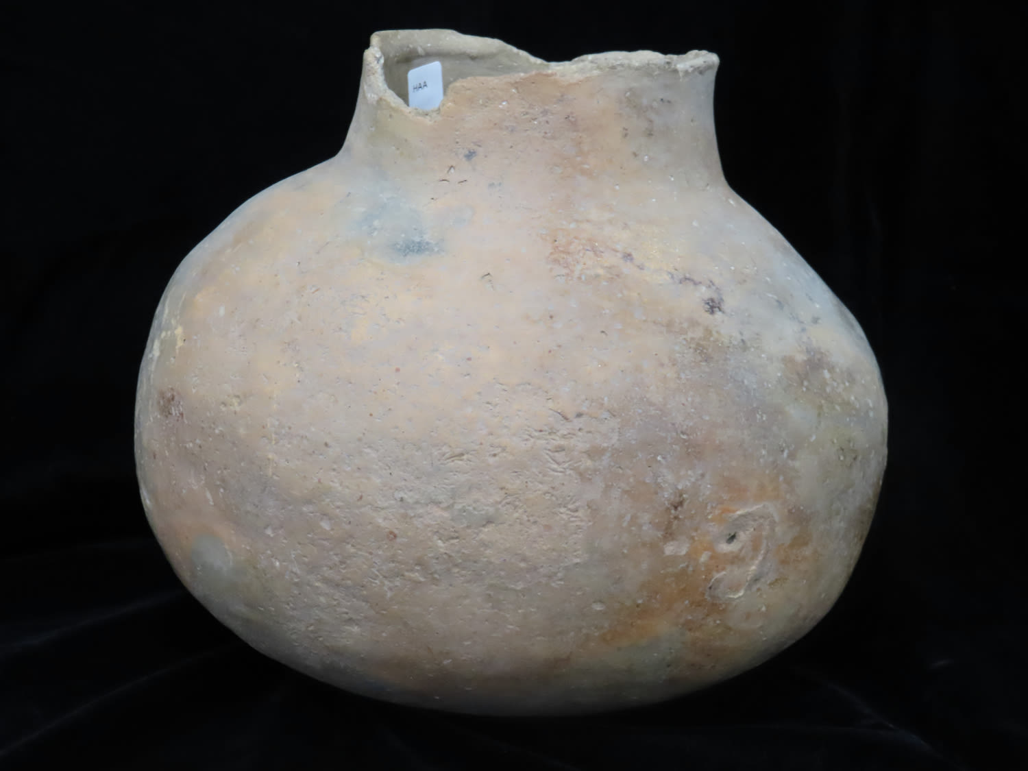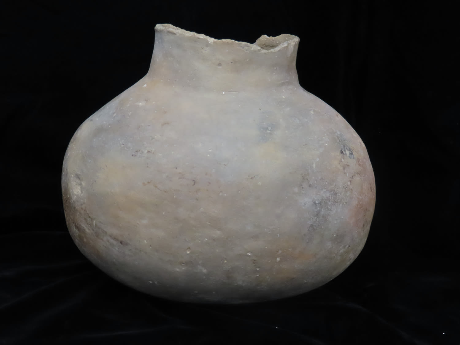 7″ dia Pottery Vessel, found in Brown Co Indiana, Chipped Rim, Pressue Fractures, but no visible restoration.