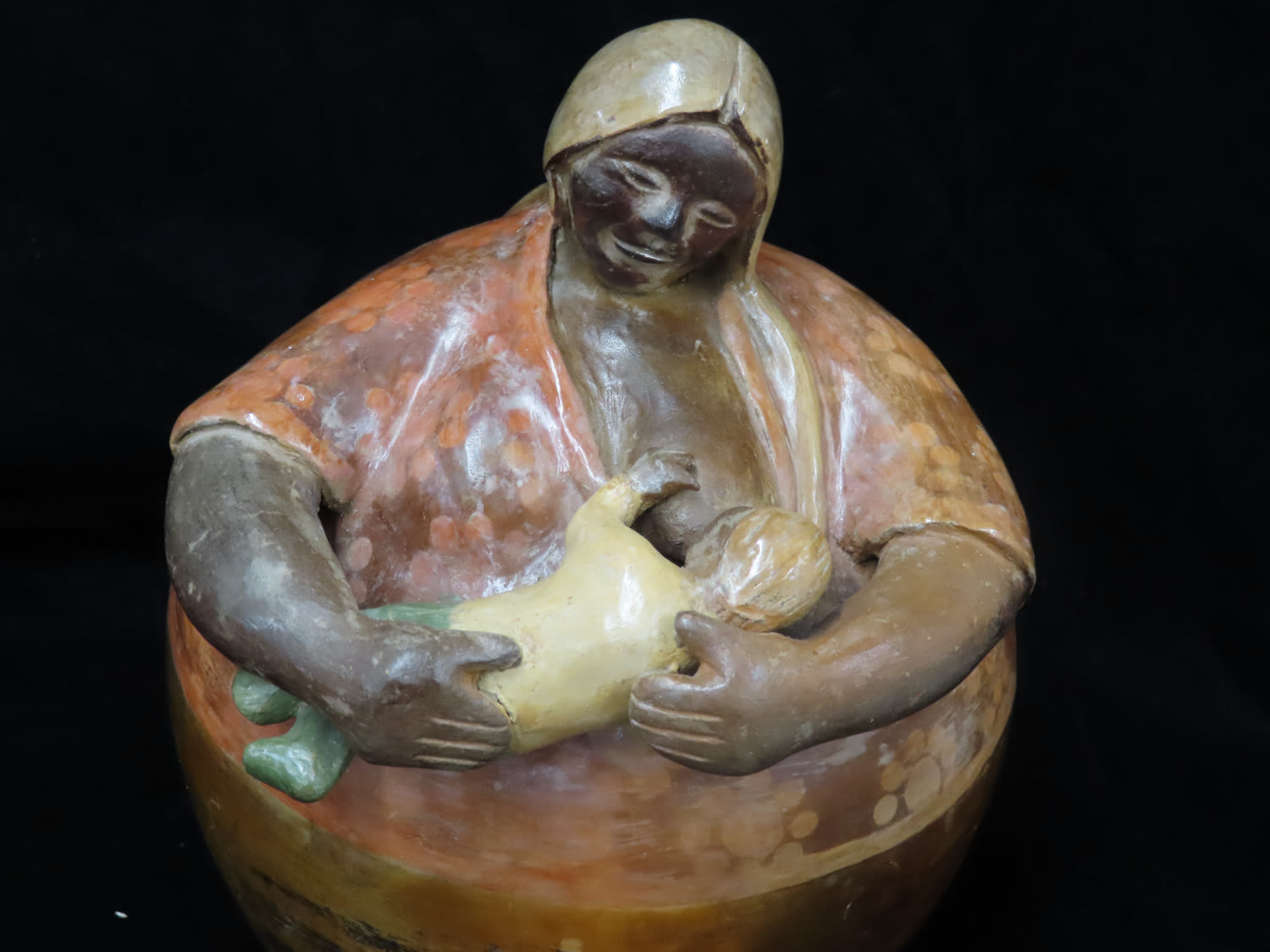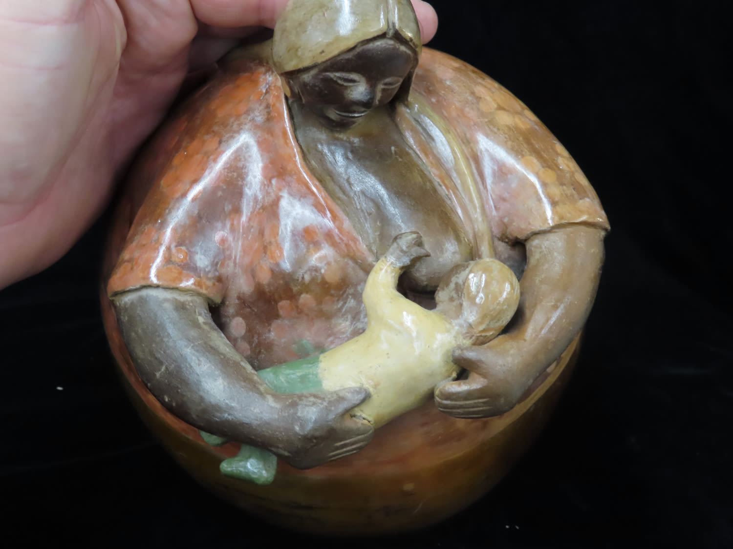 7″ Peruvian Mother and Child Sculpture, Beautifully Crafted by Santos Flores Ruiz and Narcissa Cruz Sosa go Chulucanas Folk Art- Absolutely Stunning!
