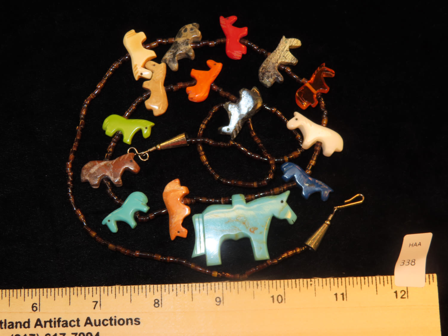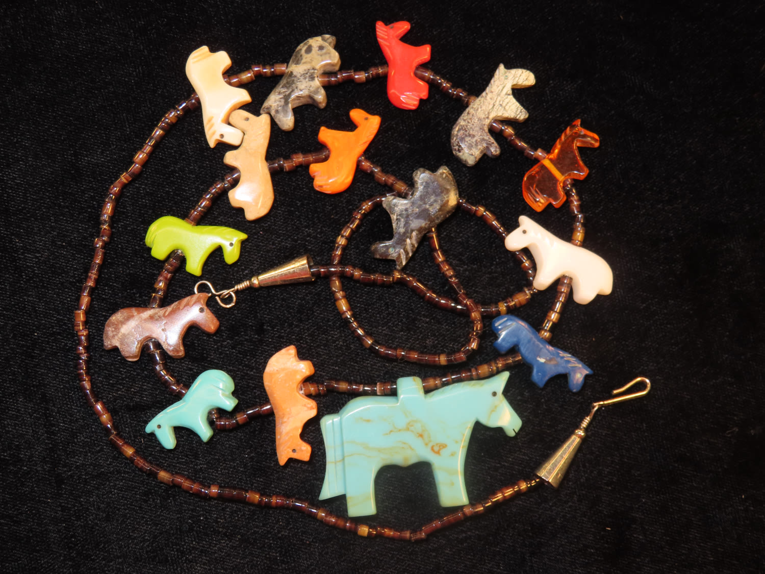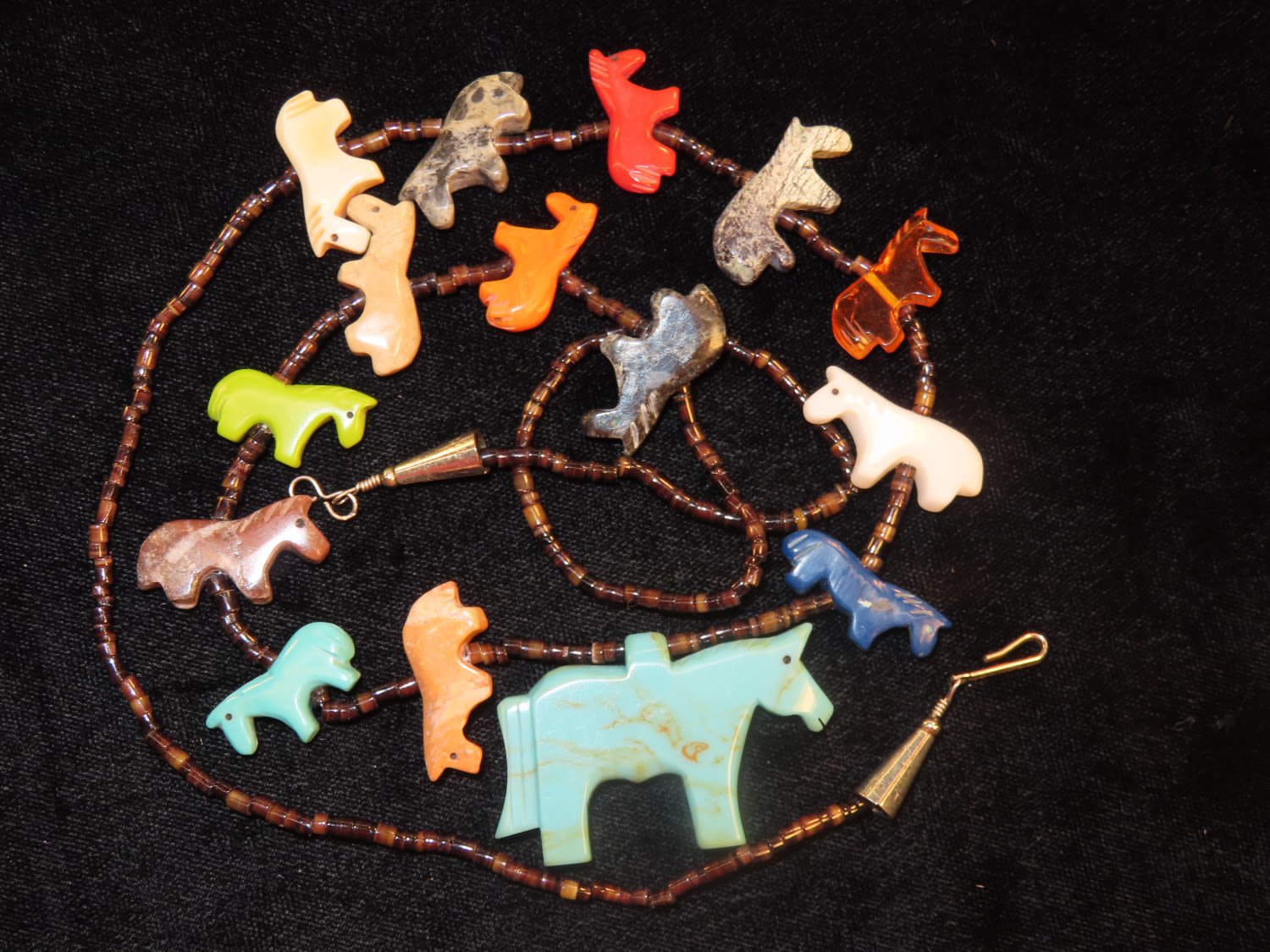 Suni Fetish Necklace of Hand Carved Horses and Heishi Beads from New Mexico