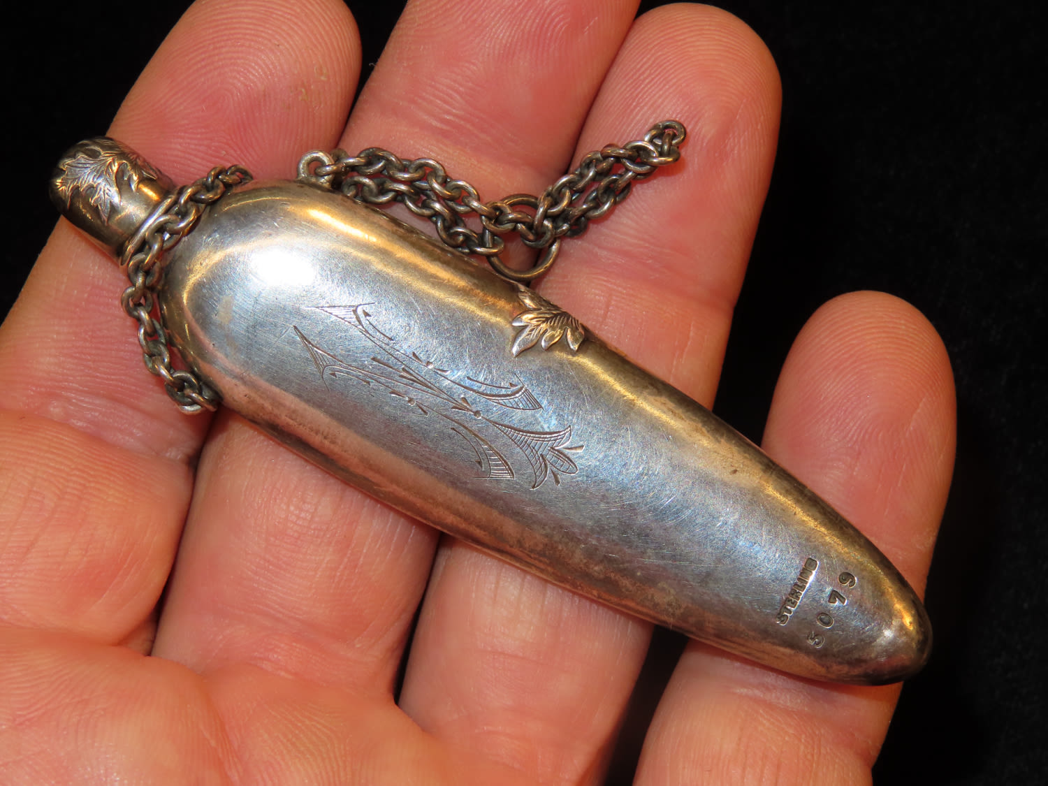 Vintage Sterling Silver Snuff container, marked Sterling 5079