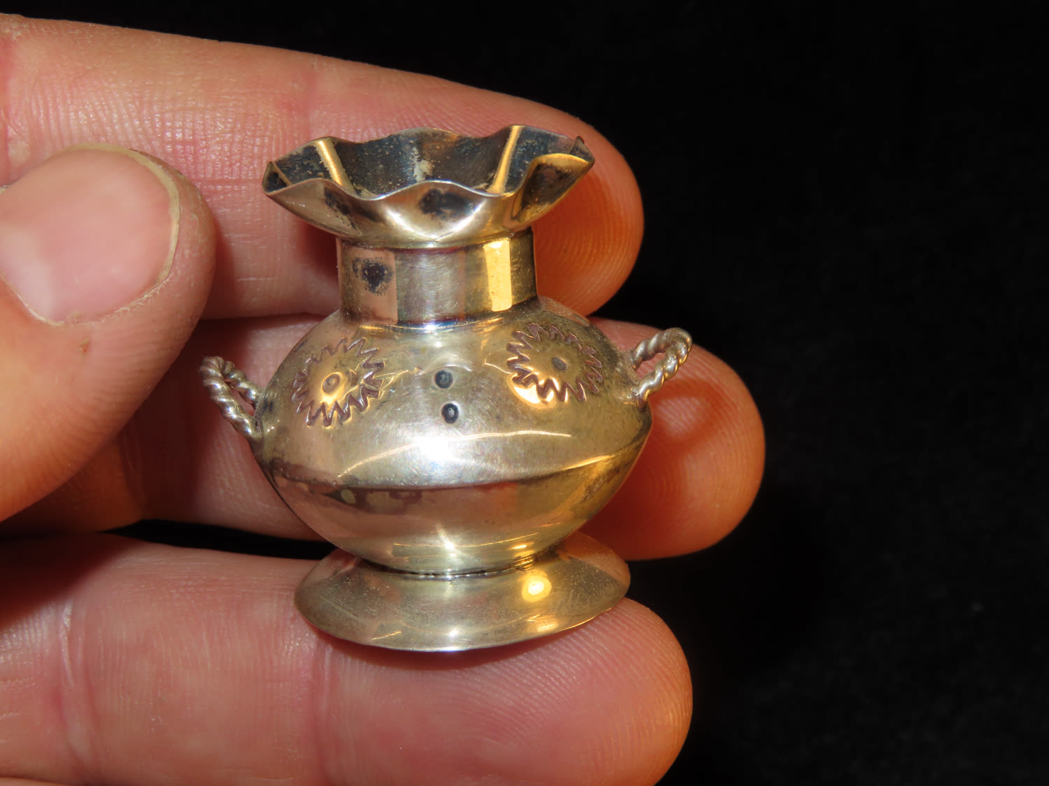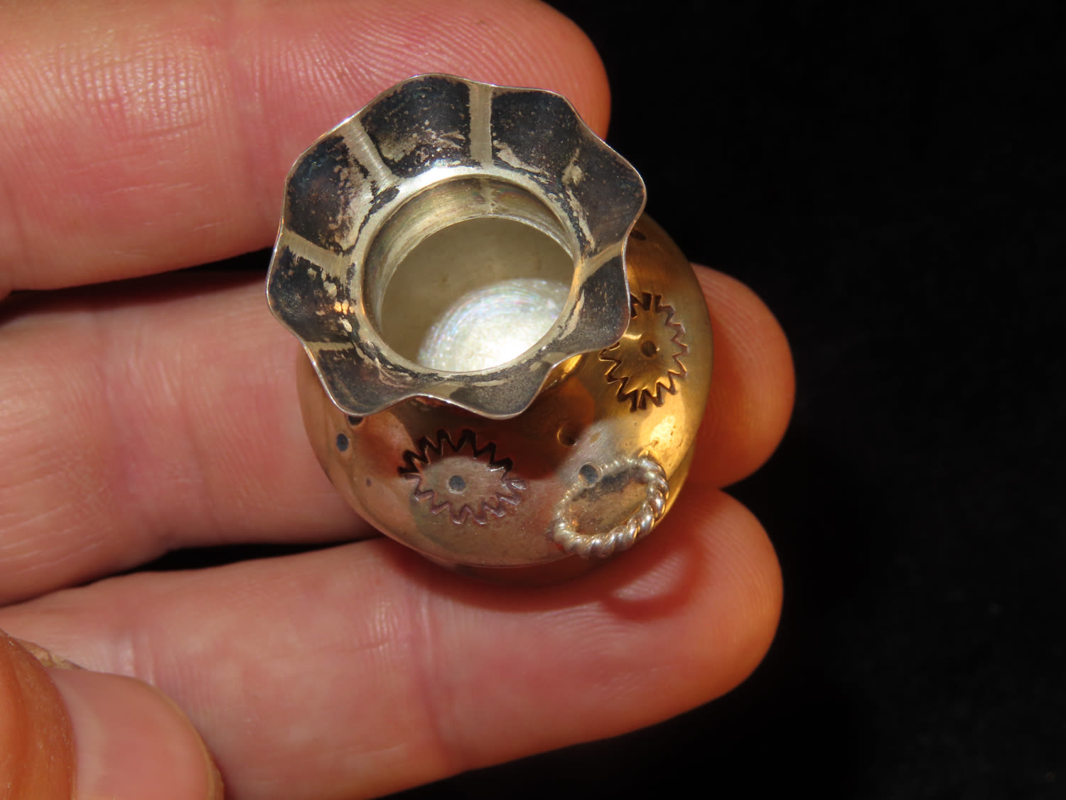 Sterling Silver Navajo Vessel marked EMW