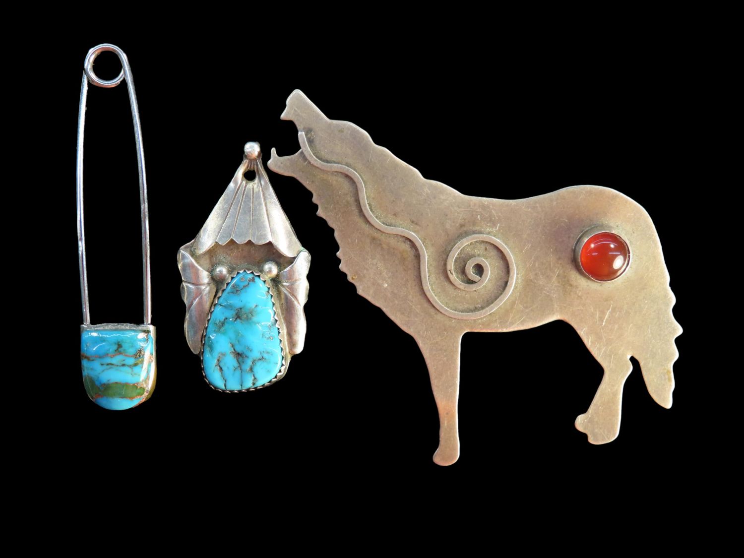 Grouping of 3 Silvertone Pins