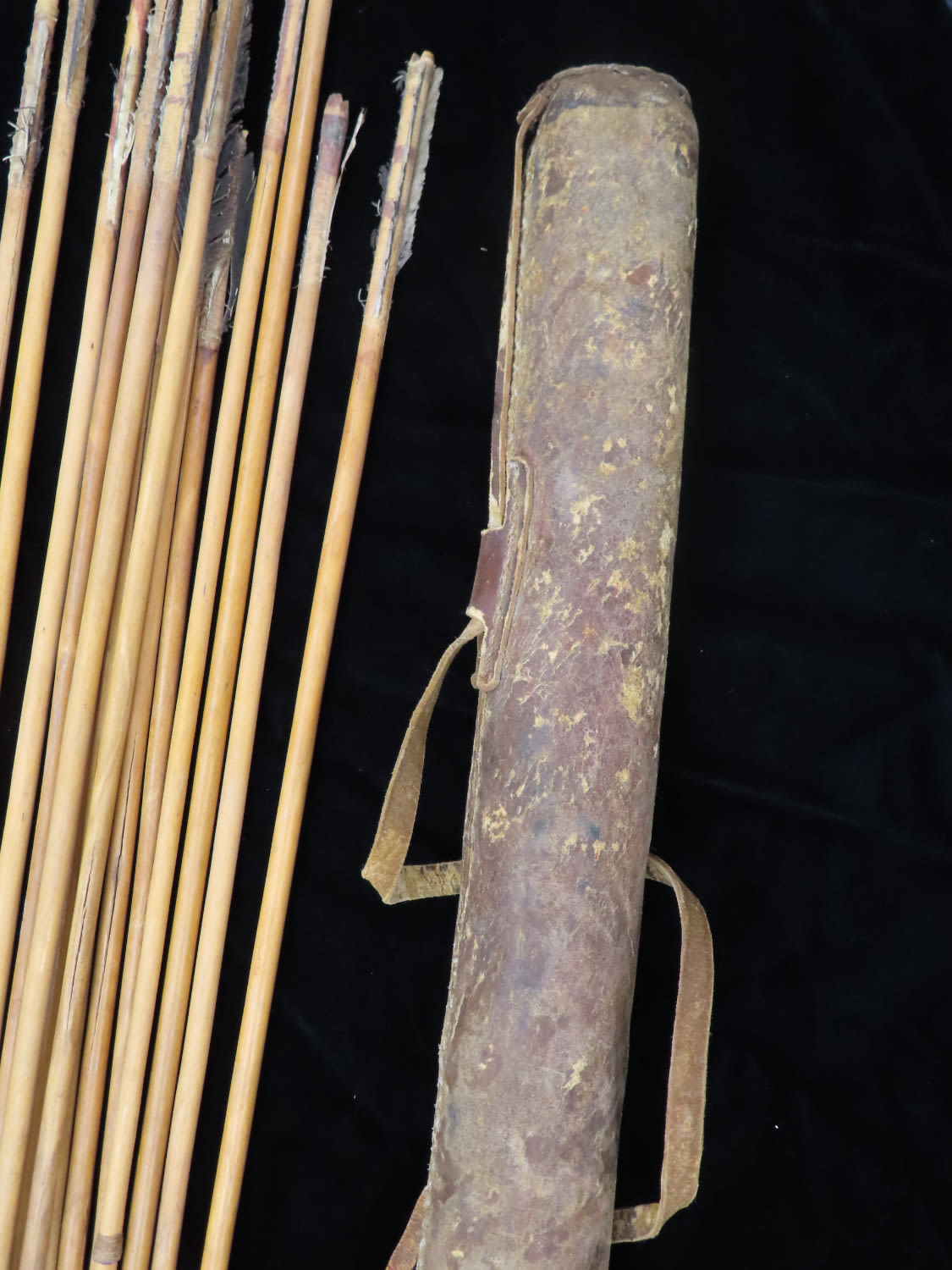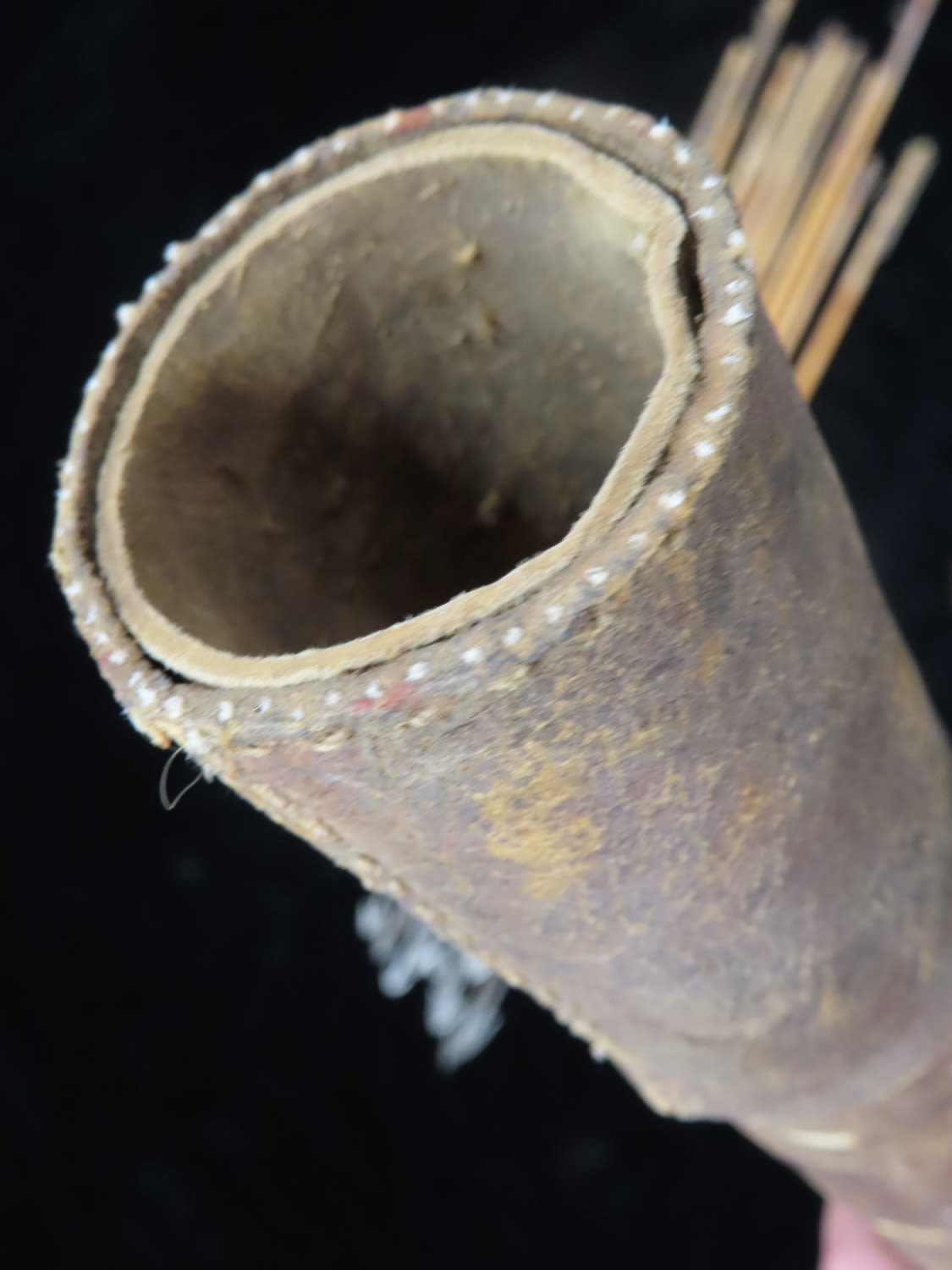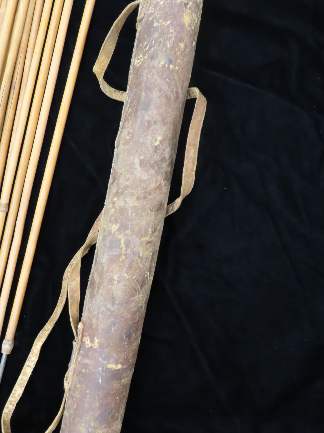 26″ Leather Quiver with 13 African Origin Arrows measuring approx 25″ long, all with tips