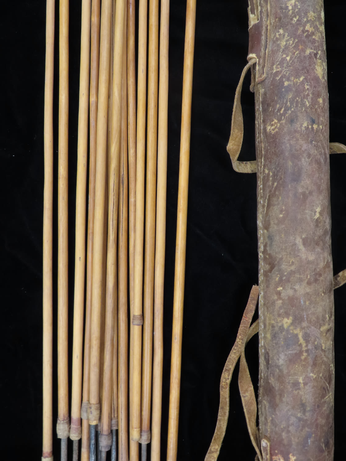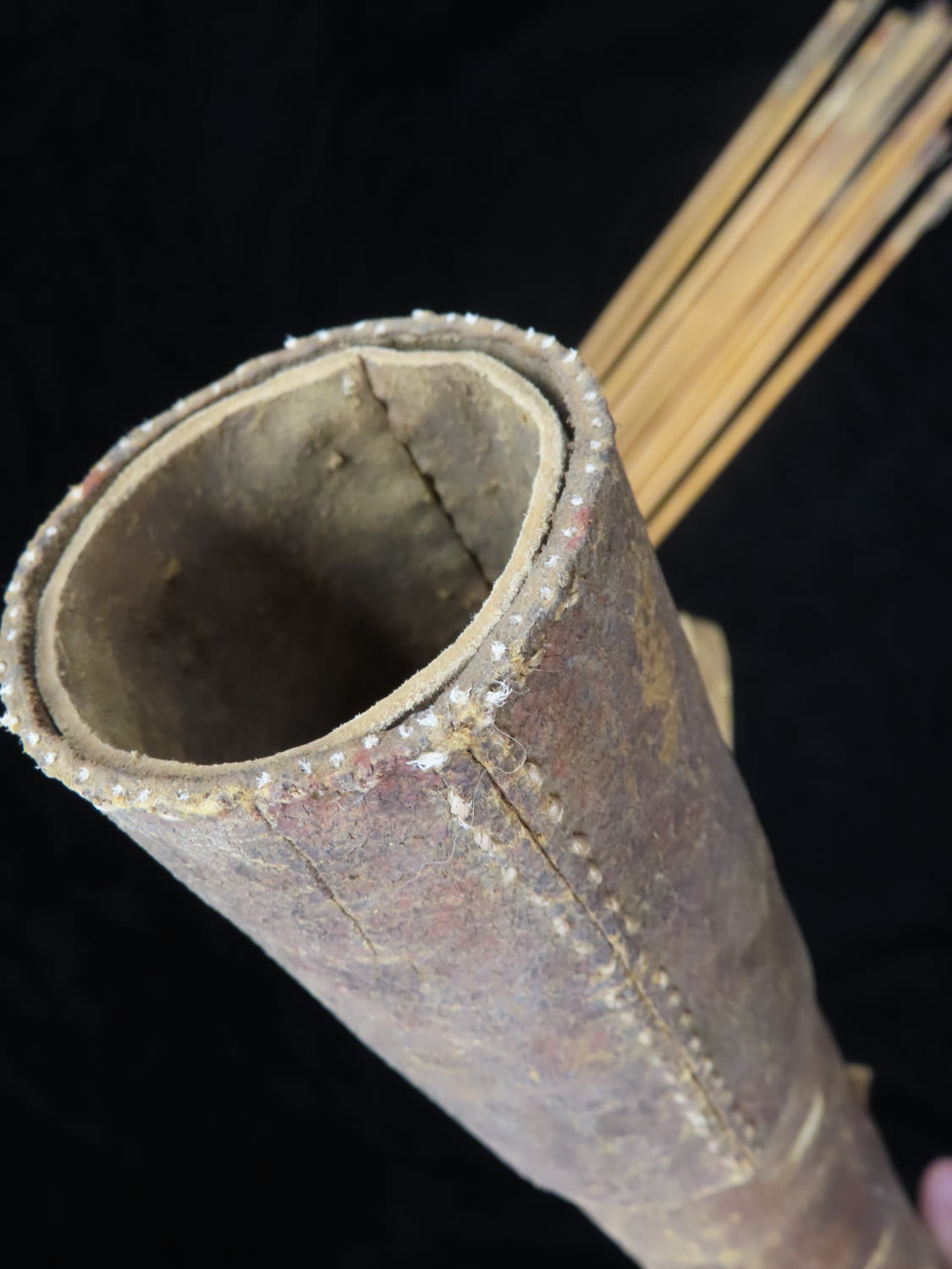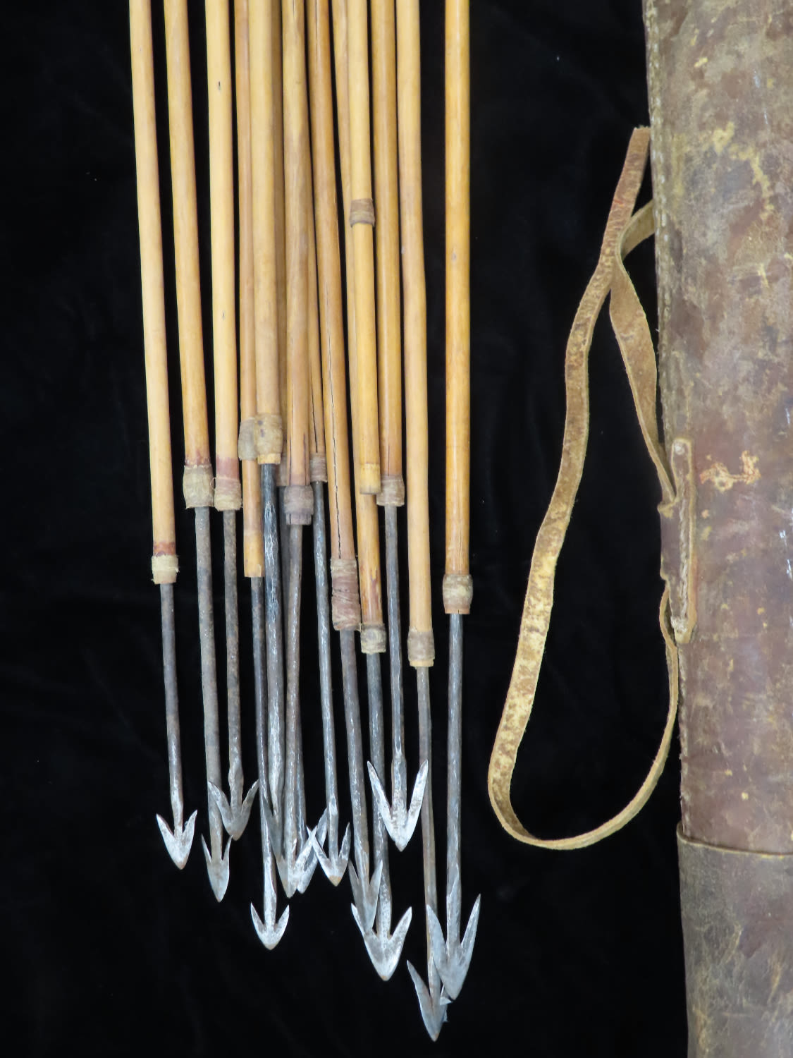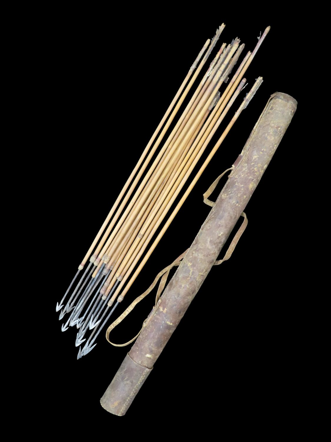 26″ Leather Quiver with 13 African Origin Arrows measuring approx 25″ long, all with tips